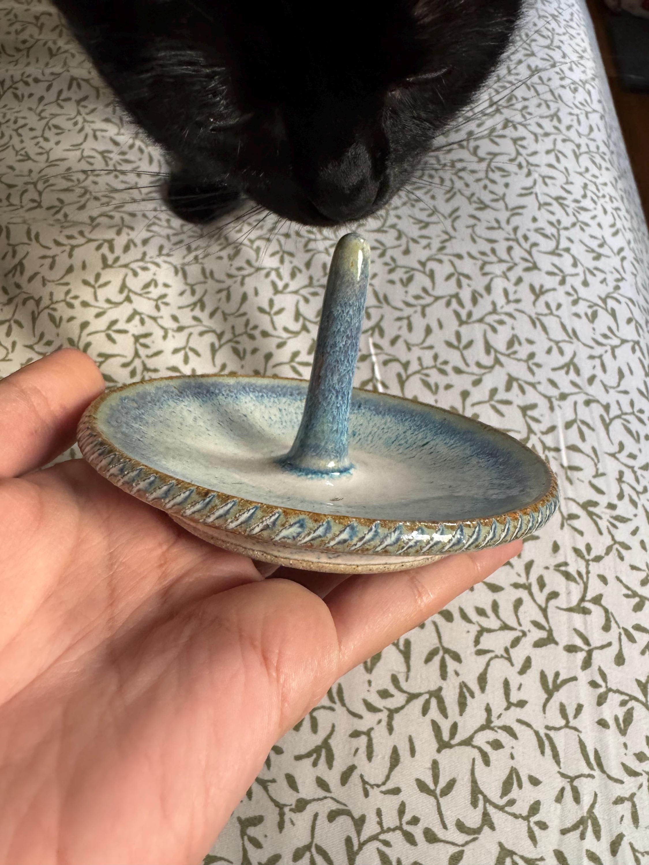I recently got engaged and needed to make sure I have a safe place to set my ring when I take it off to do dishes, clean, etc, where my mischievous kitten can't knock it down the drain. I ordered 3 ring dishes from Sunryse Pottery and they are exactly what I was looking for -- sturdy, beautiful, and unique, that will last in my home. I received them and they are absolutely perfect. I love these ring dishes and can't wait to put them to use!