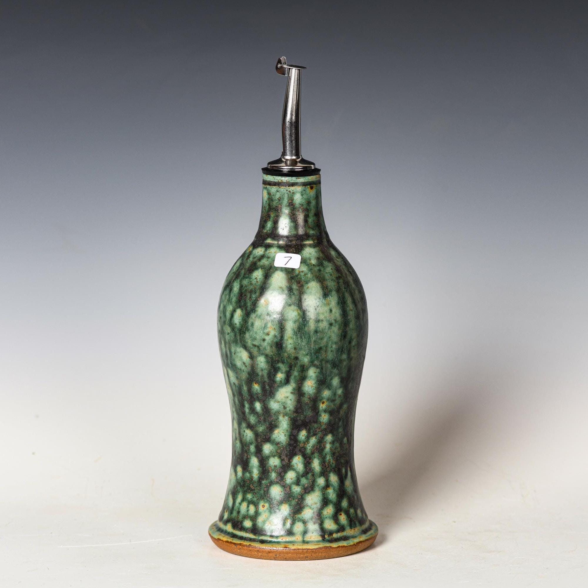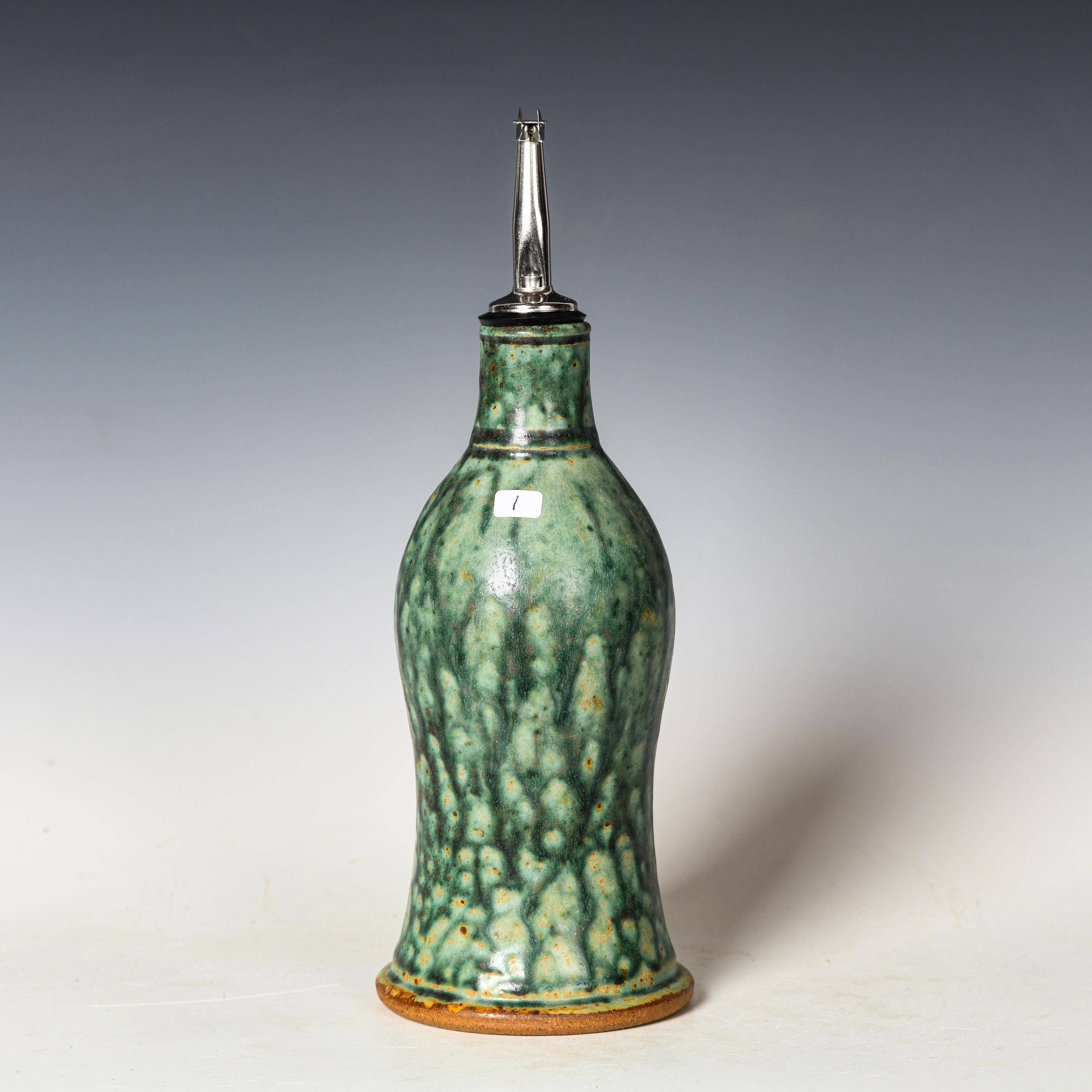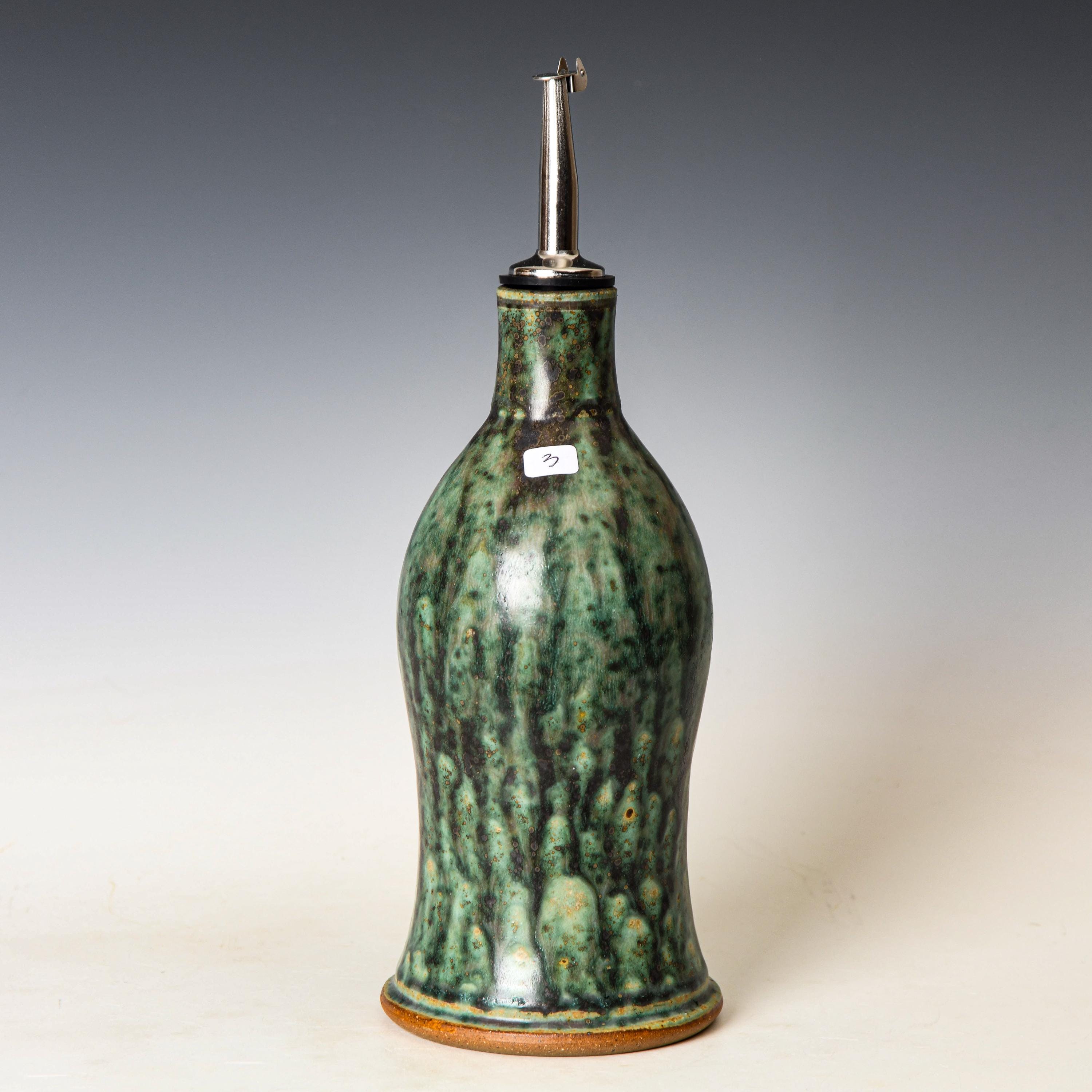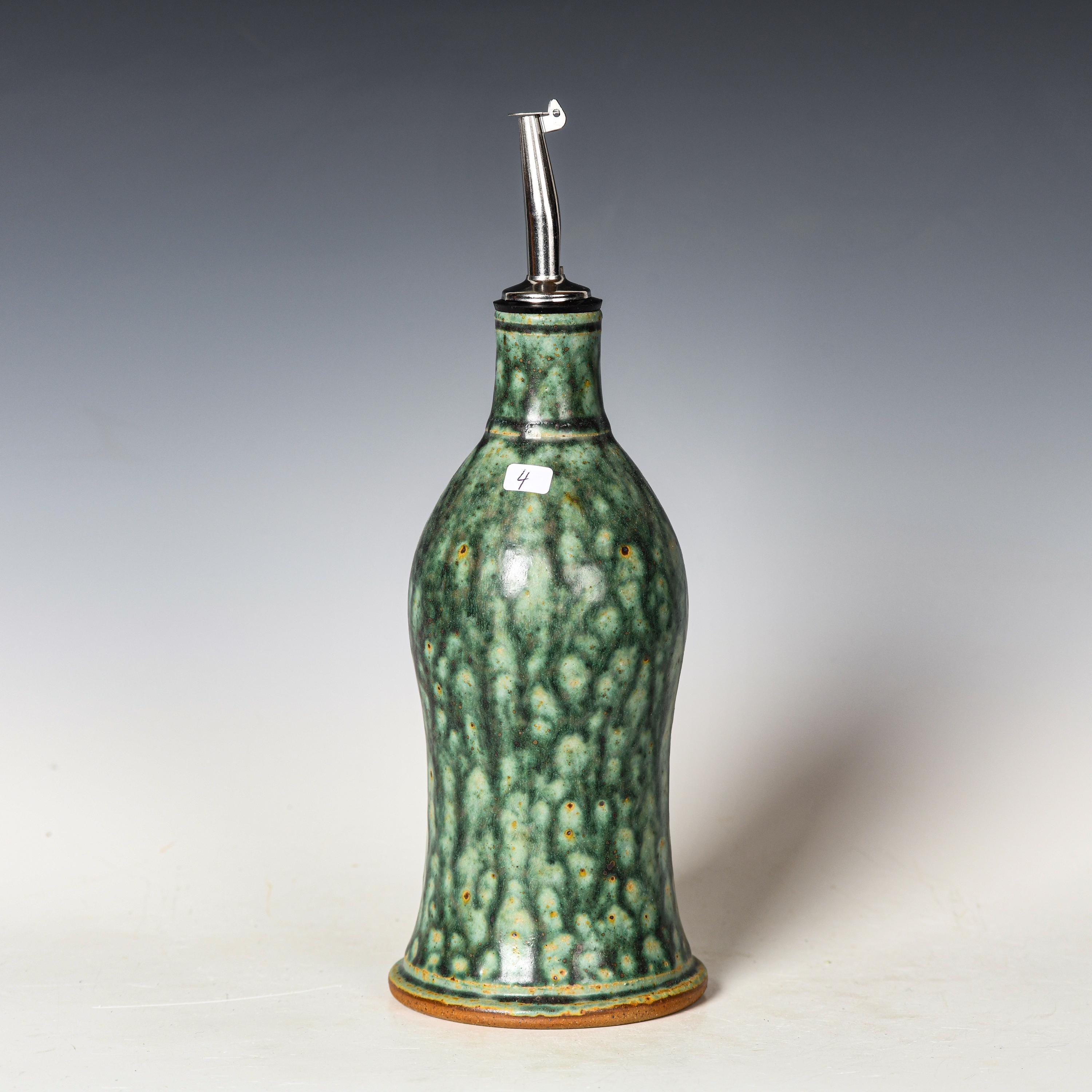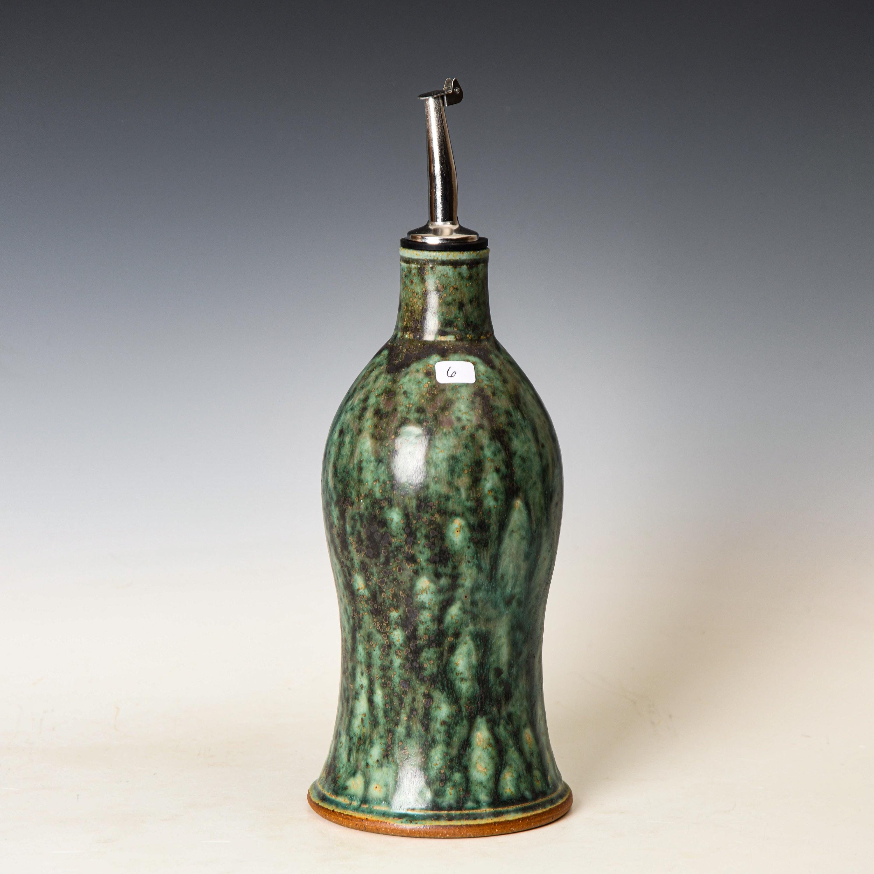 A beautiful olive oil dispenser done in the "drip style" glaze of the Chinese Tang dynasty. A unique piece!