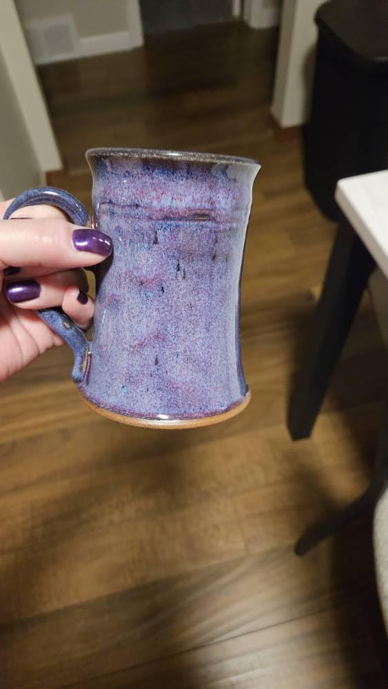 Our mugs are roughly 4.5” tall and 3.25” wide (4.75” long with handle), and can hold approximately 12 ounces of fluid.