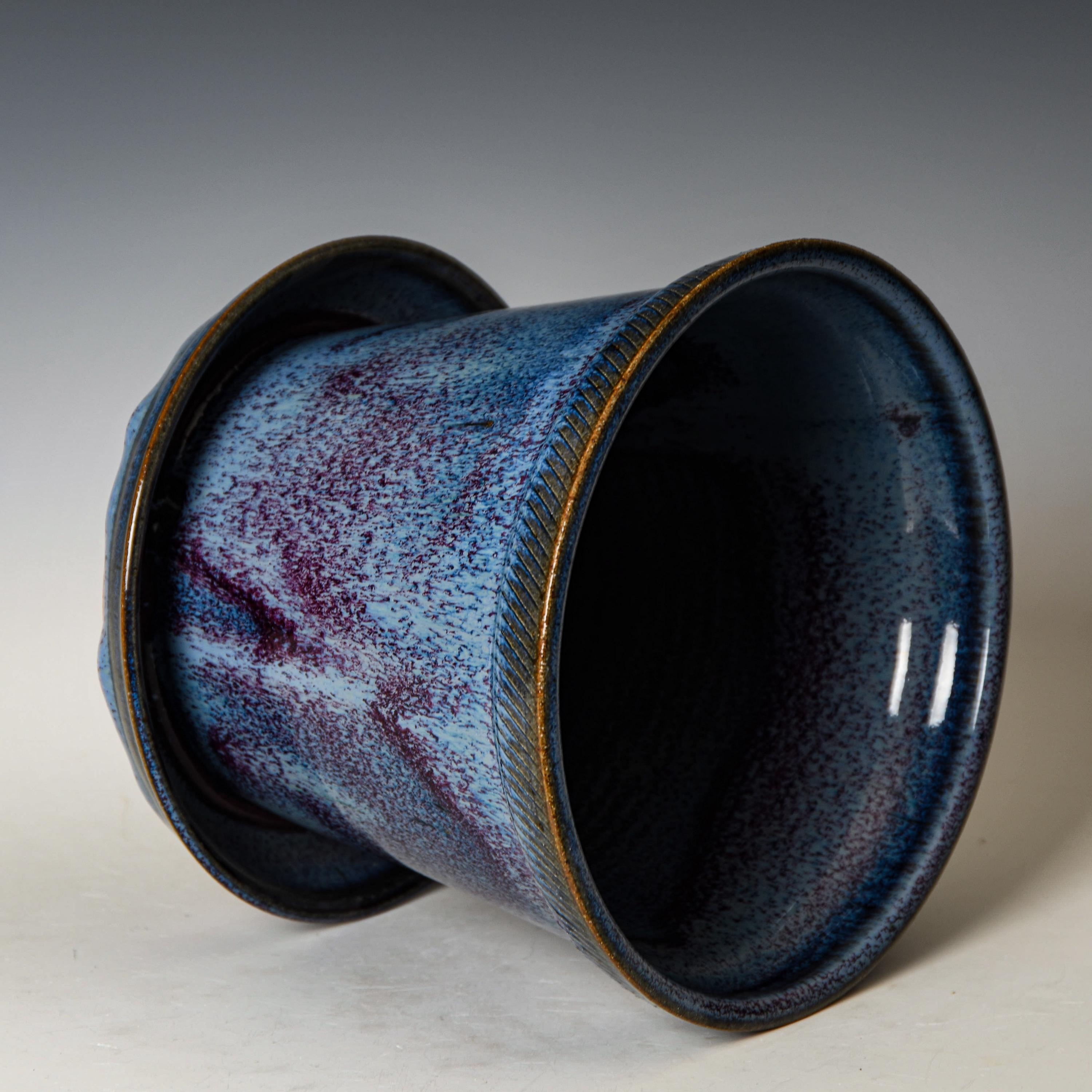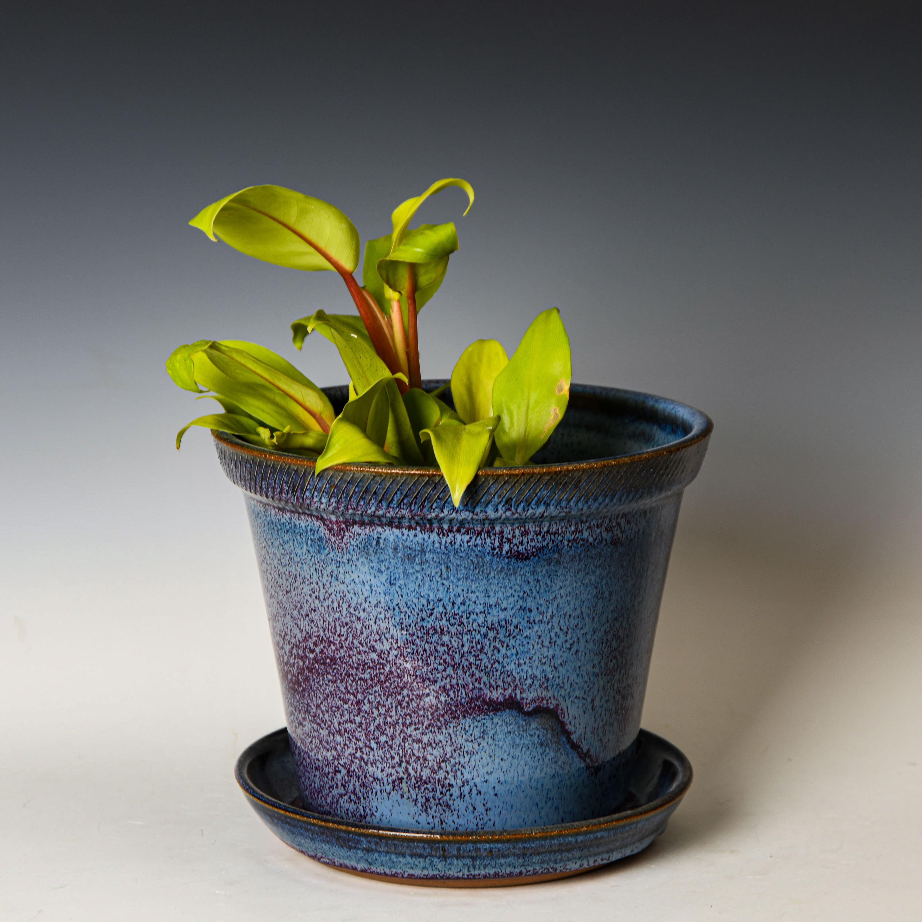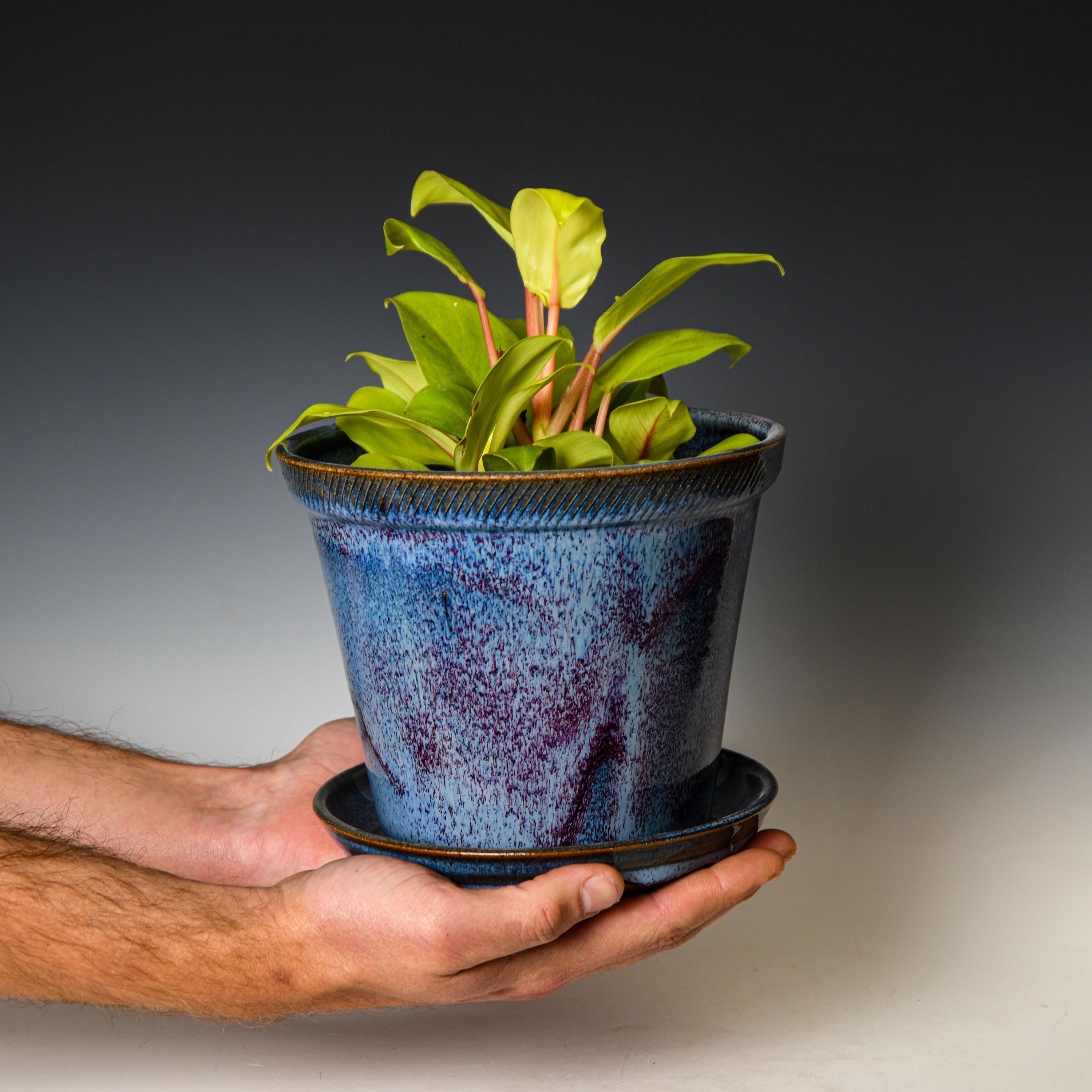 Pottery Planter with Drainage Holes in Blurple Glaze, Wheel Thrown Flower Pot, Stoneware Plant Pot #534