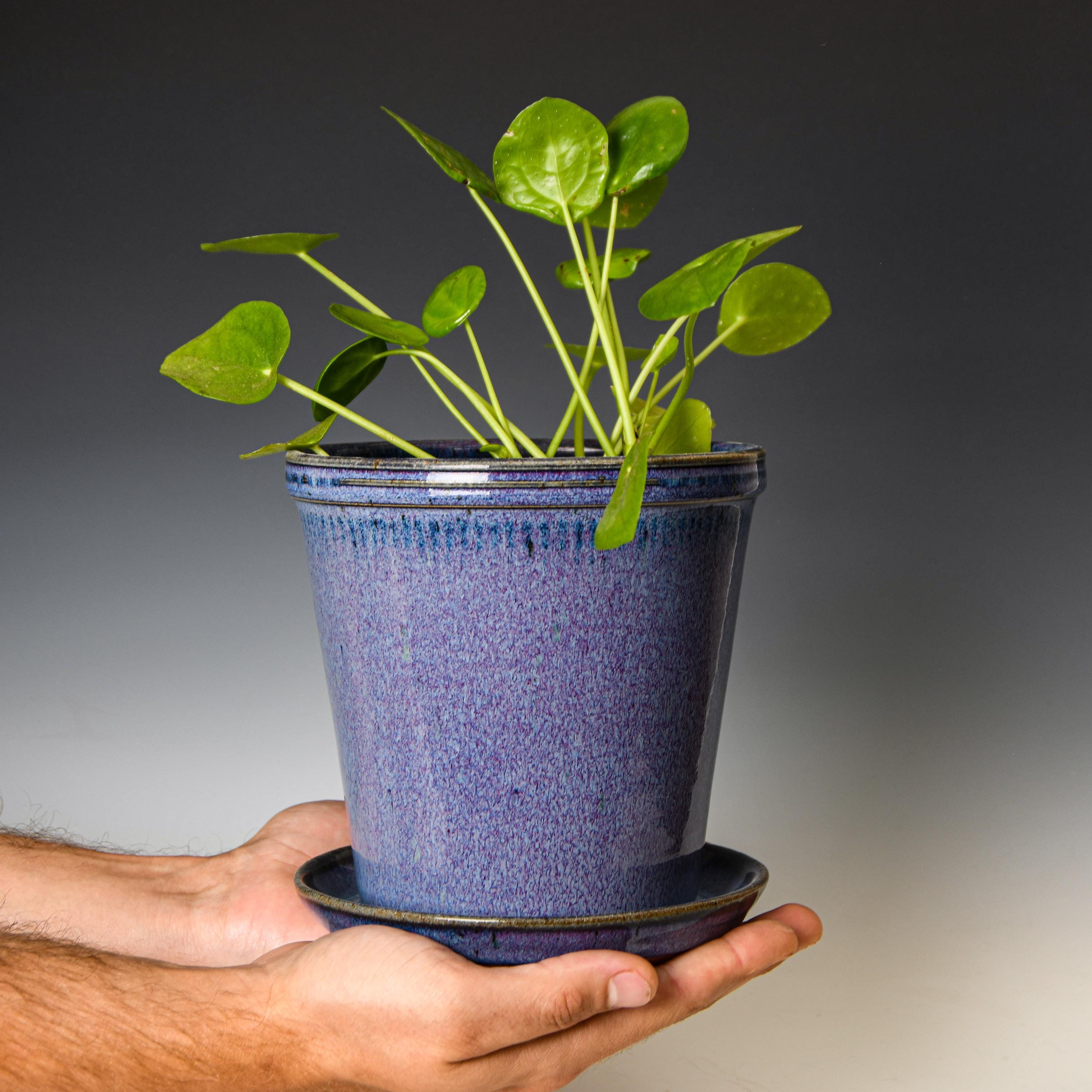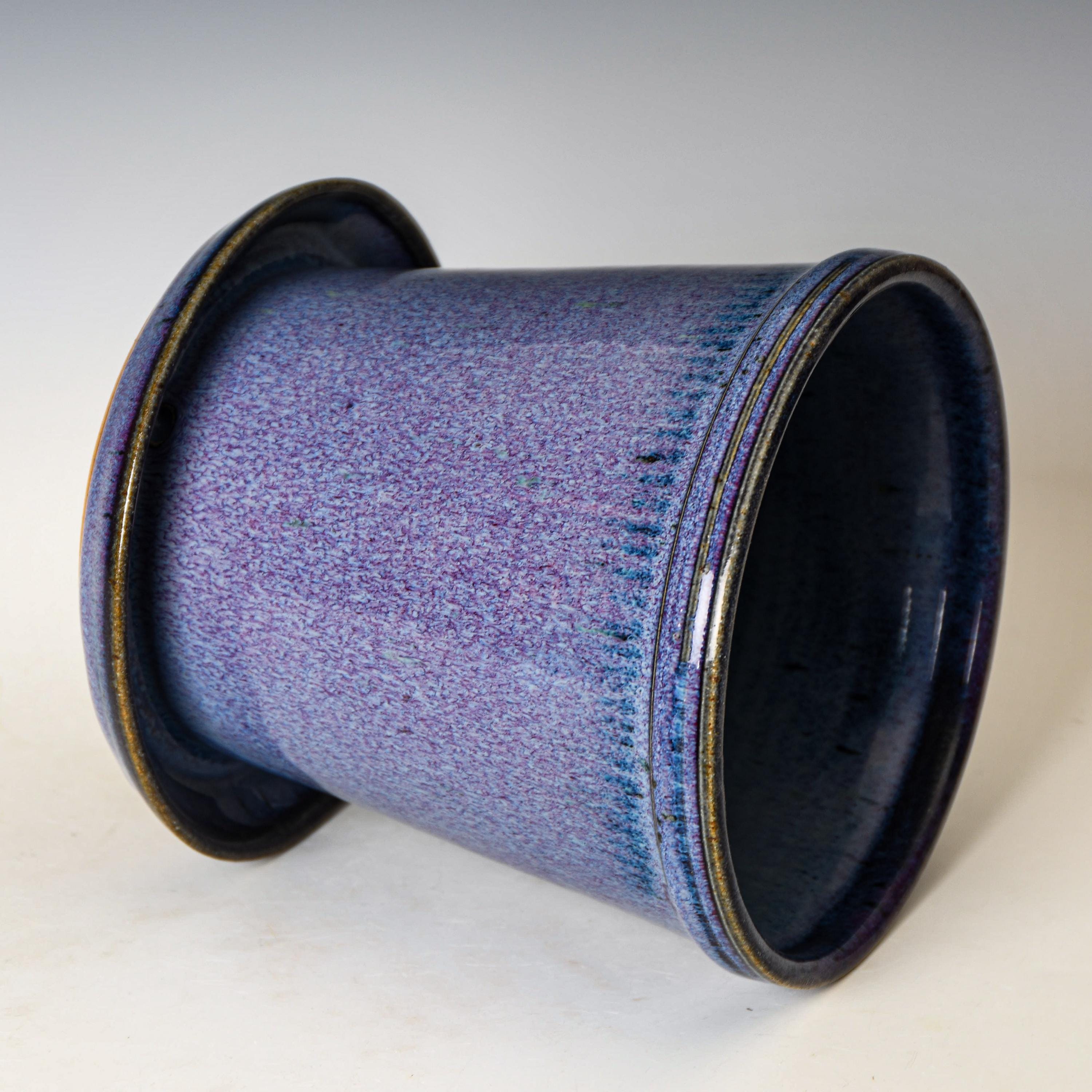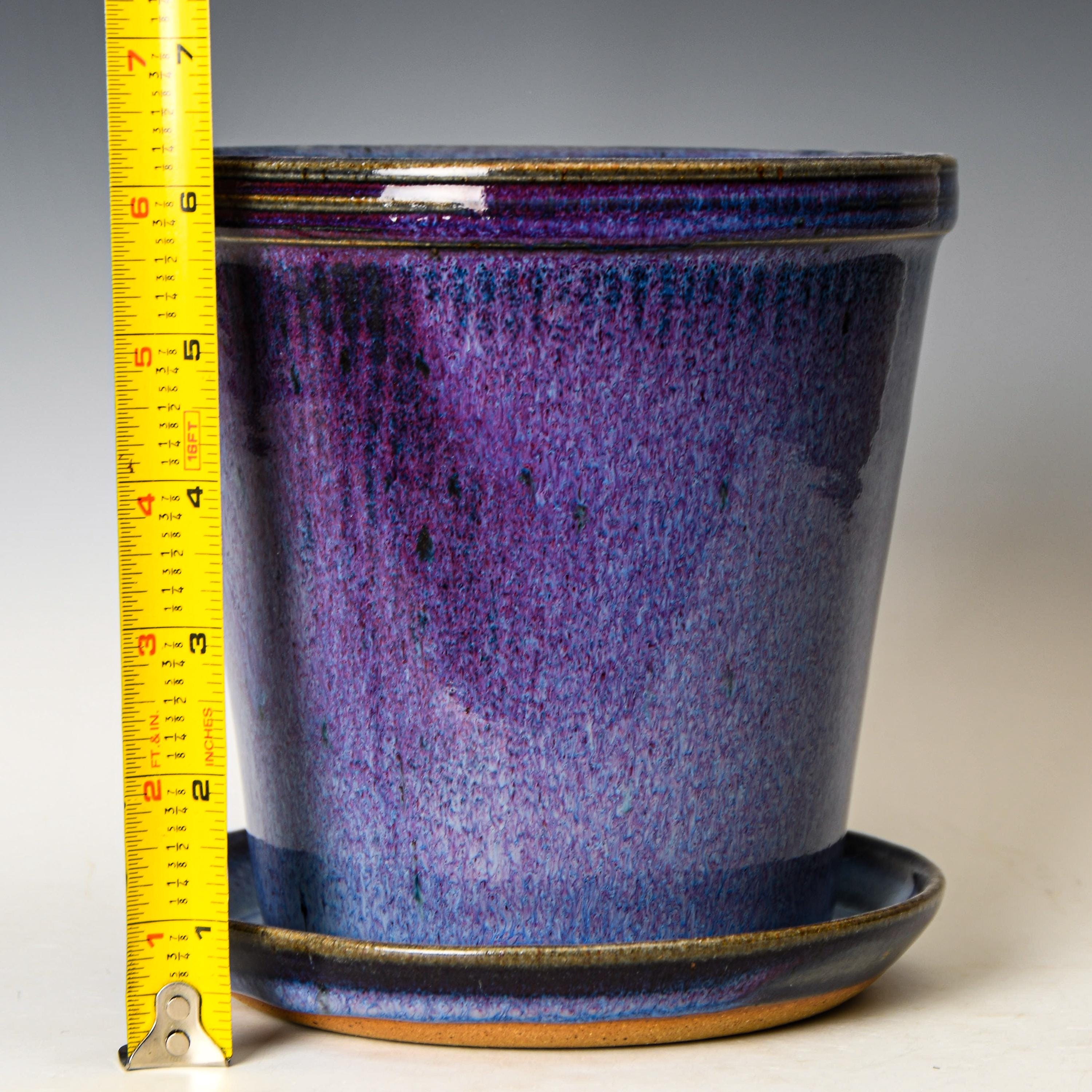 Ceramic Planter with Drainage Holes in Purple Glaze, Stoneware Plant Pot #606