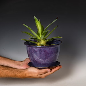Ceramic Planter with Drainage Holes in Ash Glaze, Stoneware Plant Pot #678