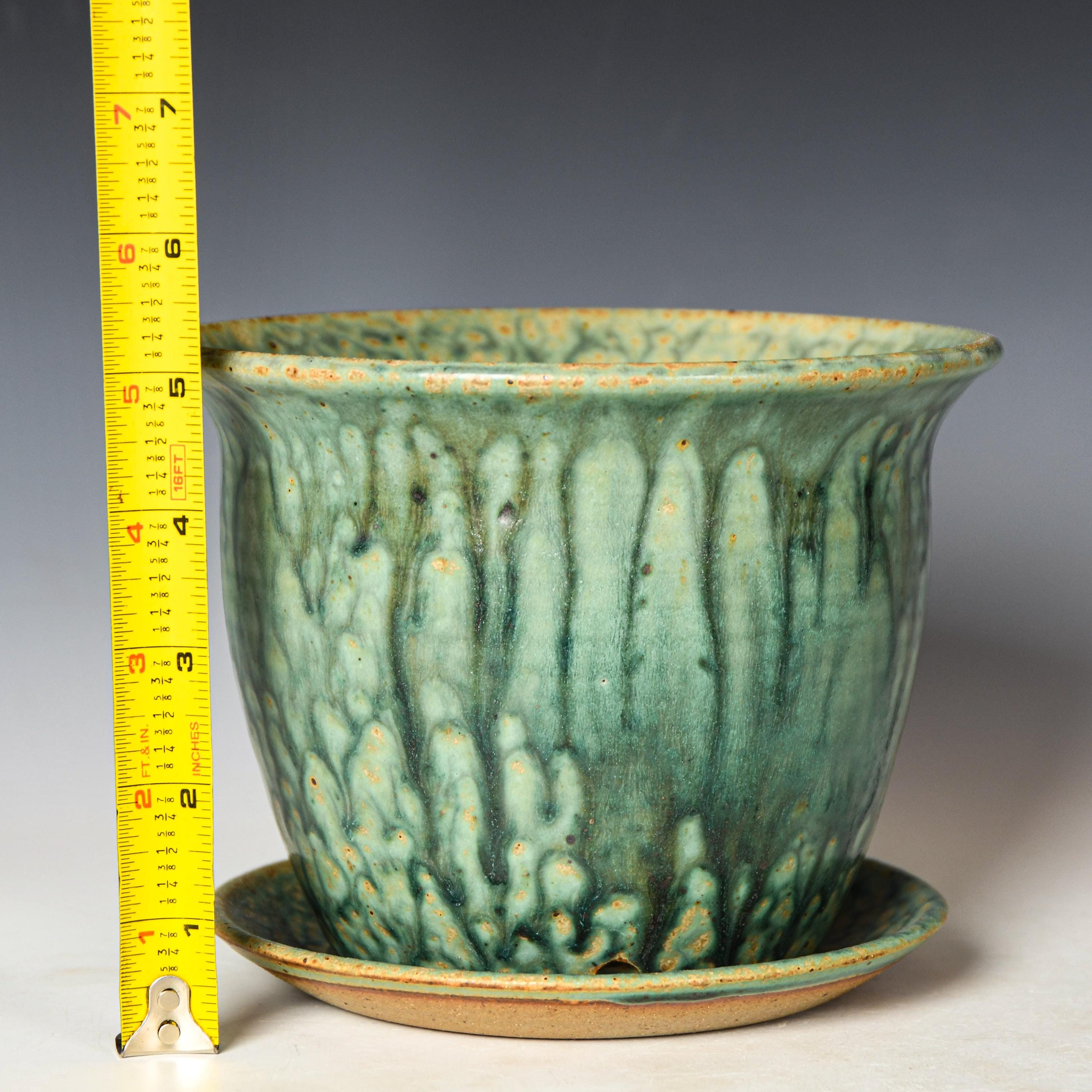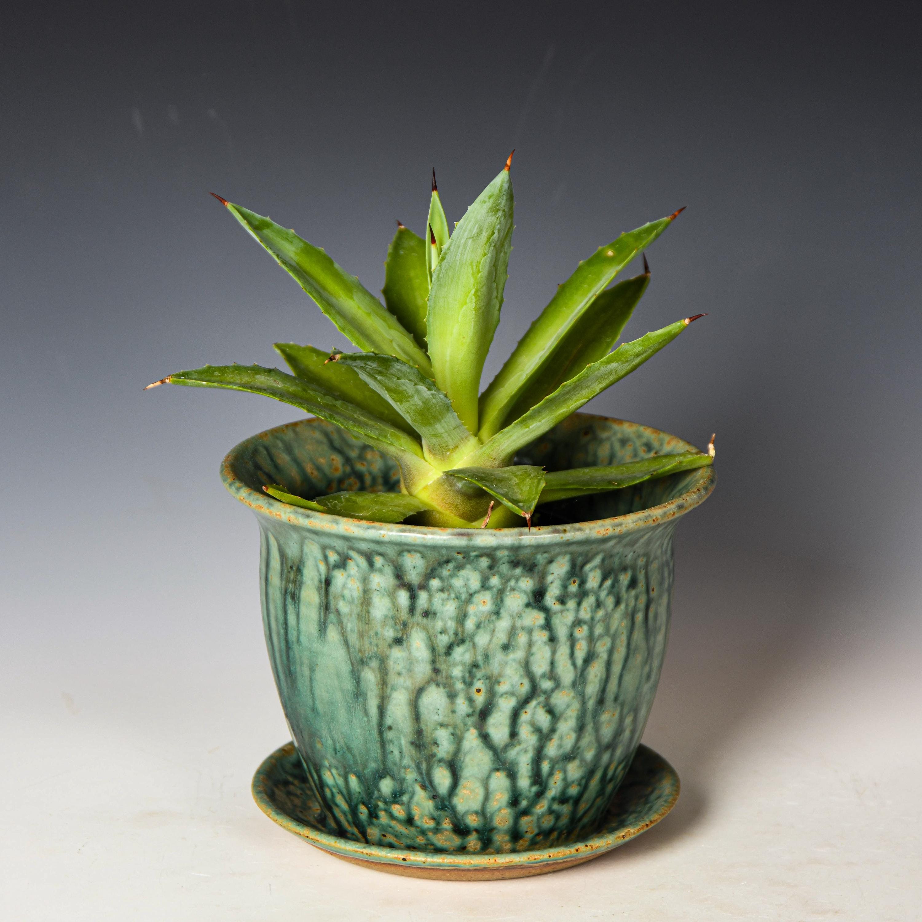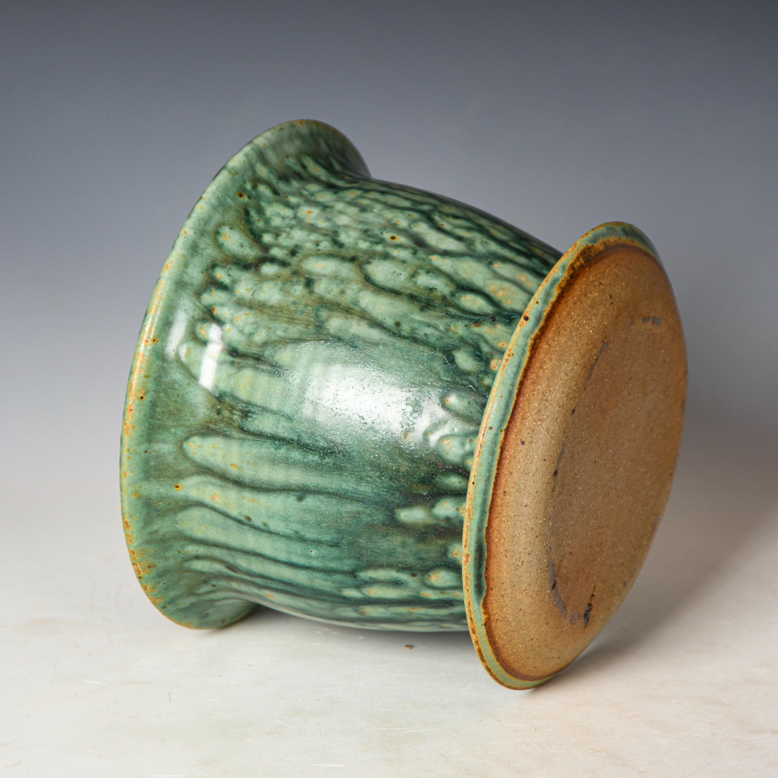 Wheel Thrown Planter with Drainage Holes in Green Glaze, Stoneware Plant Pot #709