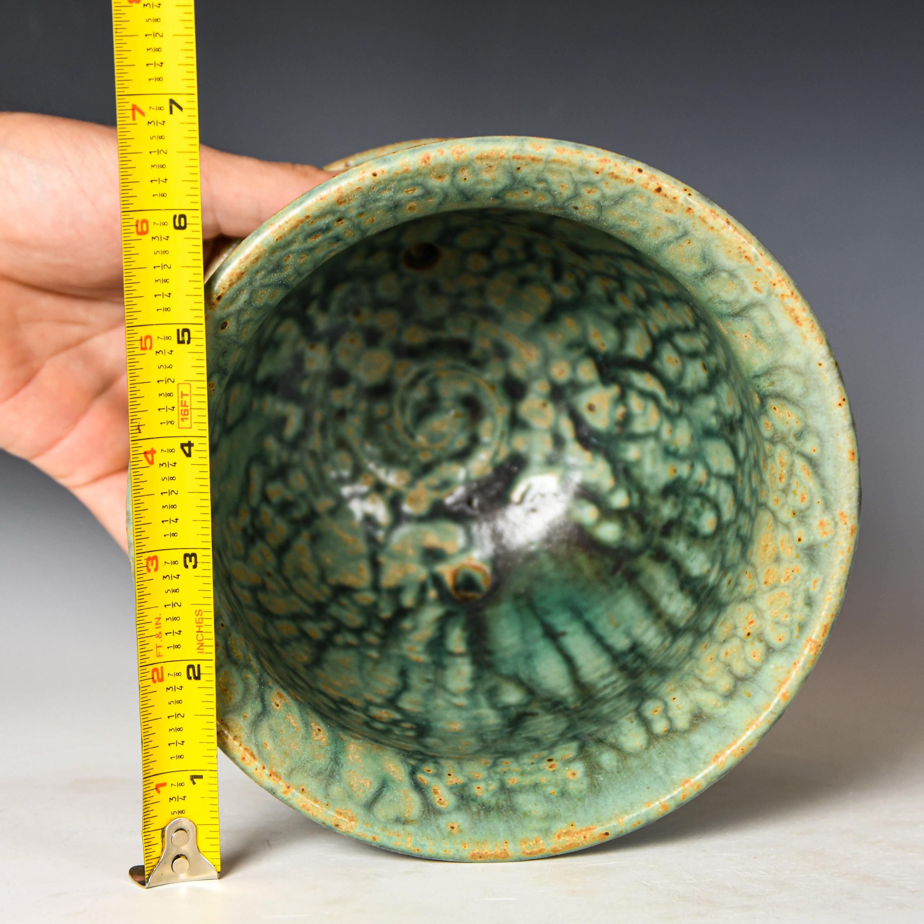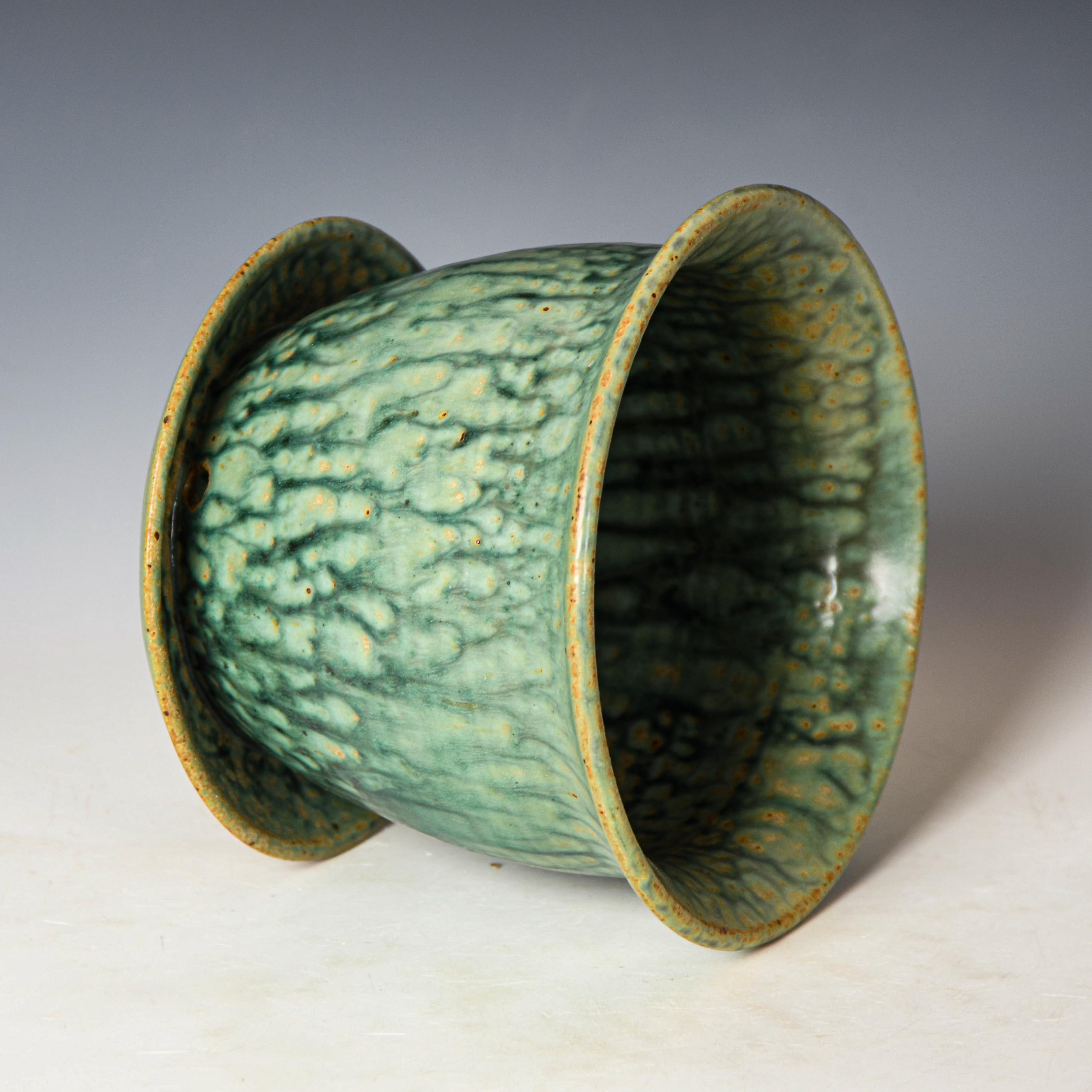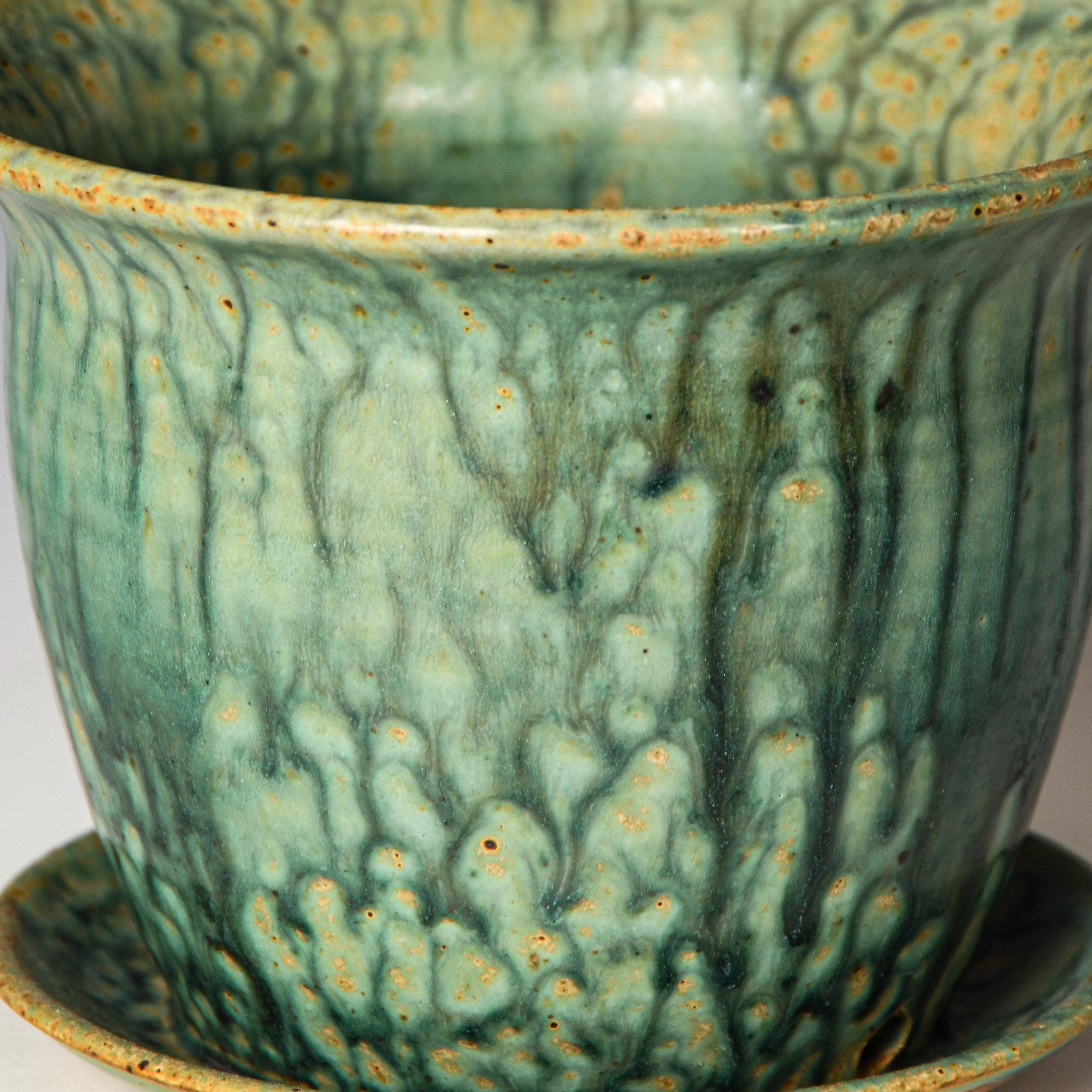 Wheel Thrown Planter with Drainage Holes in Green Glaze, Stoneware Plant Pot #709