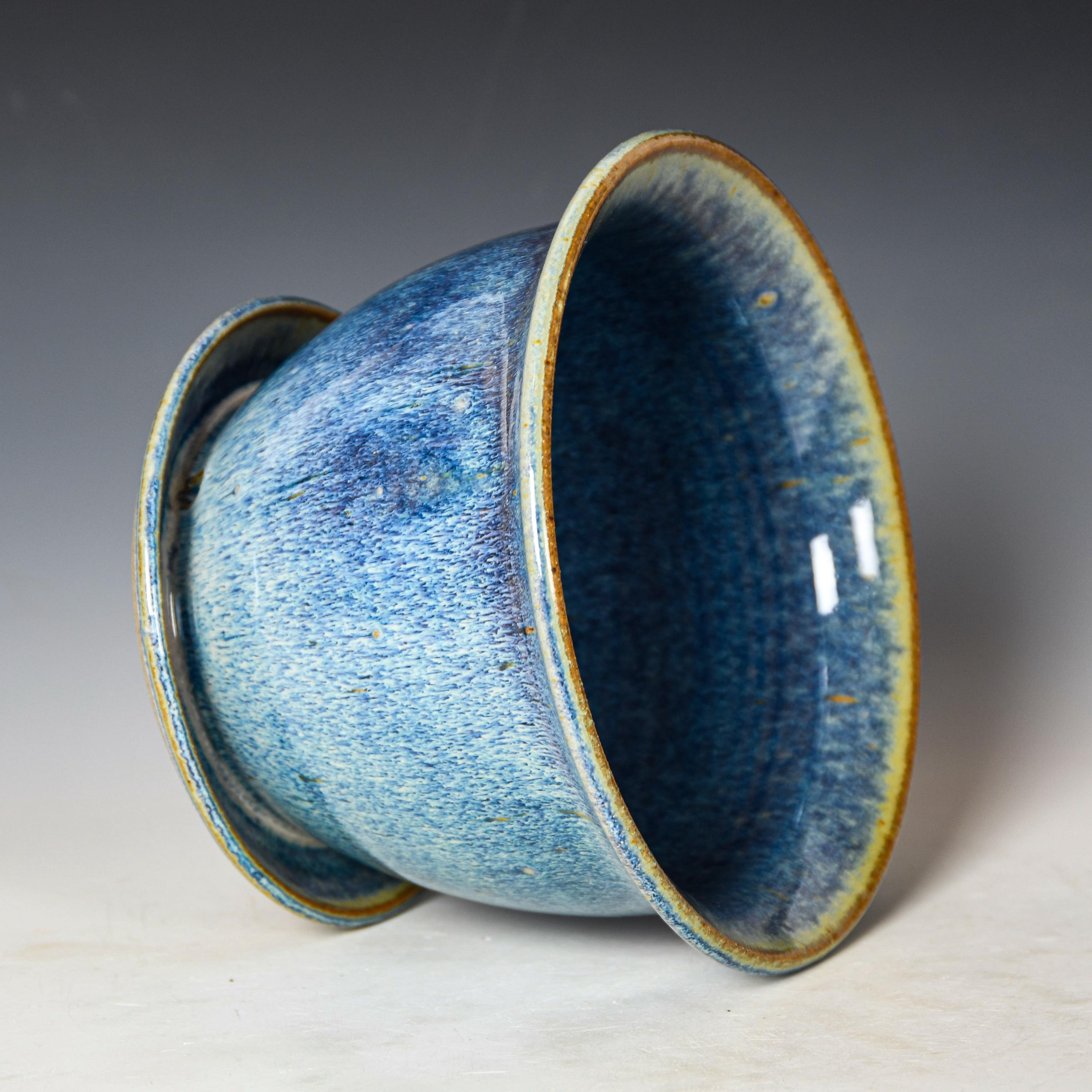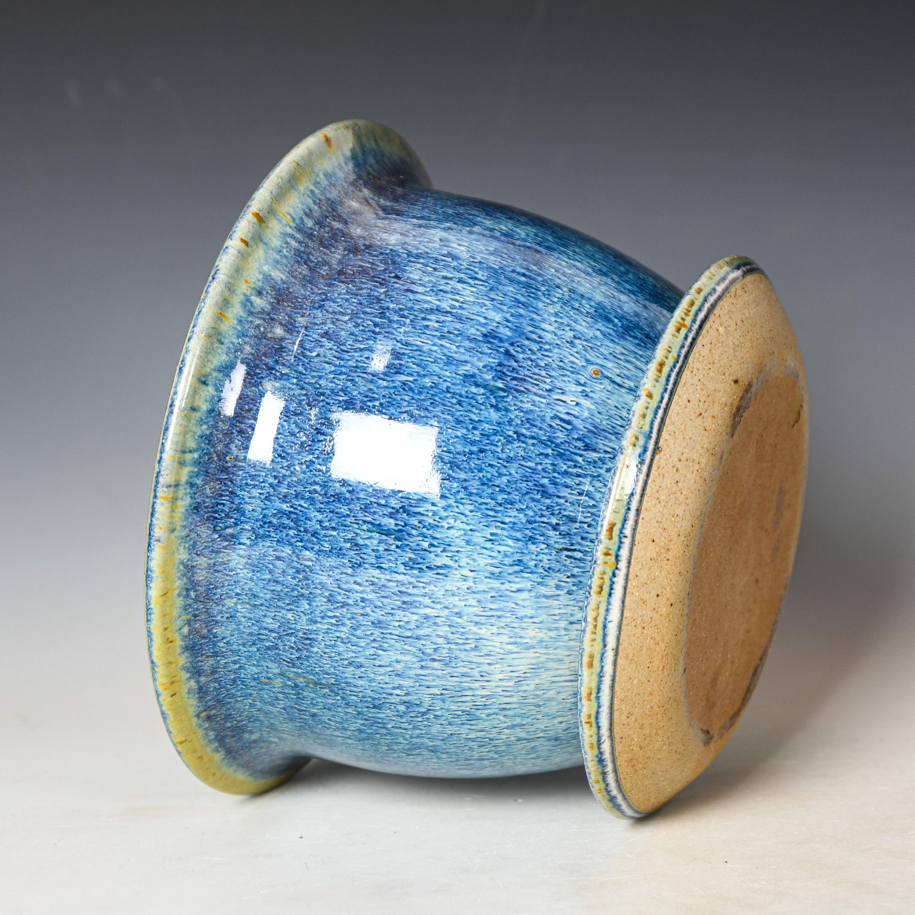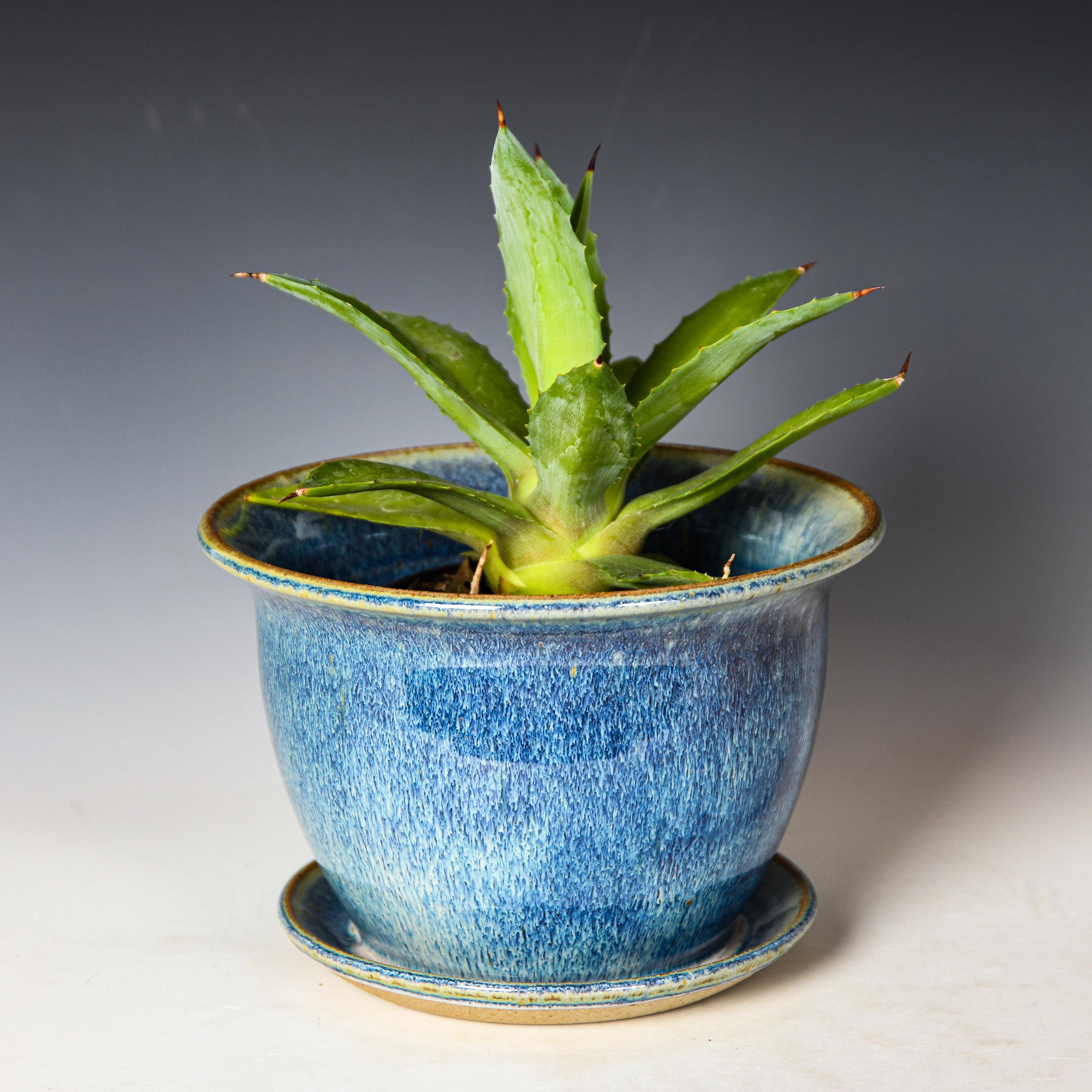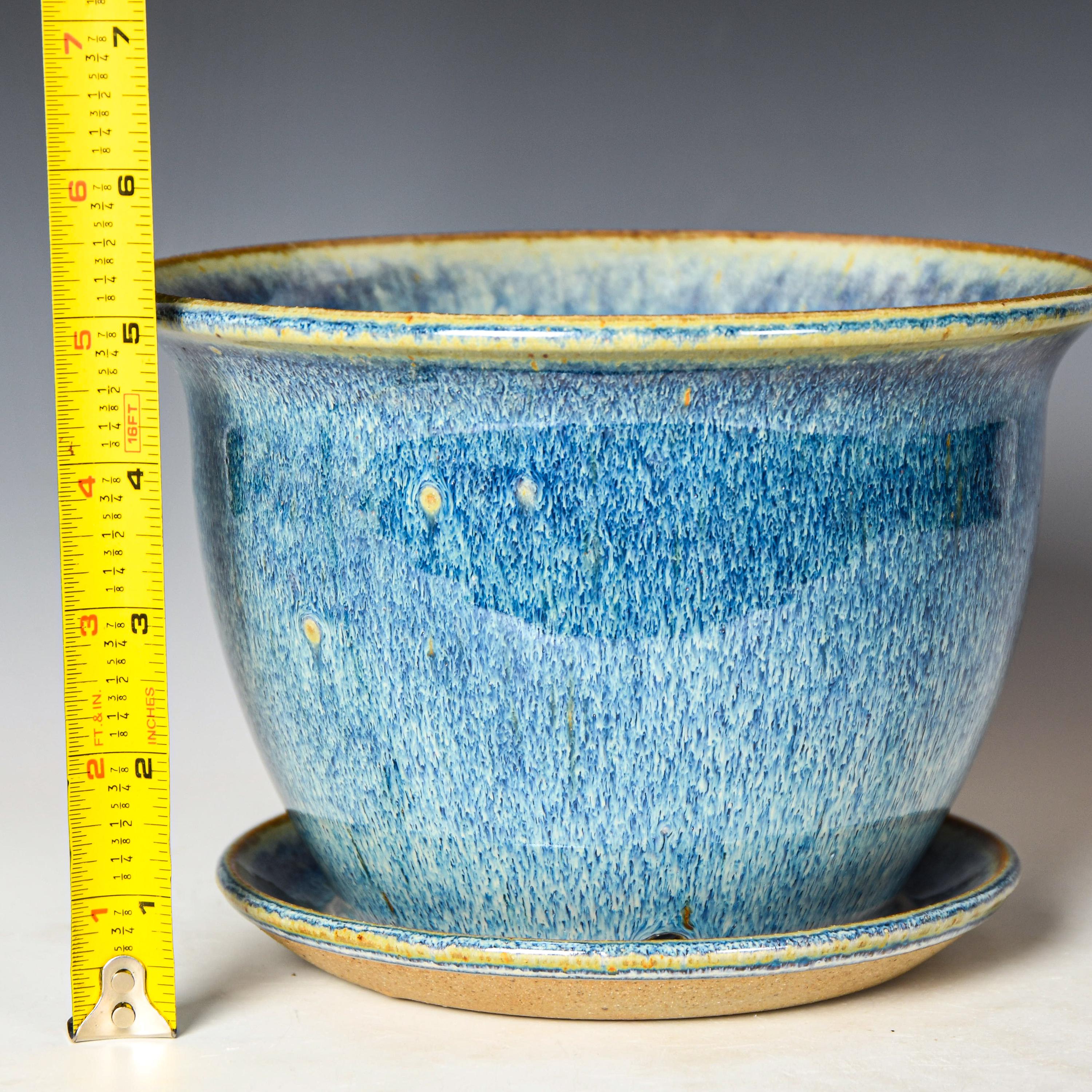 Wheel Thrown Planter with Drainage Holes in Blue Glaze, Stoneware Plant Pot #714