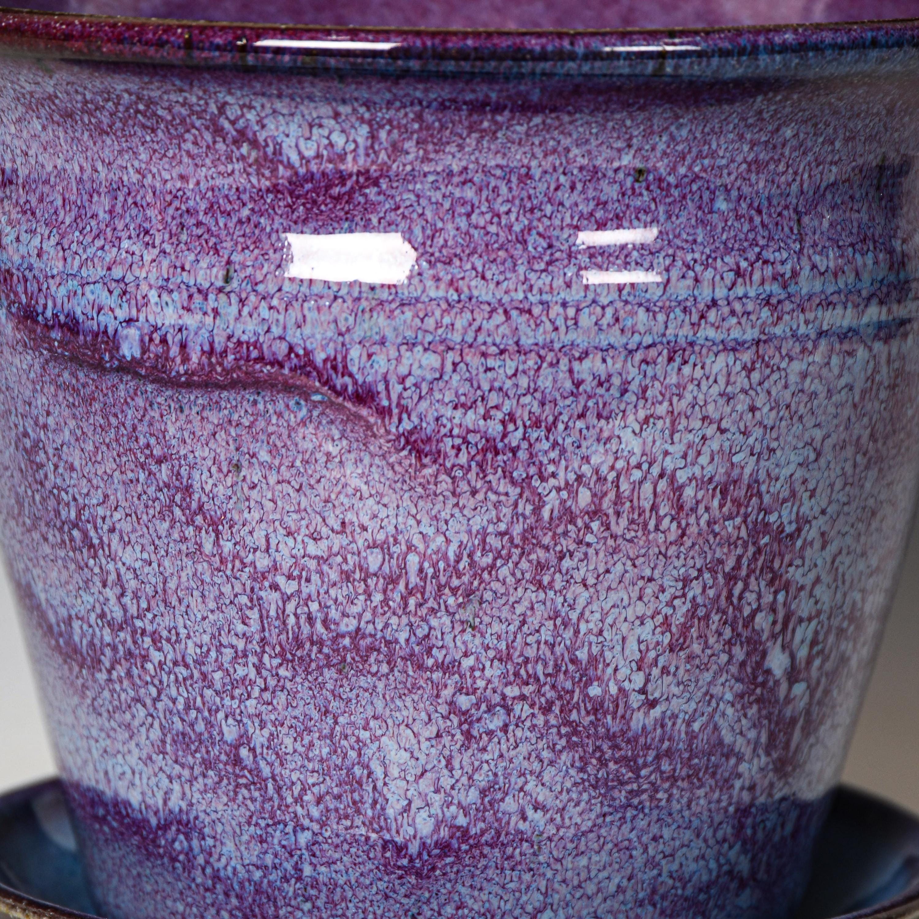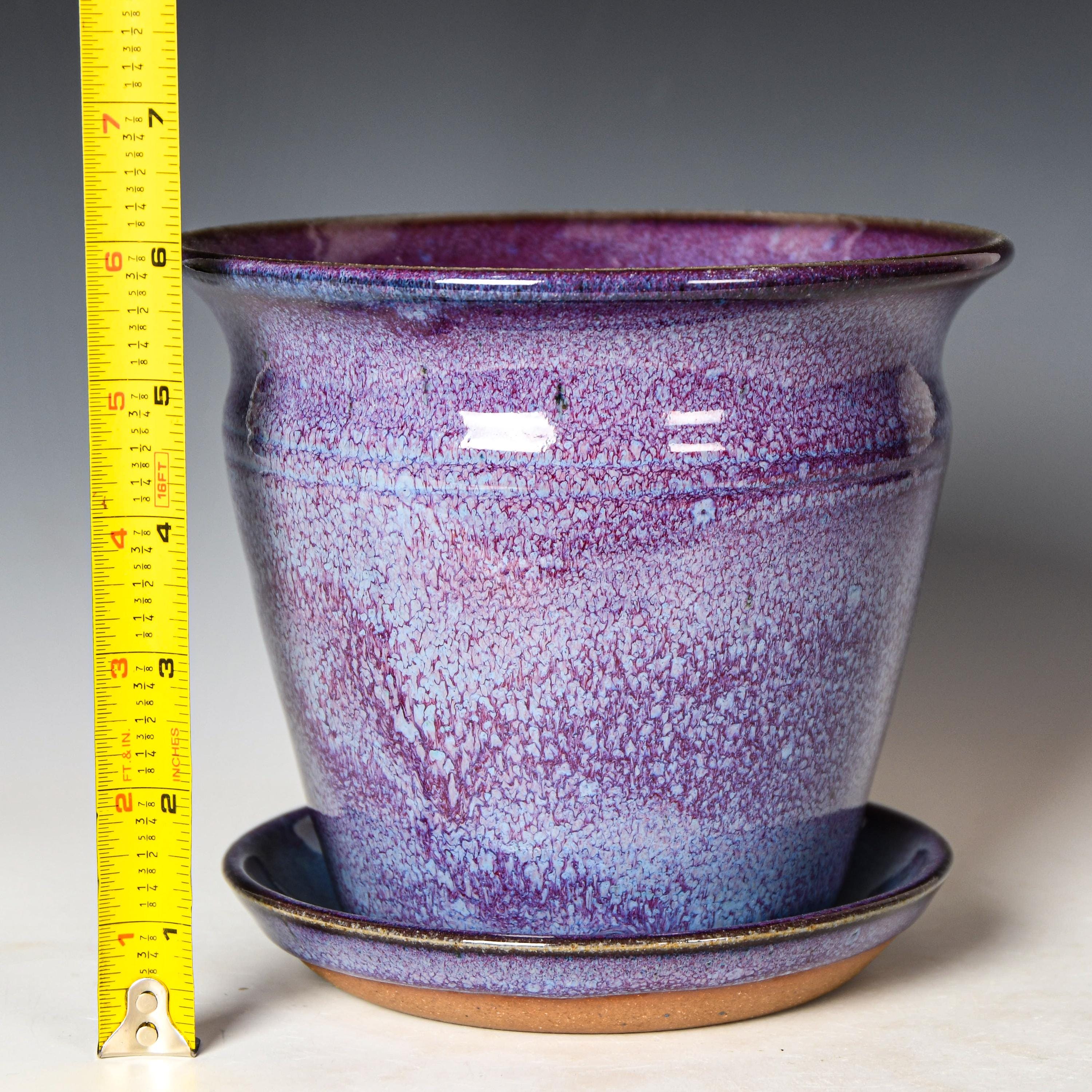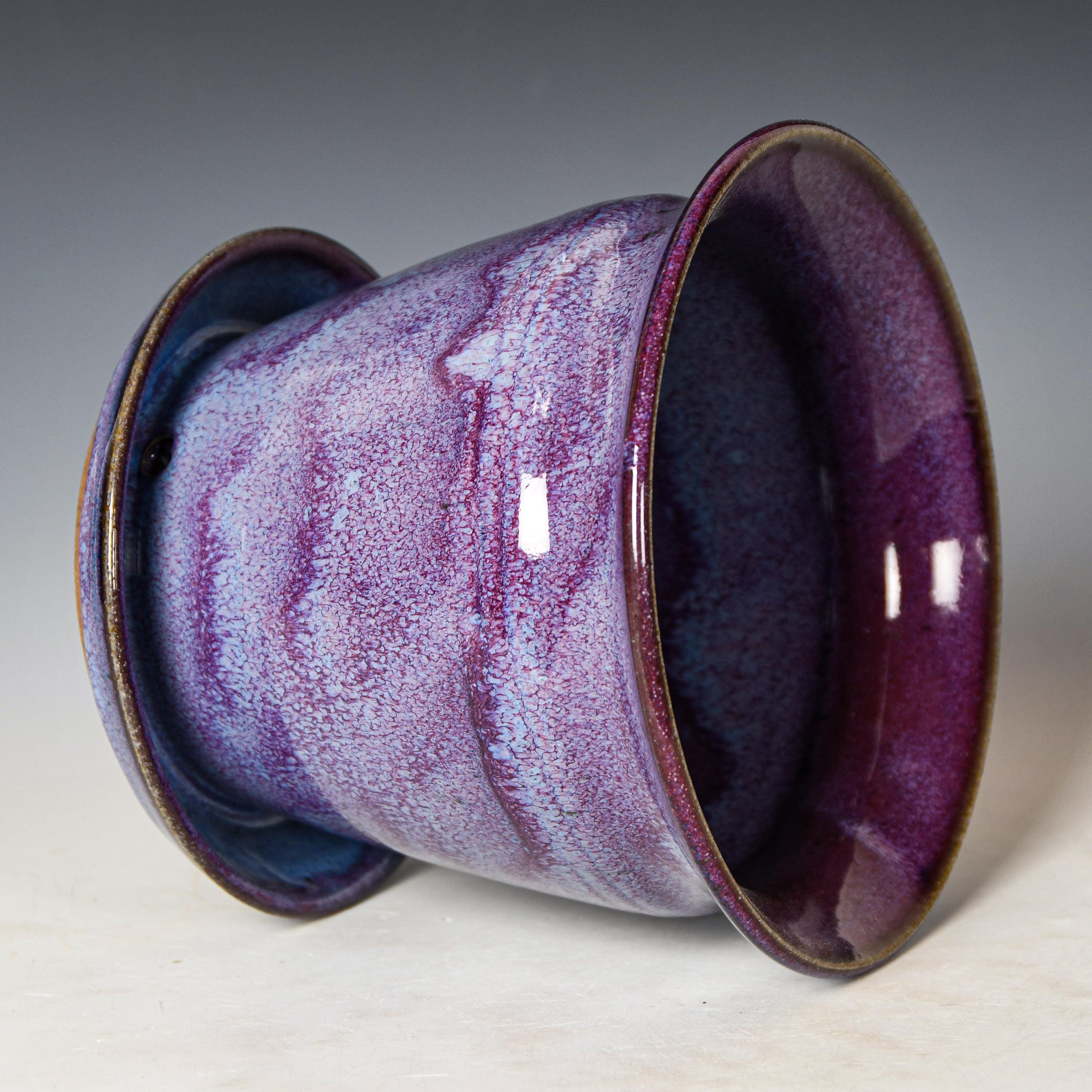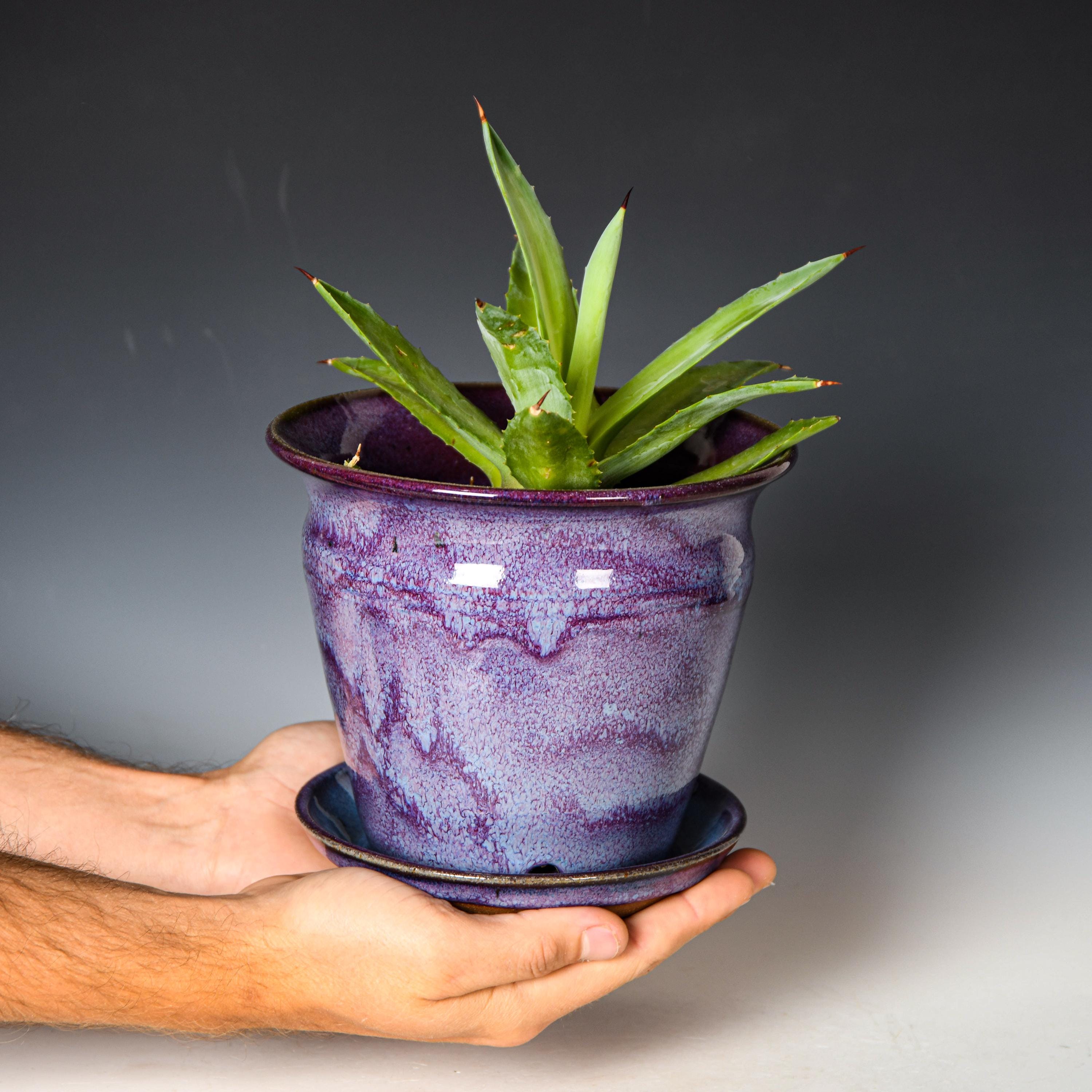 Ceramic Planter with Drainage Holes in Purple Glaze, Stoneware Plant Pot #716