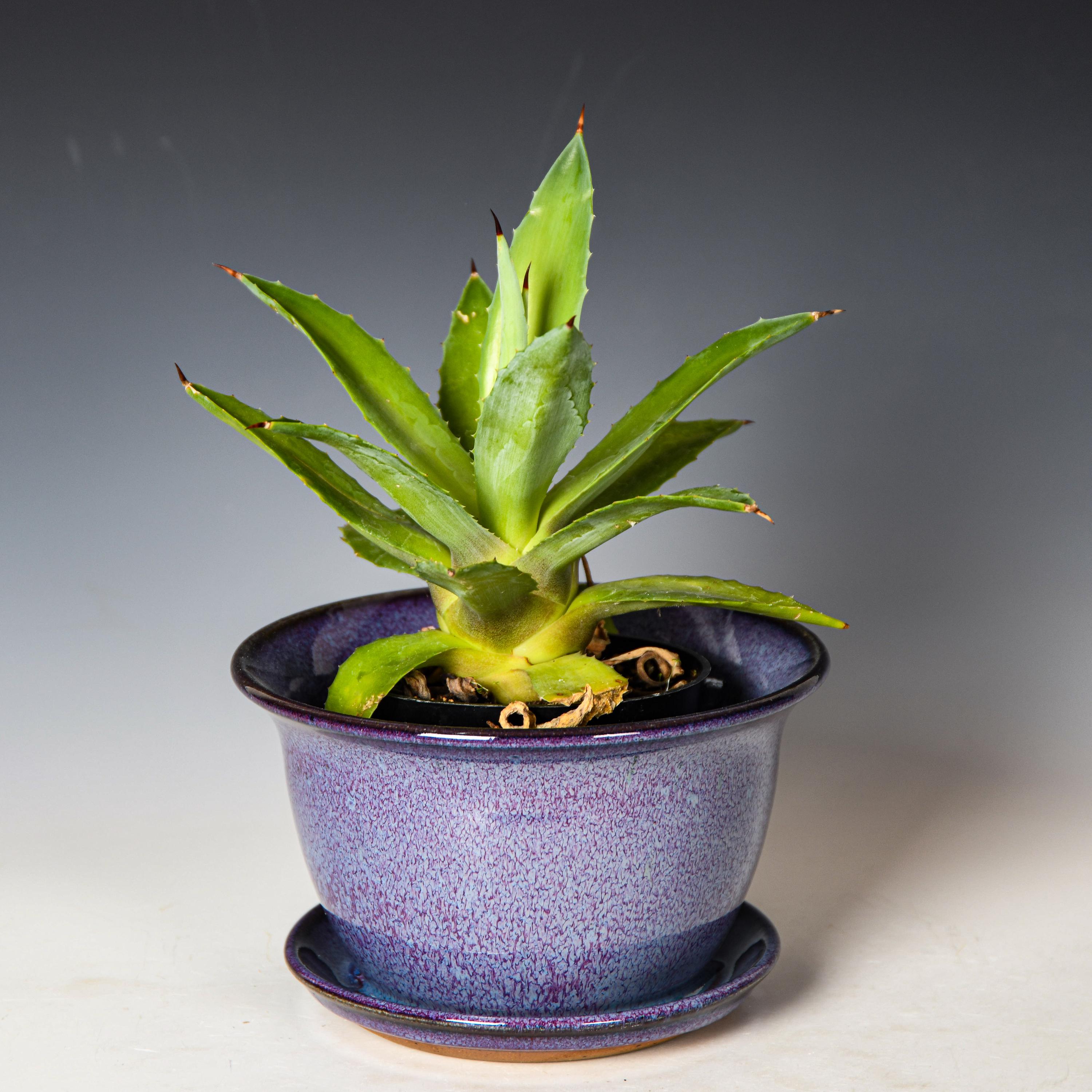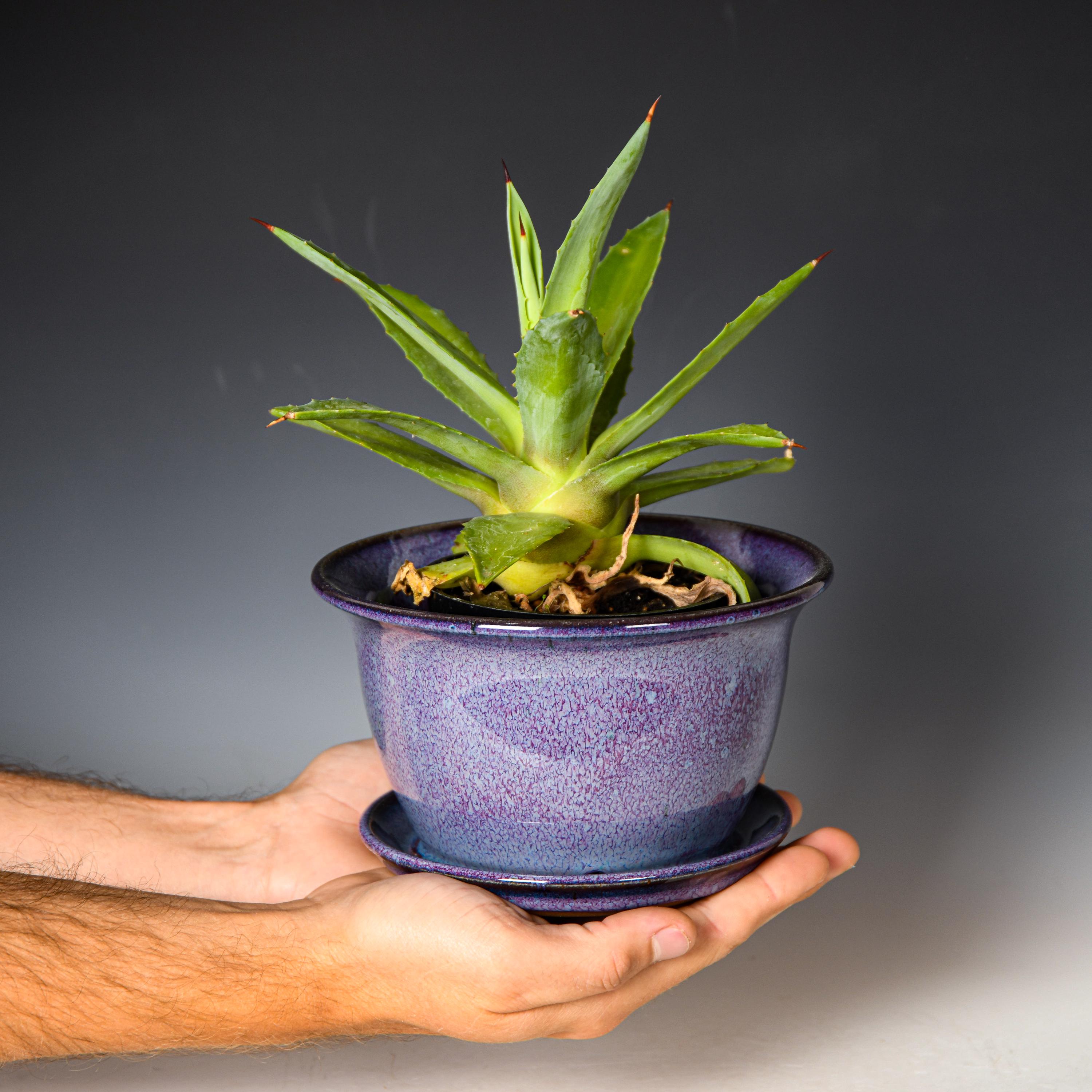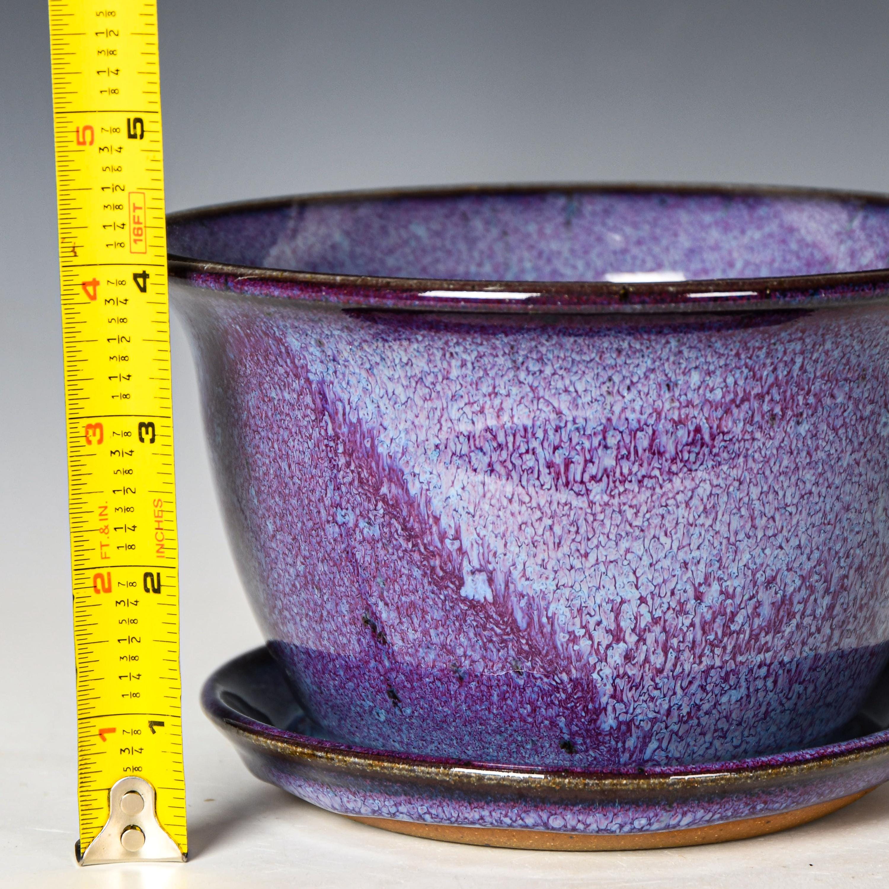 This planter has drainage holes & an attached drain dish.