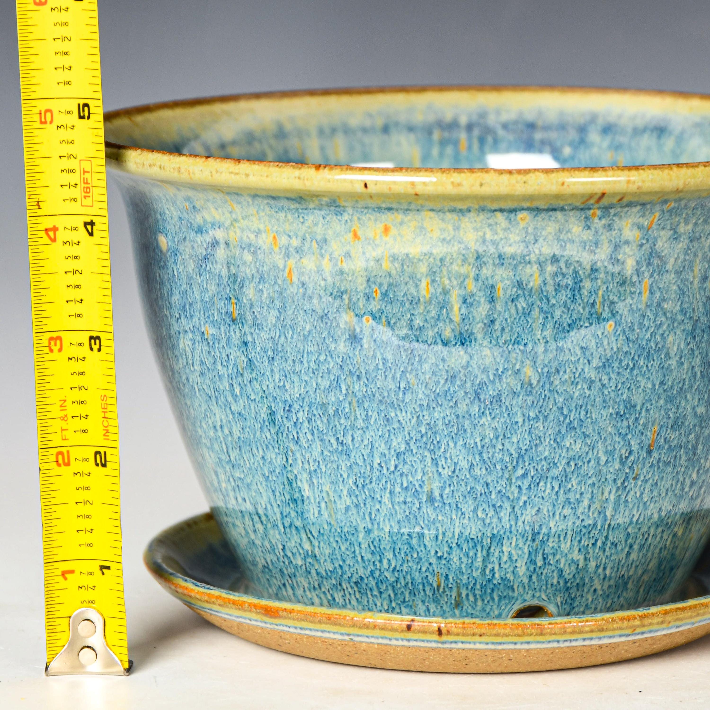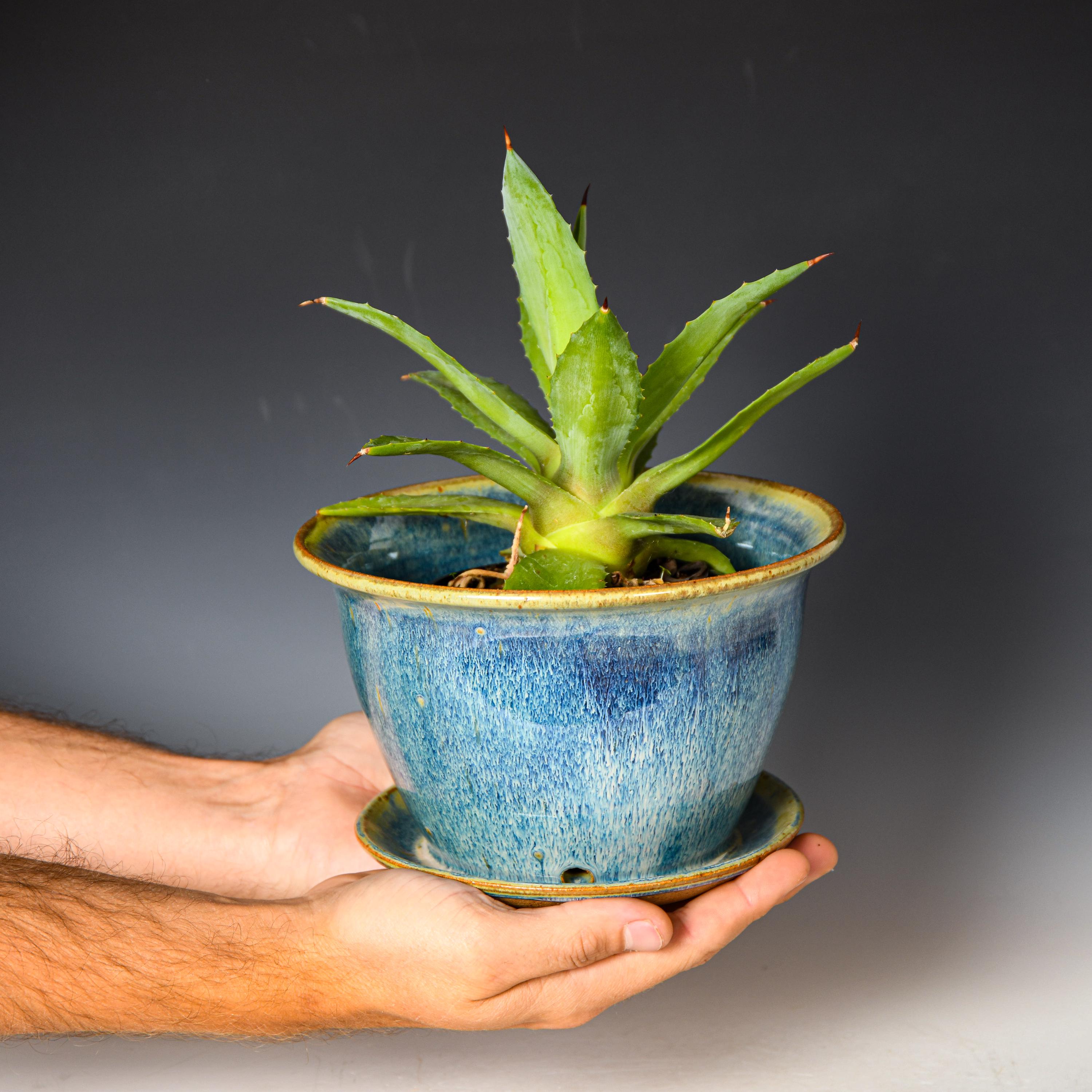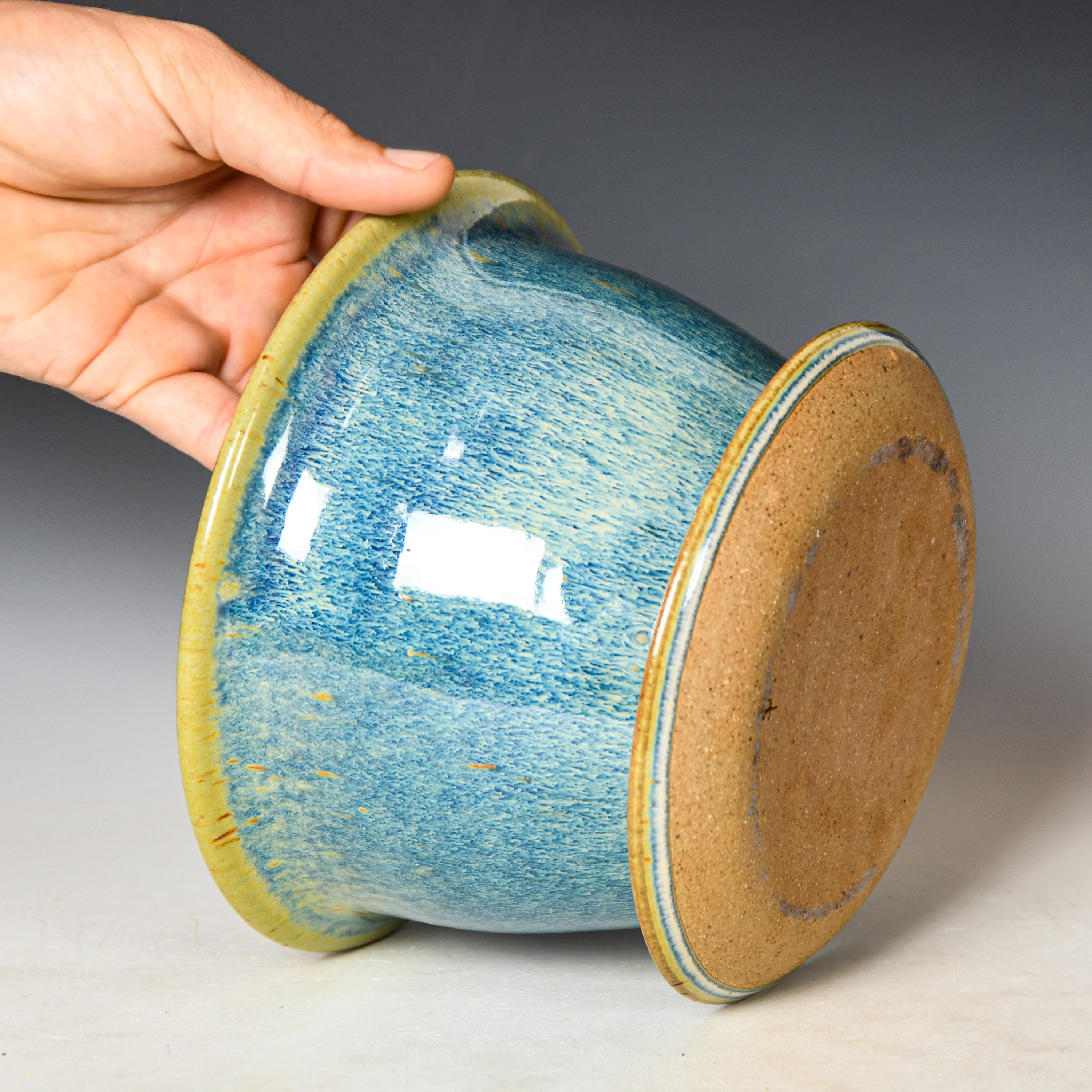 Wheel Thrown Planter with Drainage Holes in Blue Glaze, Stoneware Plant Pot #727