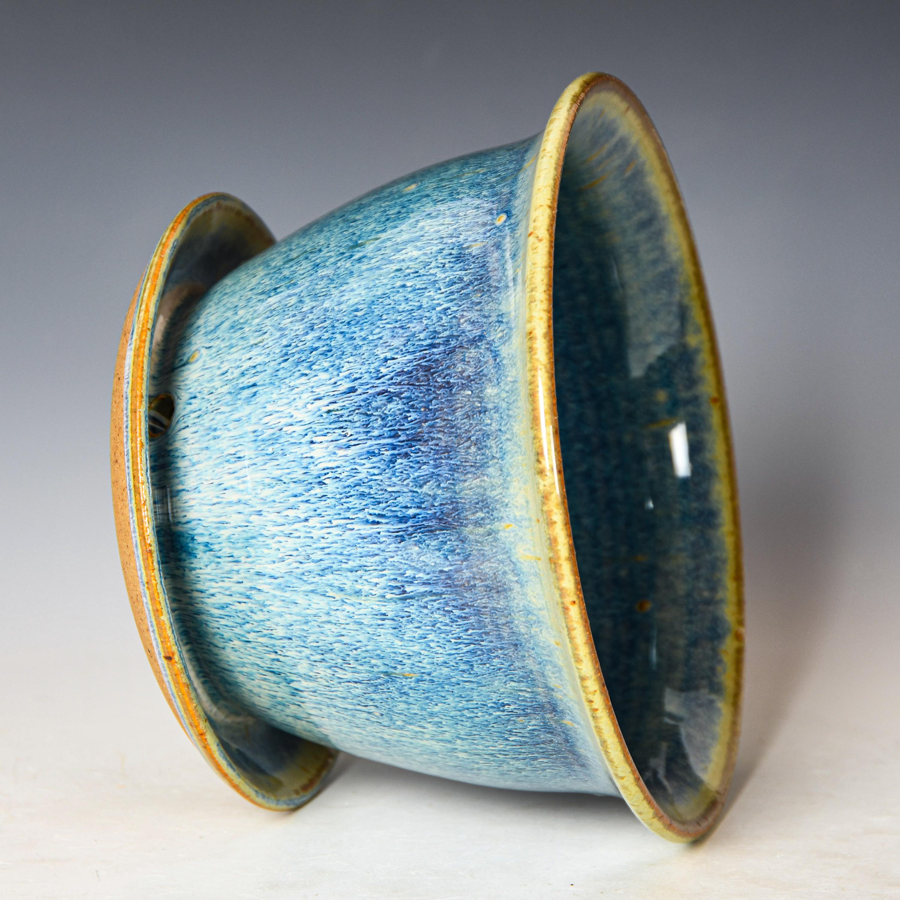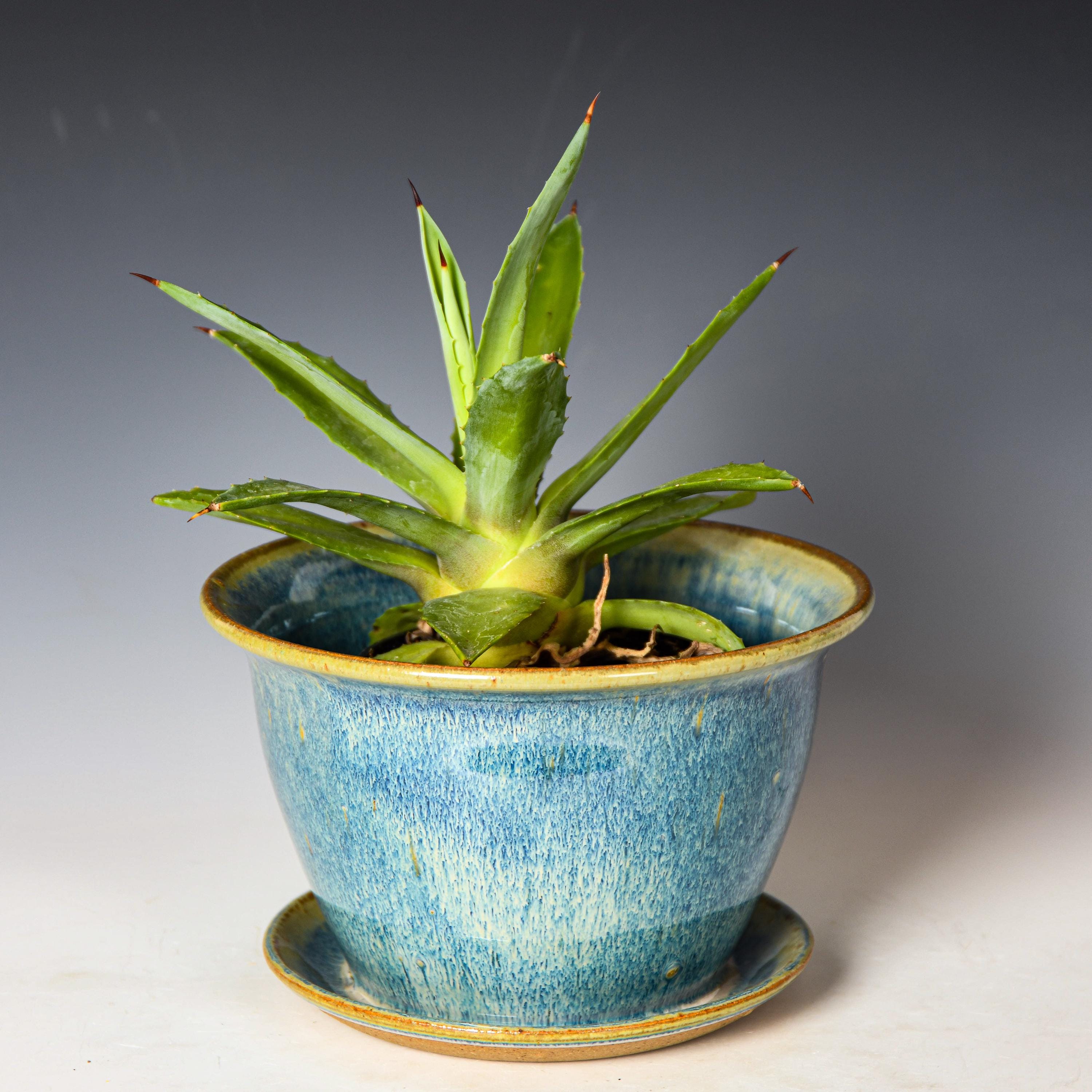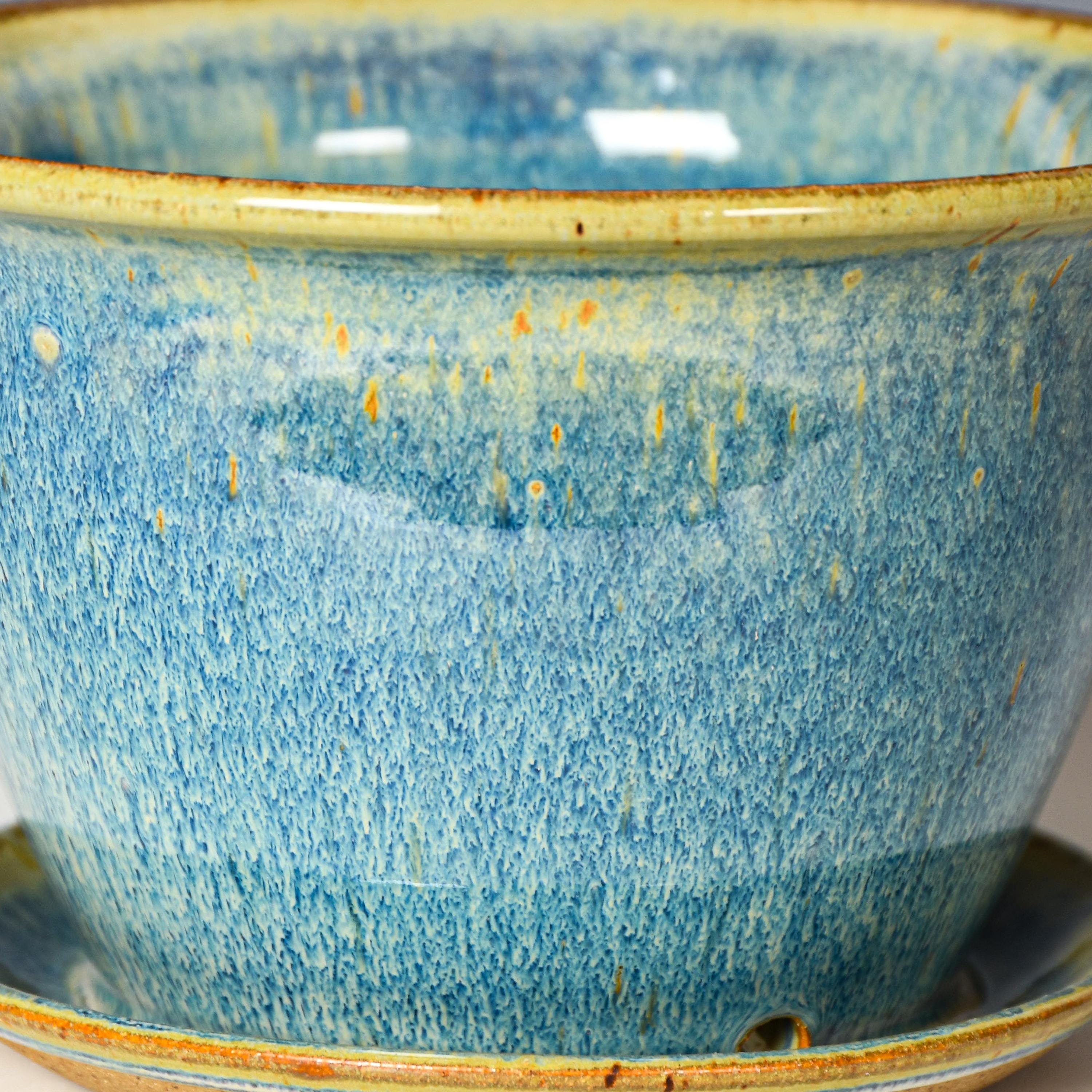 Wheel Thrown Planter with Drainage Holes in Blue Glaze, Stoneware Plant Pot #727