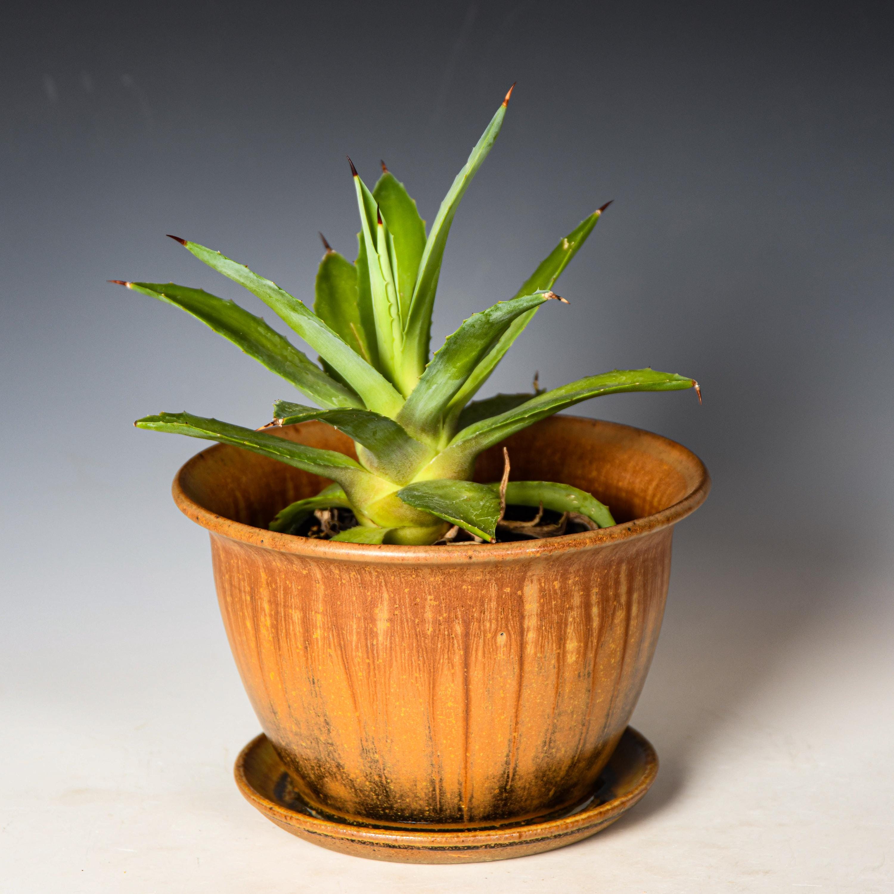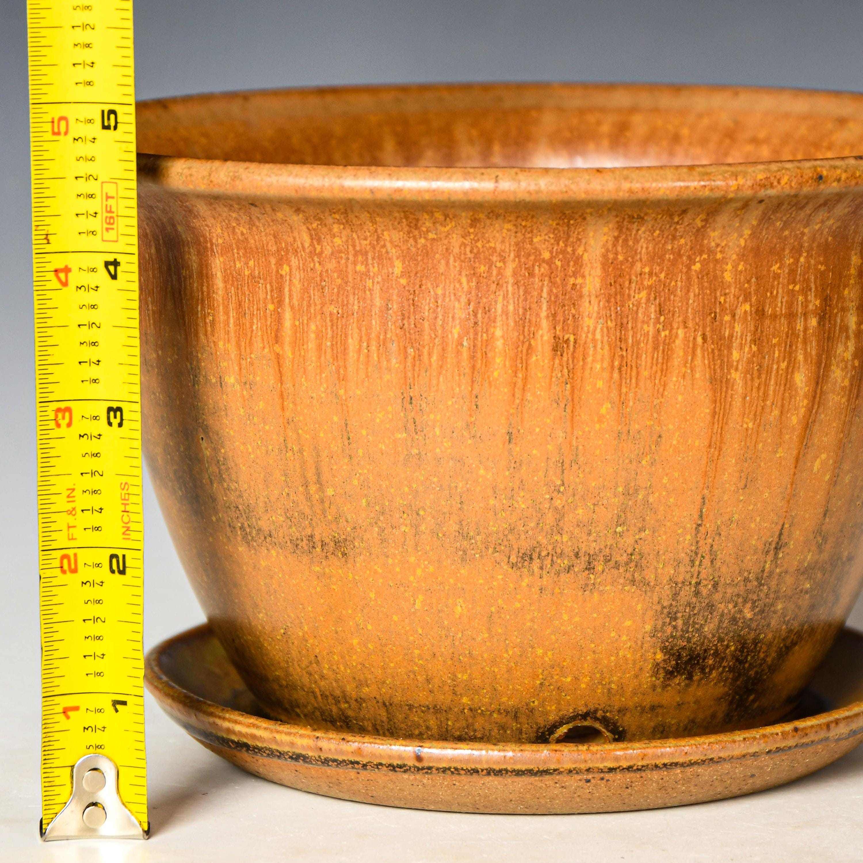 Wheel Thrown Planter with Drainage Holes in Yellow Ash Glaze, Stoneware Plant Pot #733