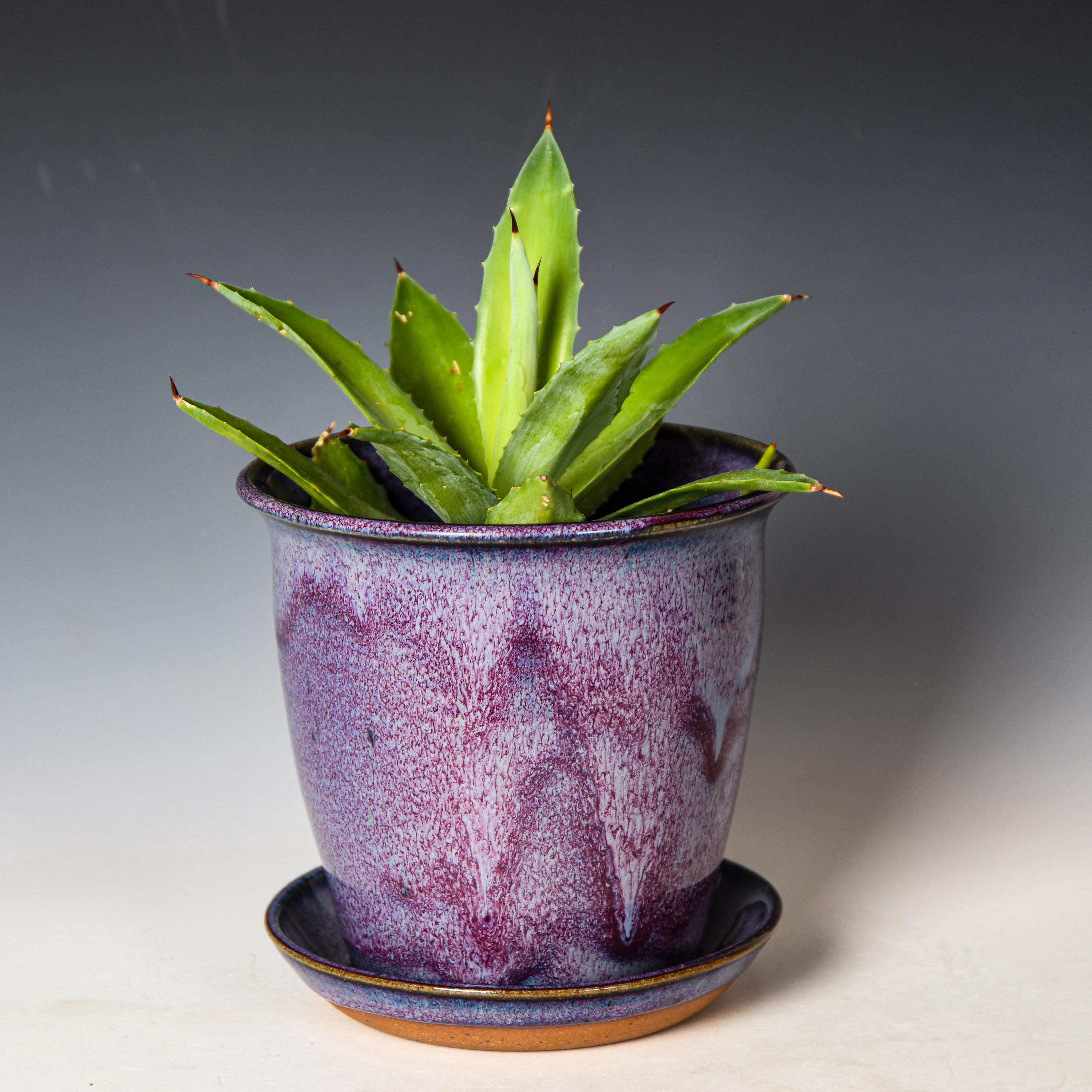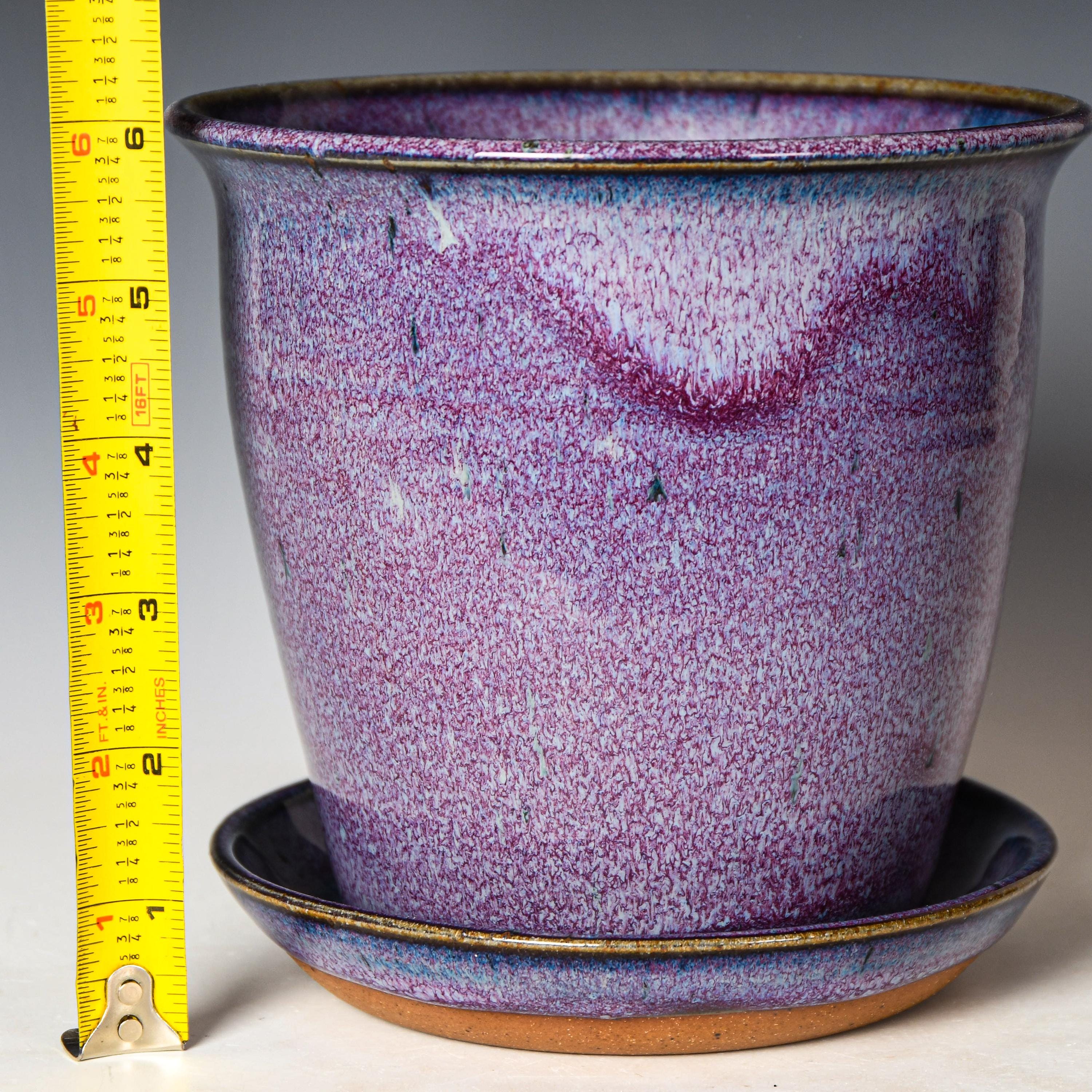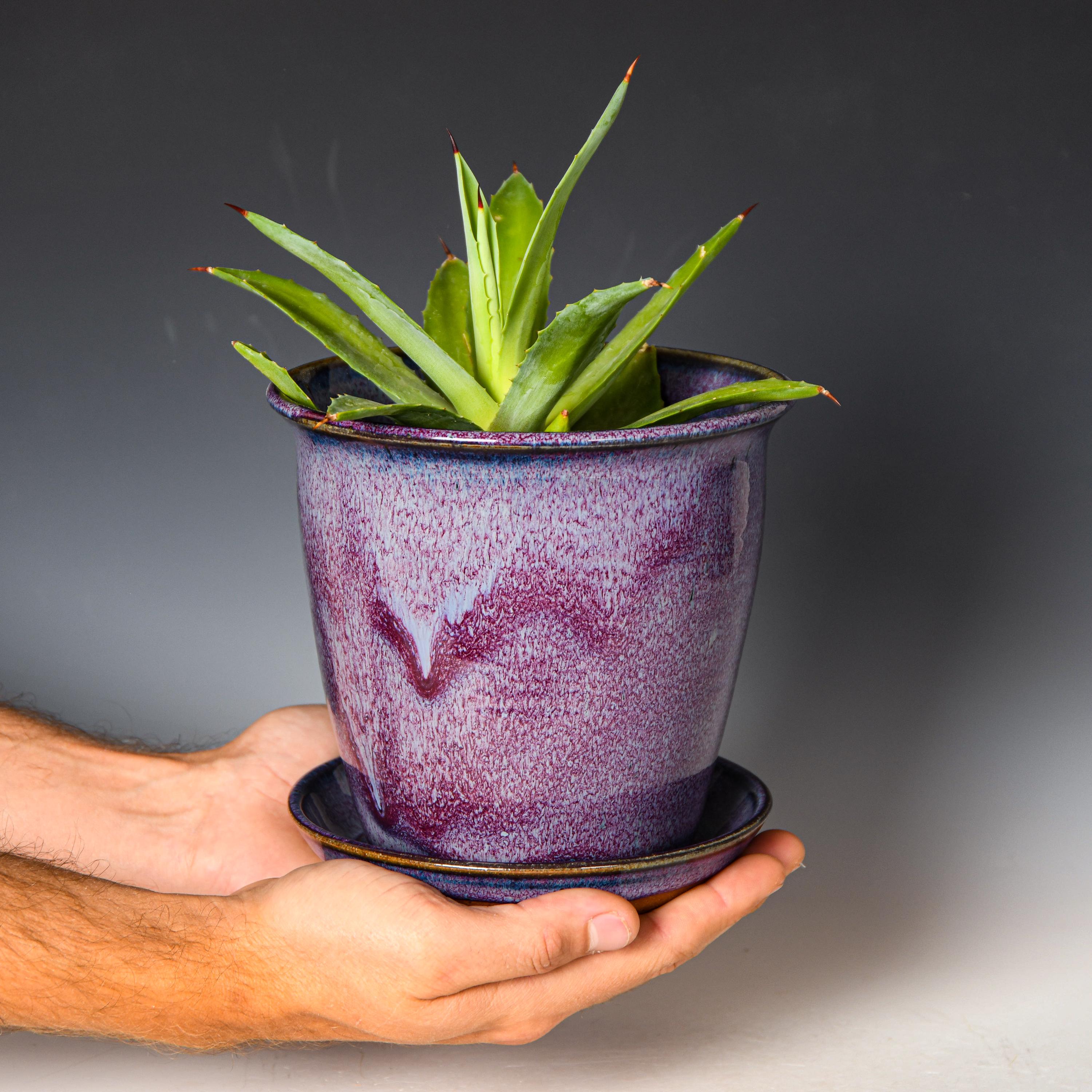 Ceramic Planter with Drainage Holes in Purple Glaze, Stoneware Plant Pot #728