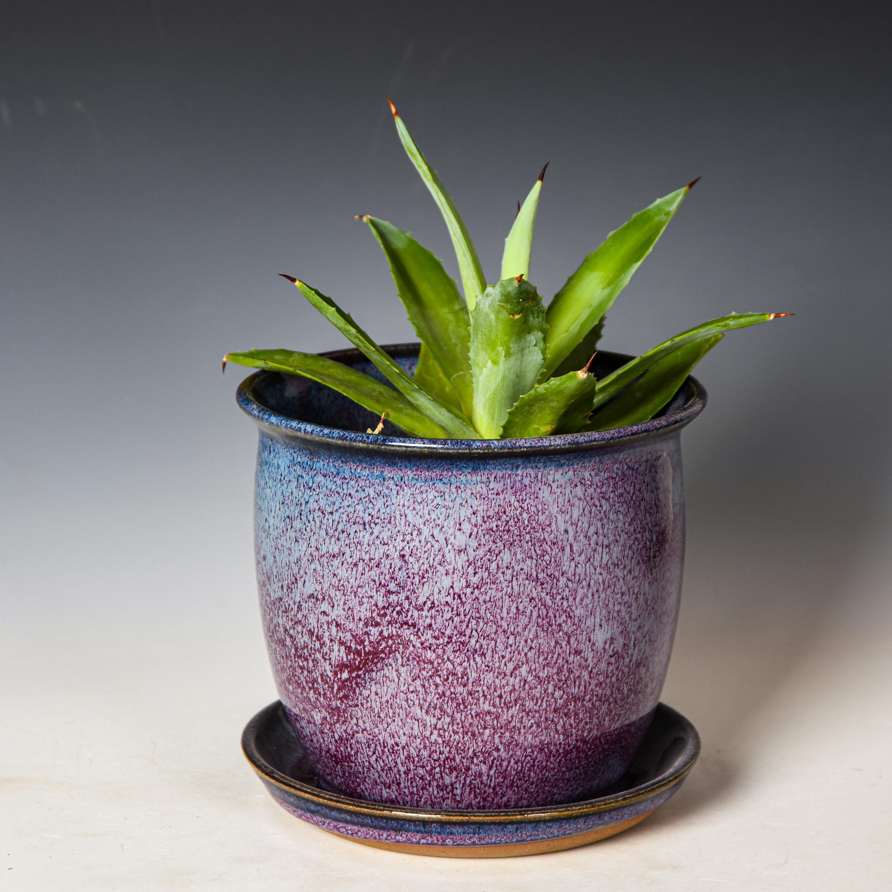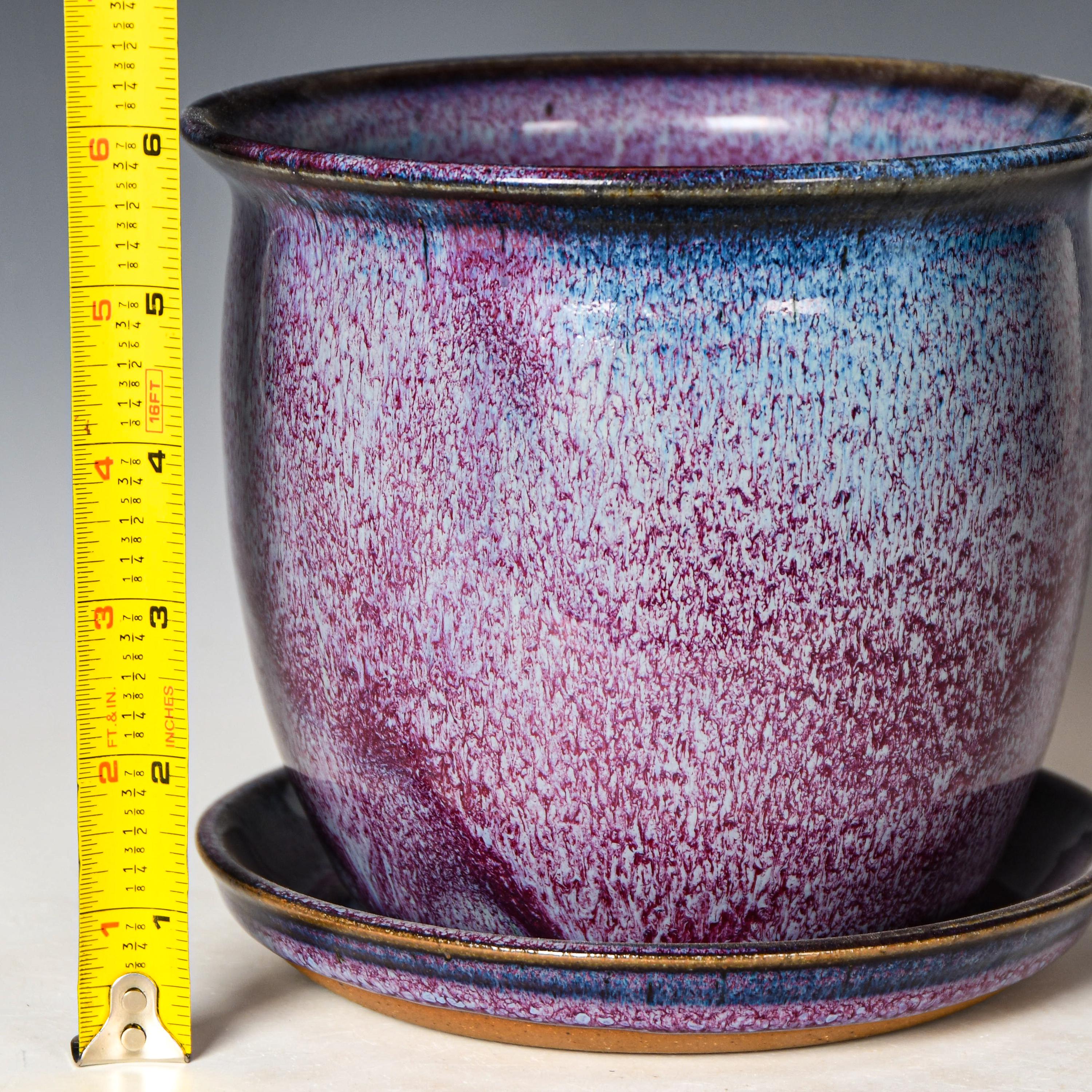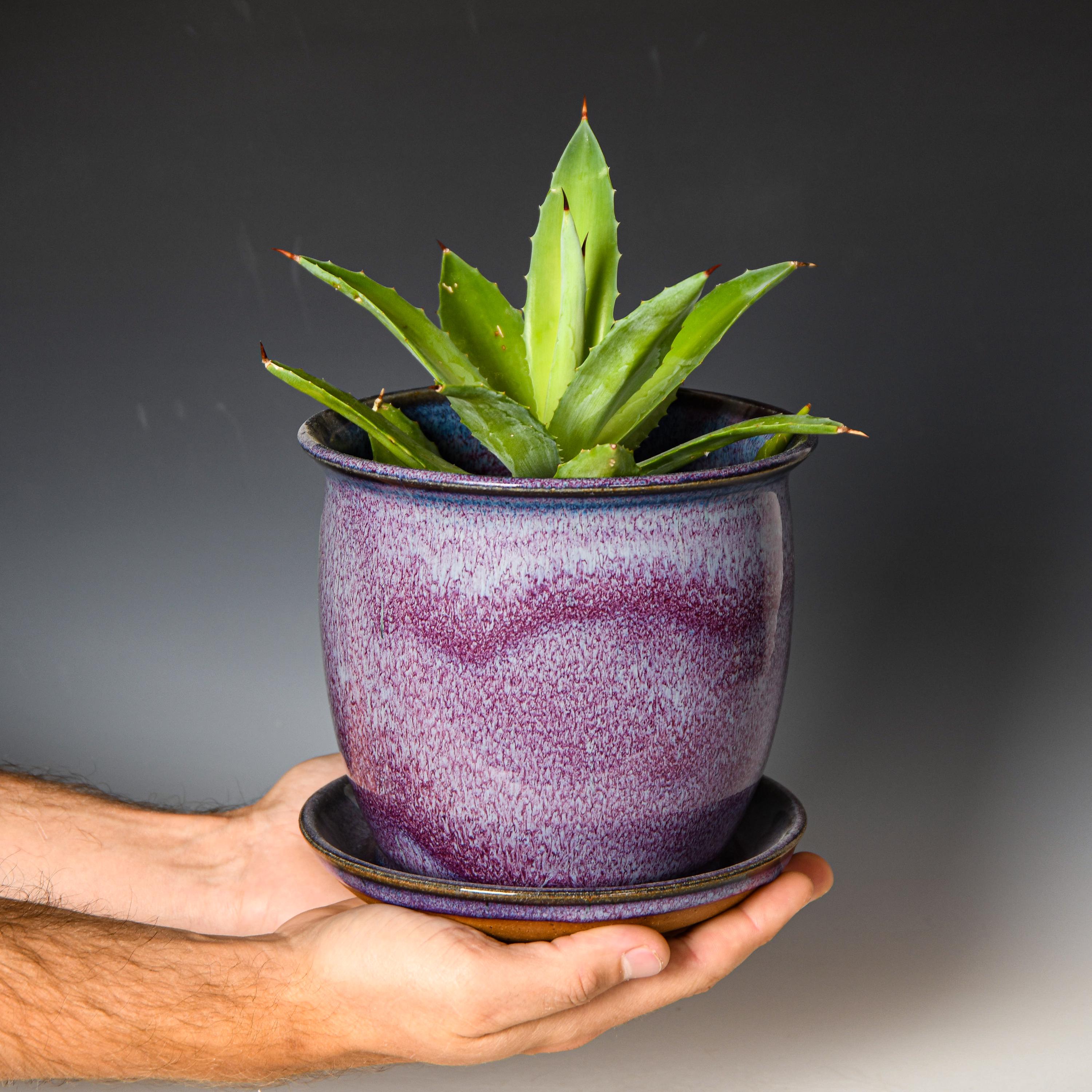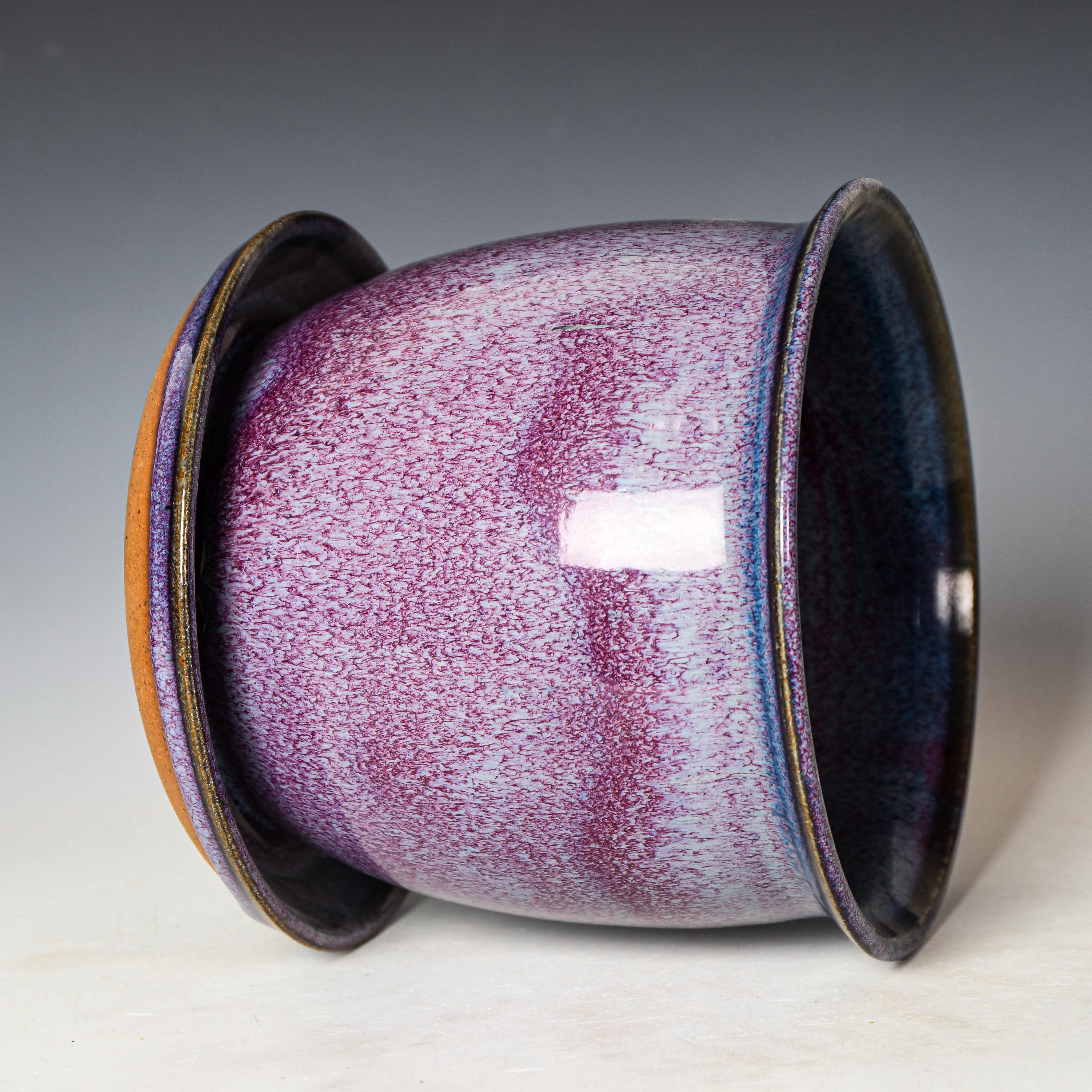 Wheel Thrown Planter with Drainage Holes in Purple Glaze, Stoneware Plant Pot #732