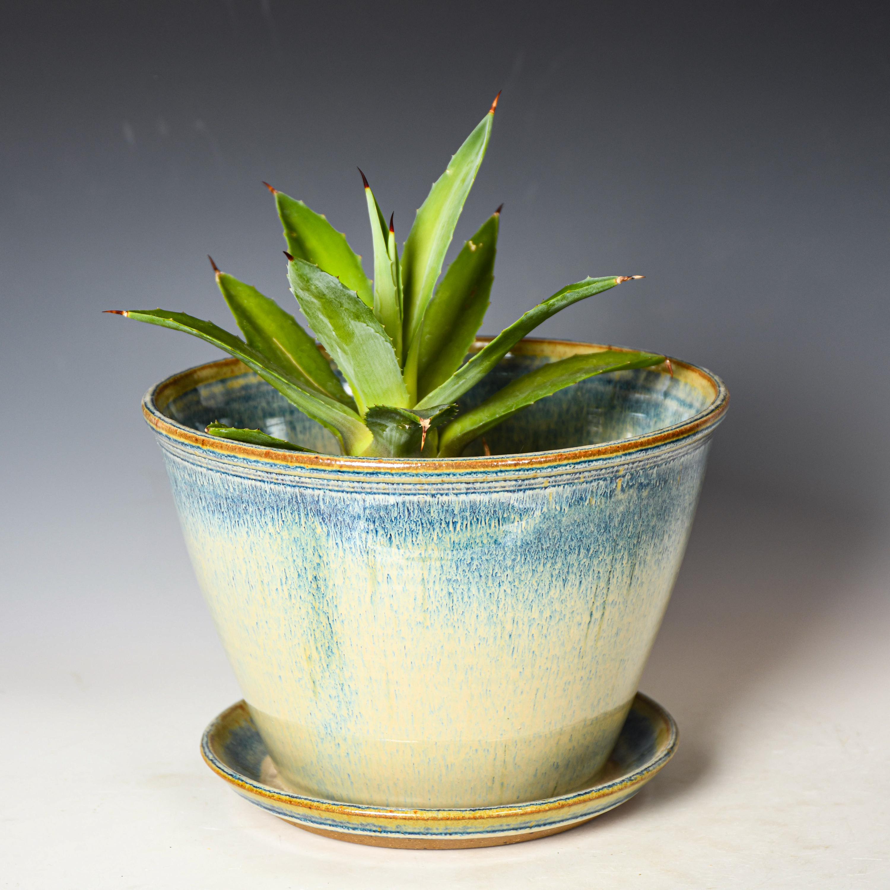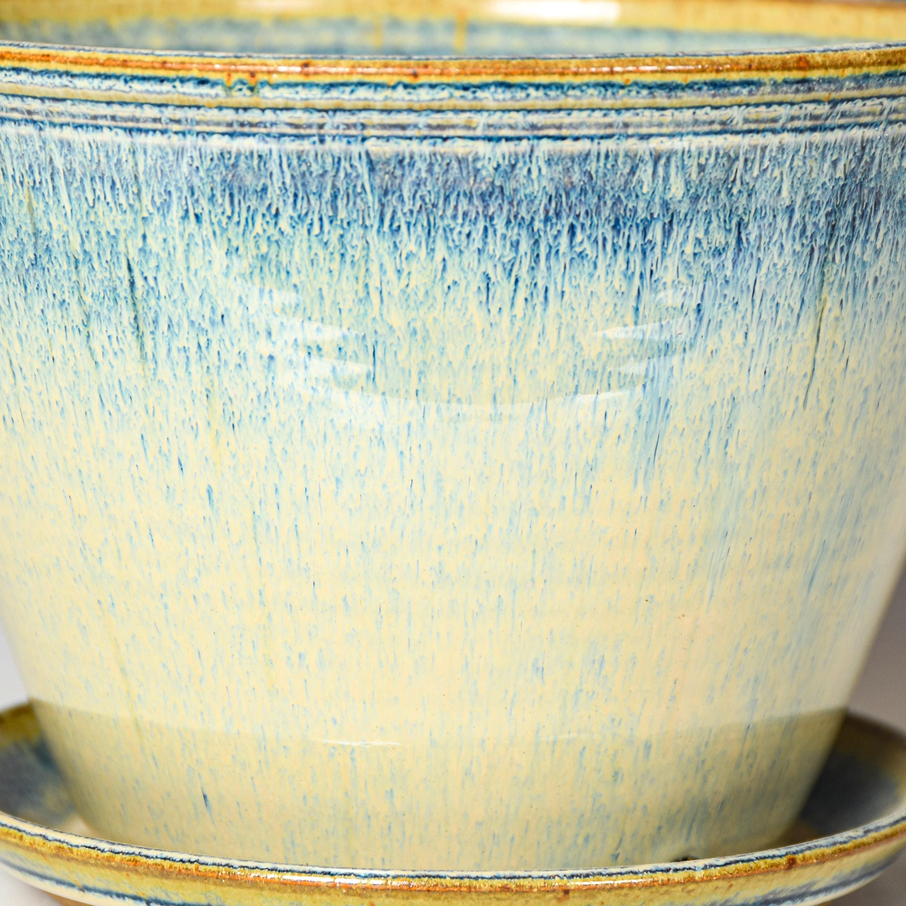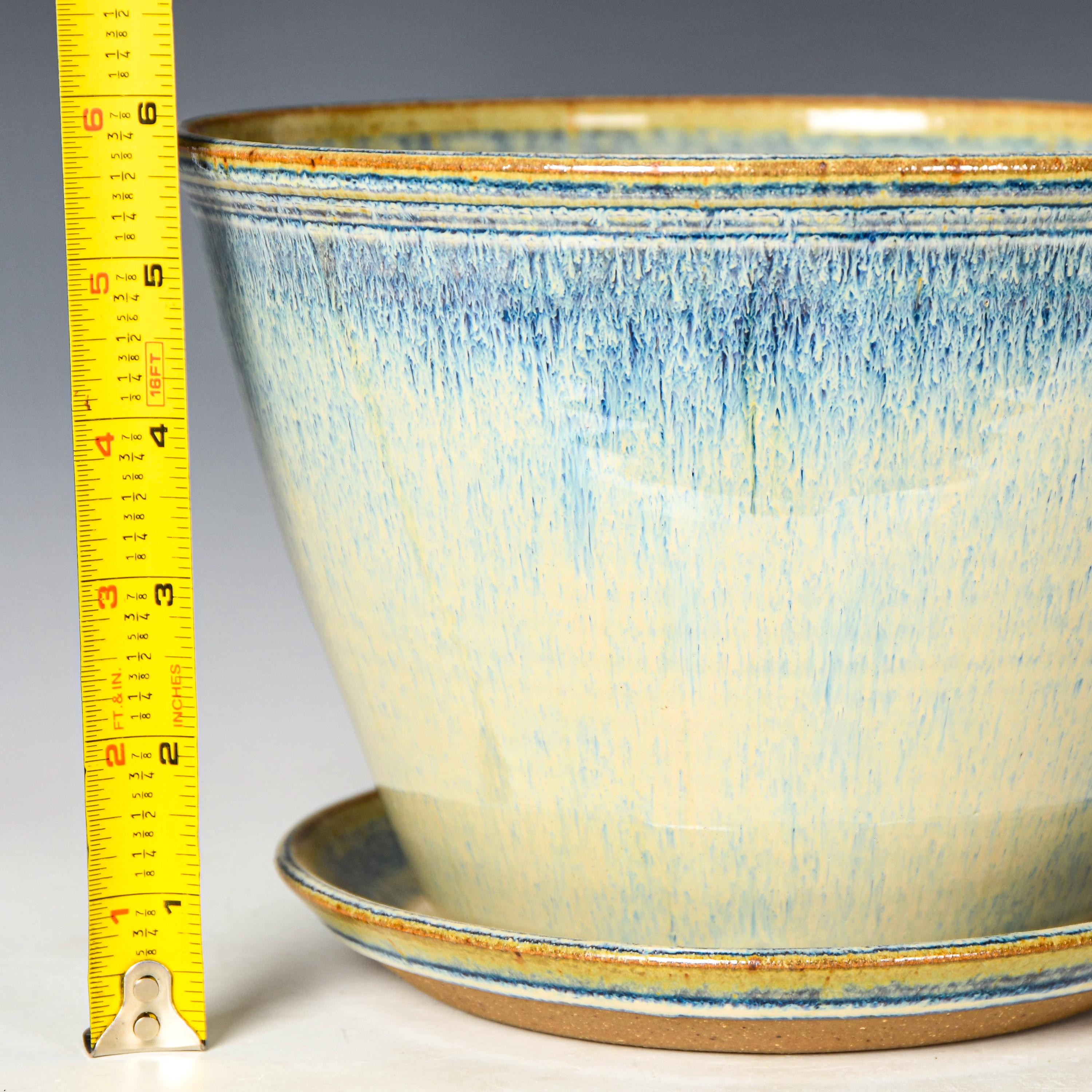 Ceramic Planter with Drainage Holes in Blue & White Glaze, Stoneware Plant Pot #735