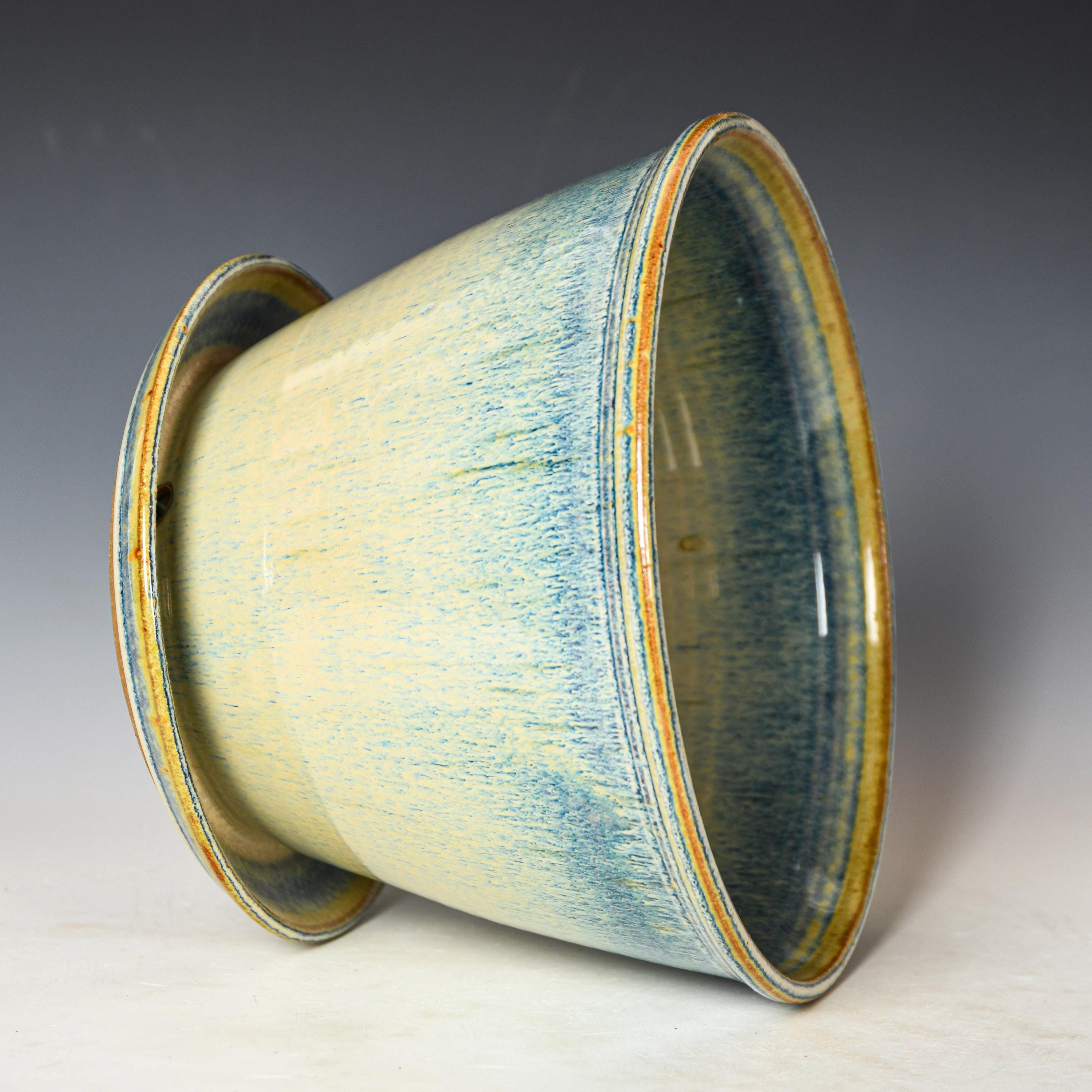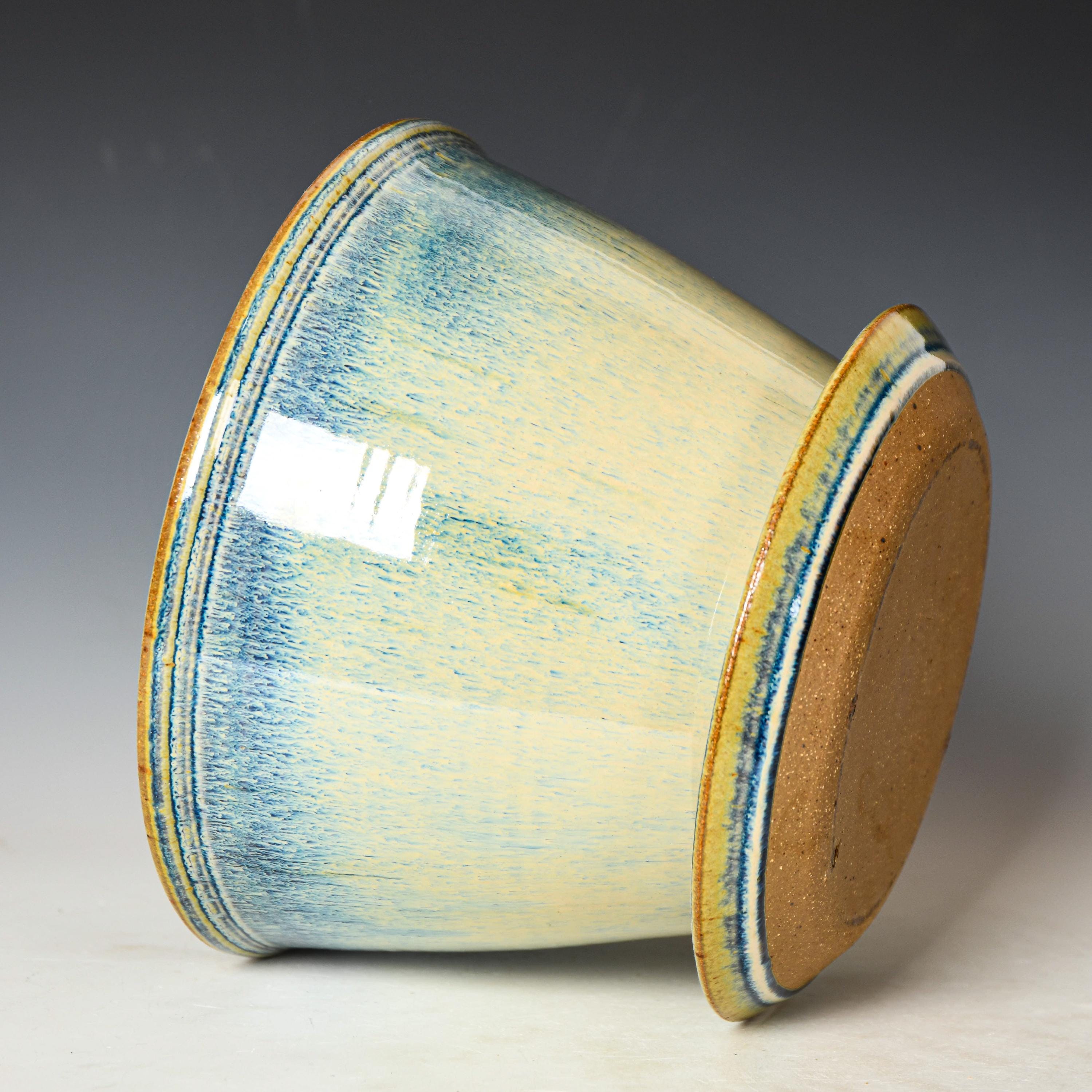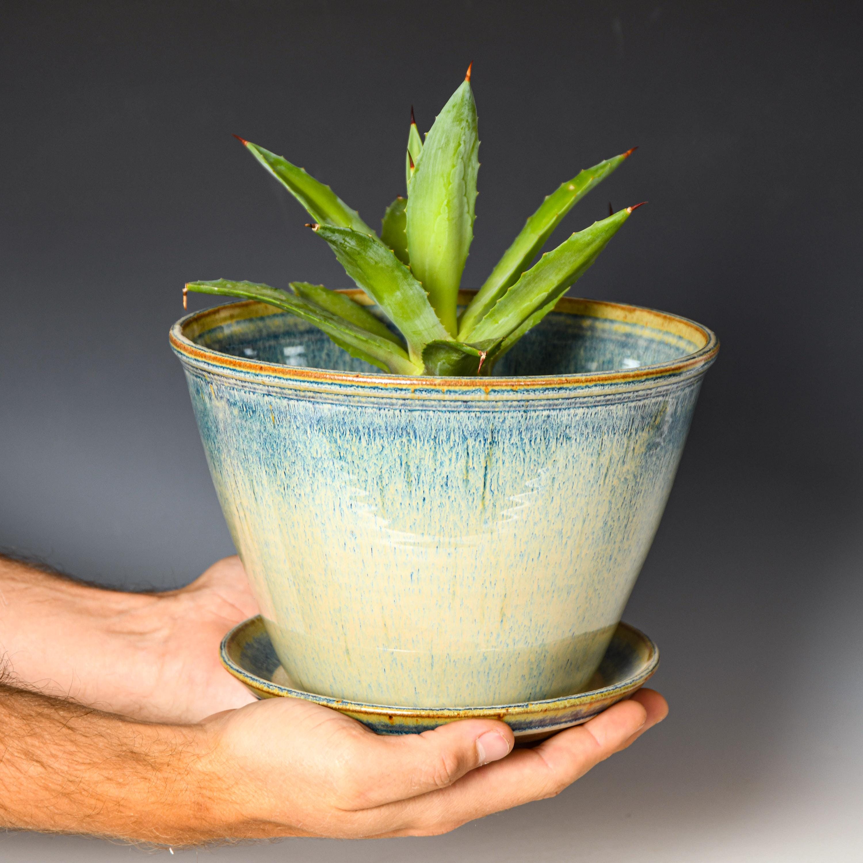 Ceramic Planter with Drainage Holes in Blue & White Glaze, Stoneware Plant Pot #735