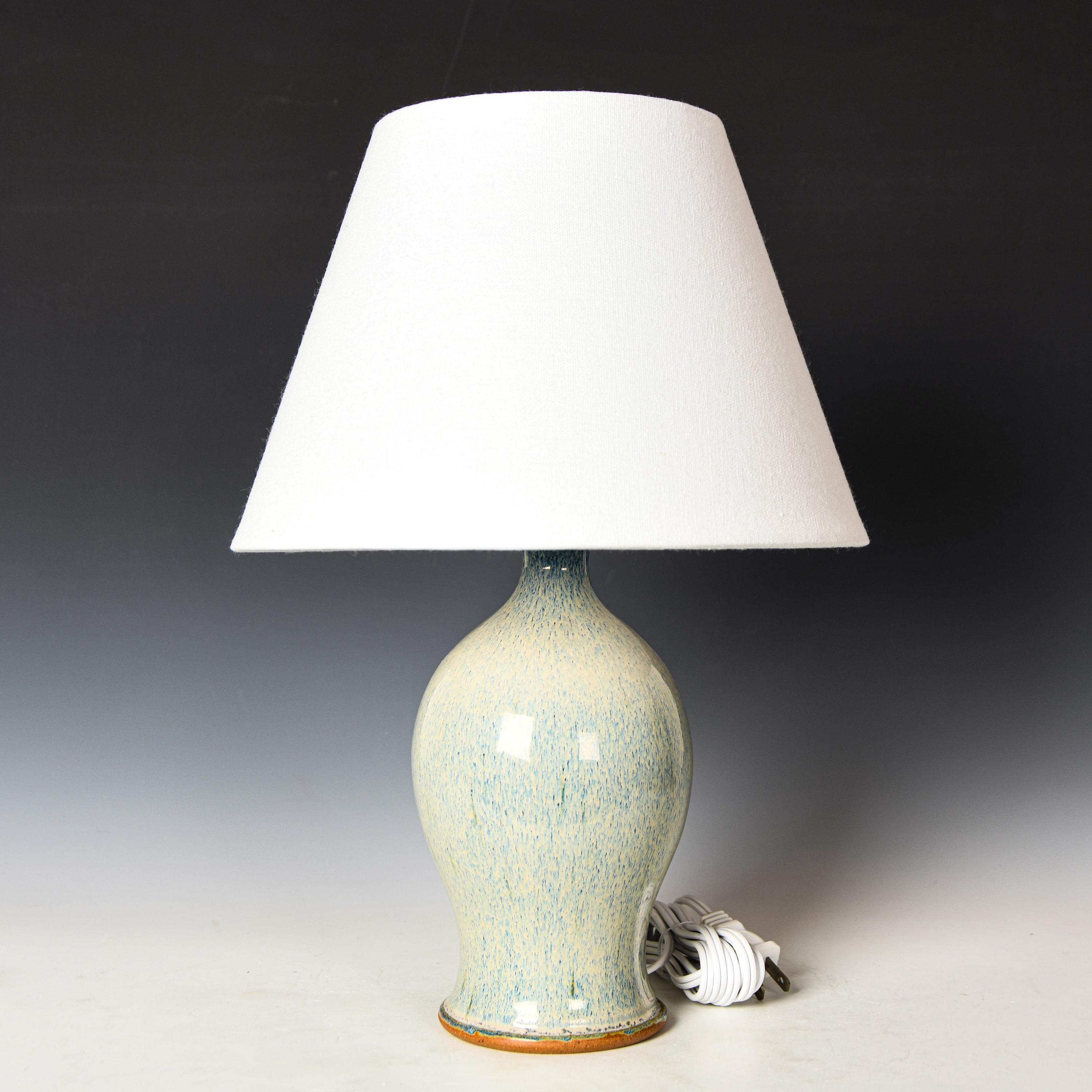 Ceramic Lamp, Blue & White Glaze Stoneware Light #6 - Shade NOT Included