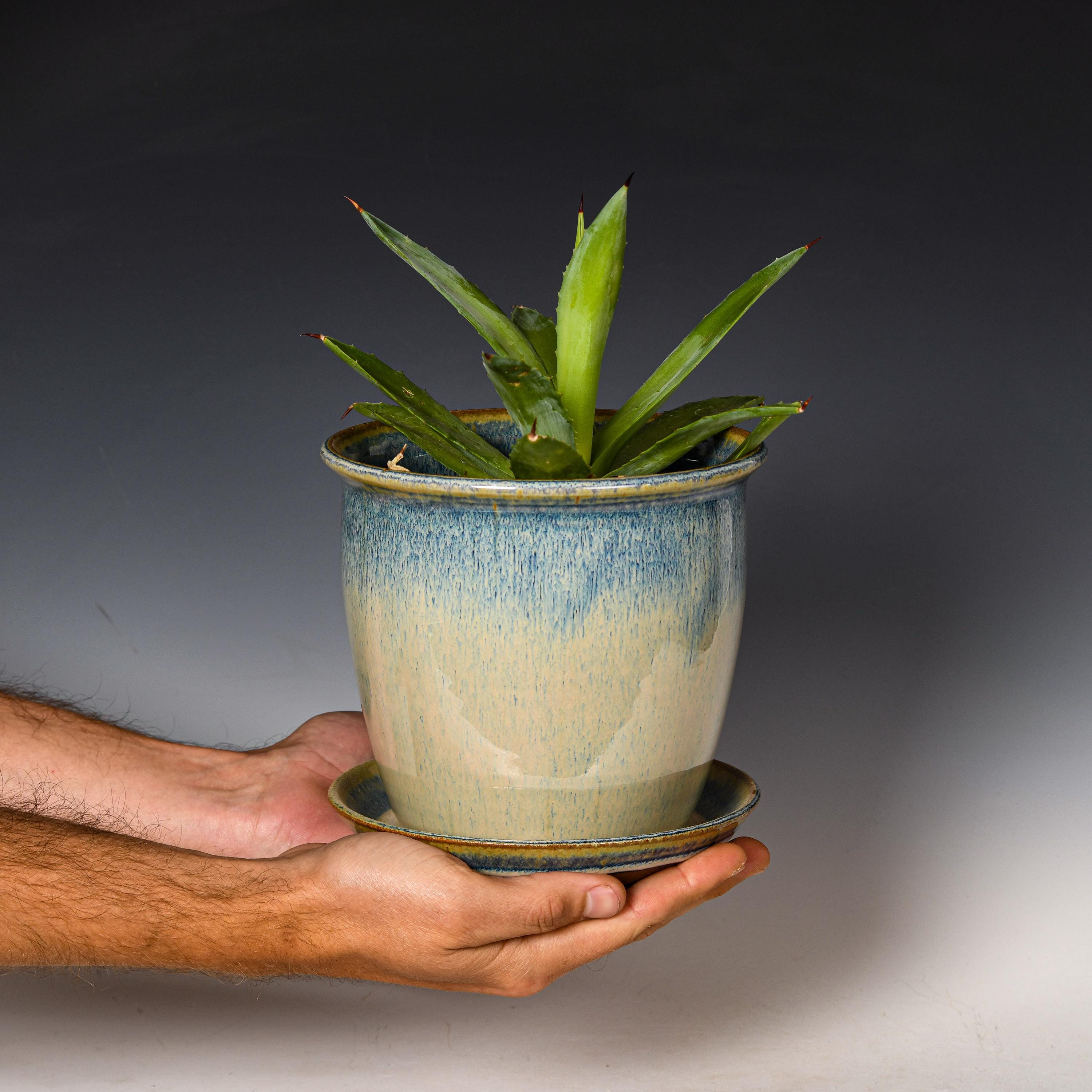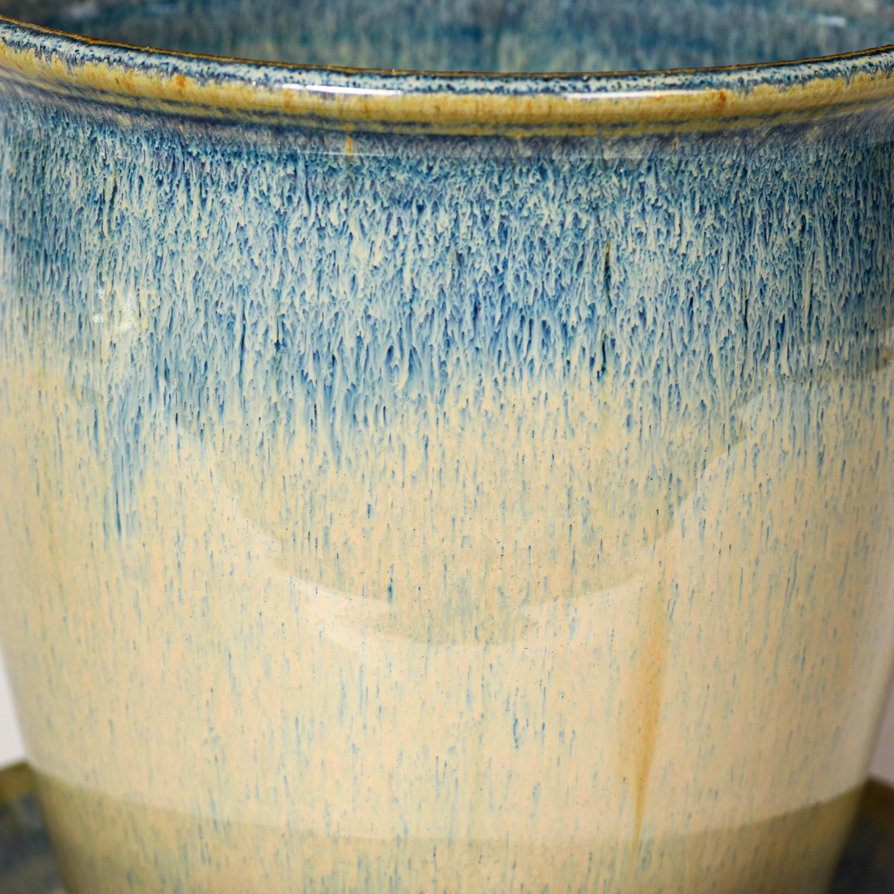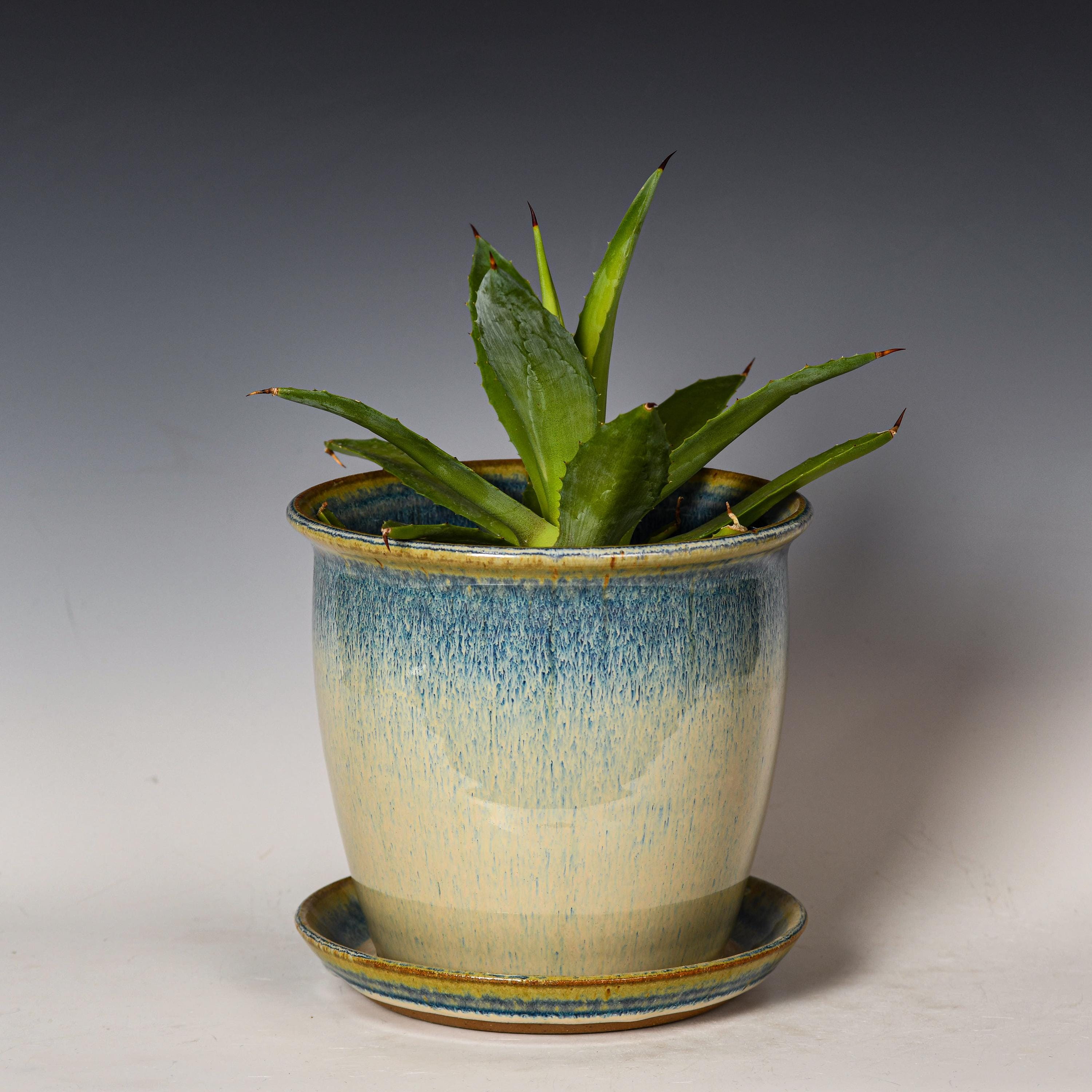 Ceramic Planter with Drainage Holes in Blue & White Glaze, Stoneware Plant Pot #760