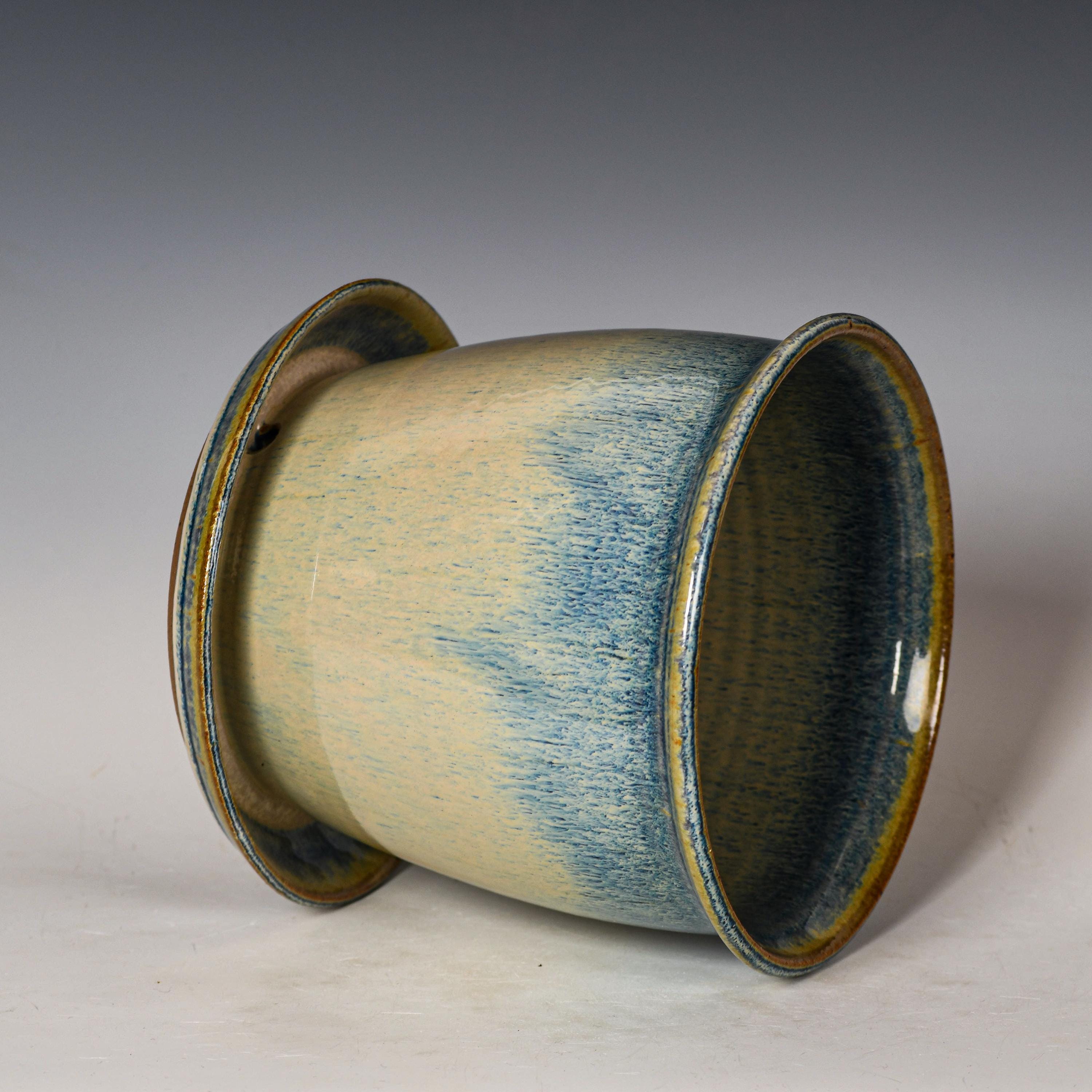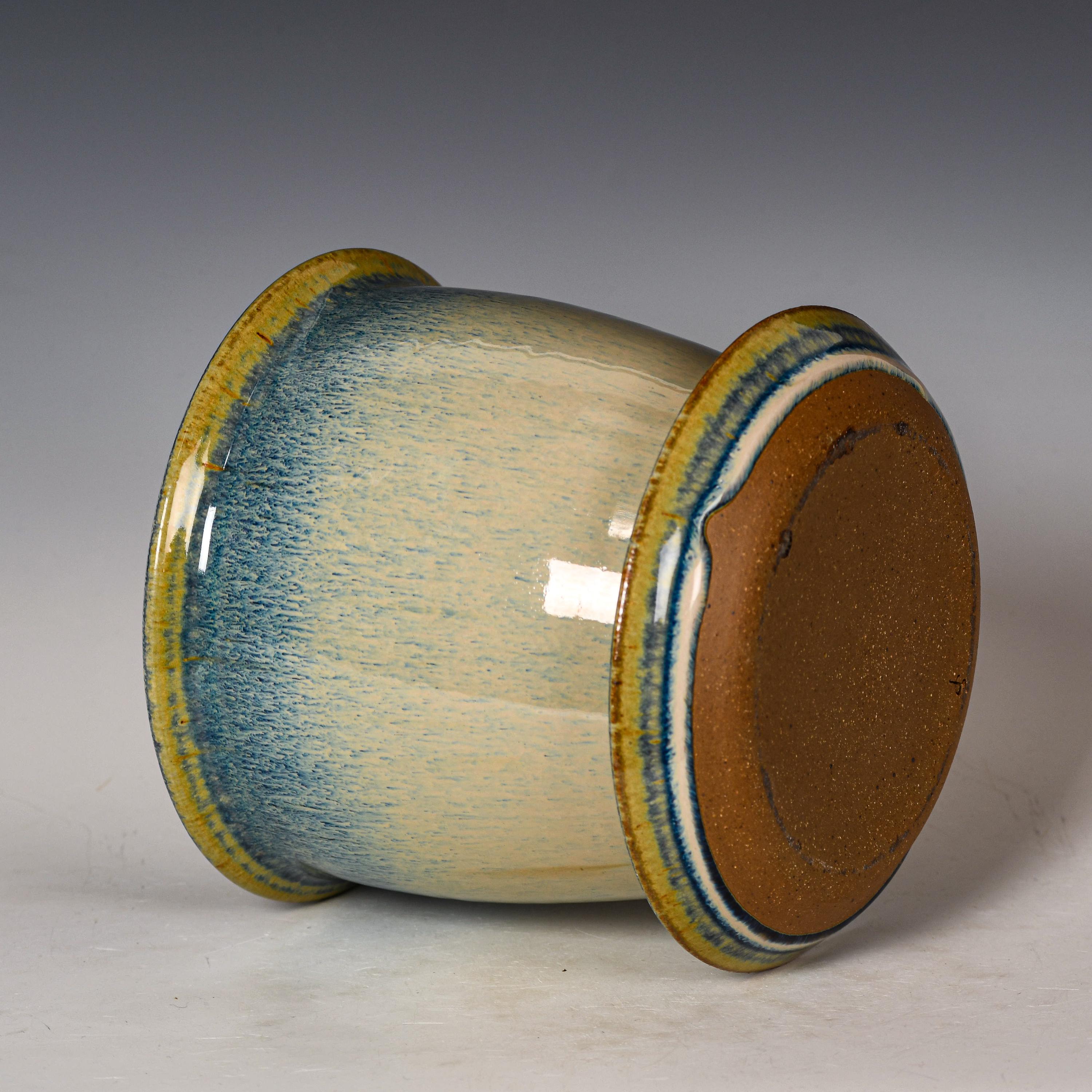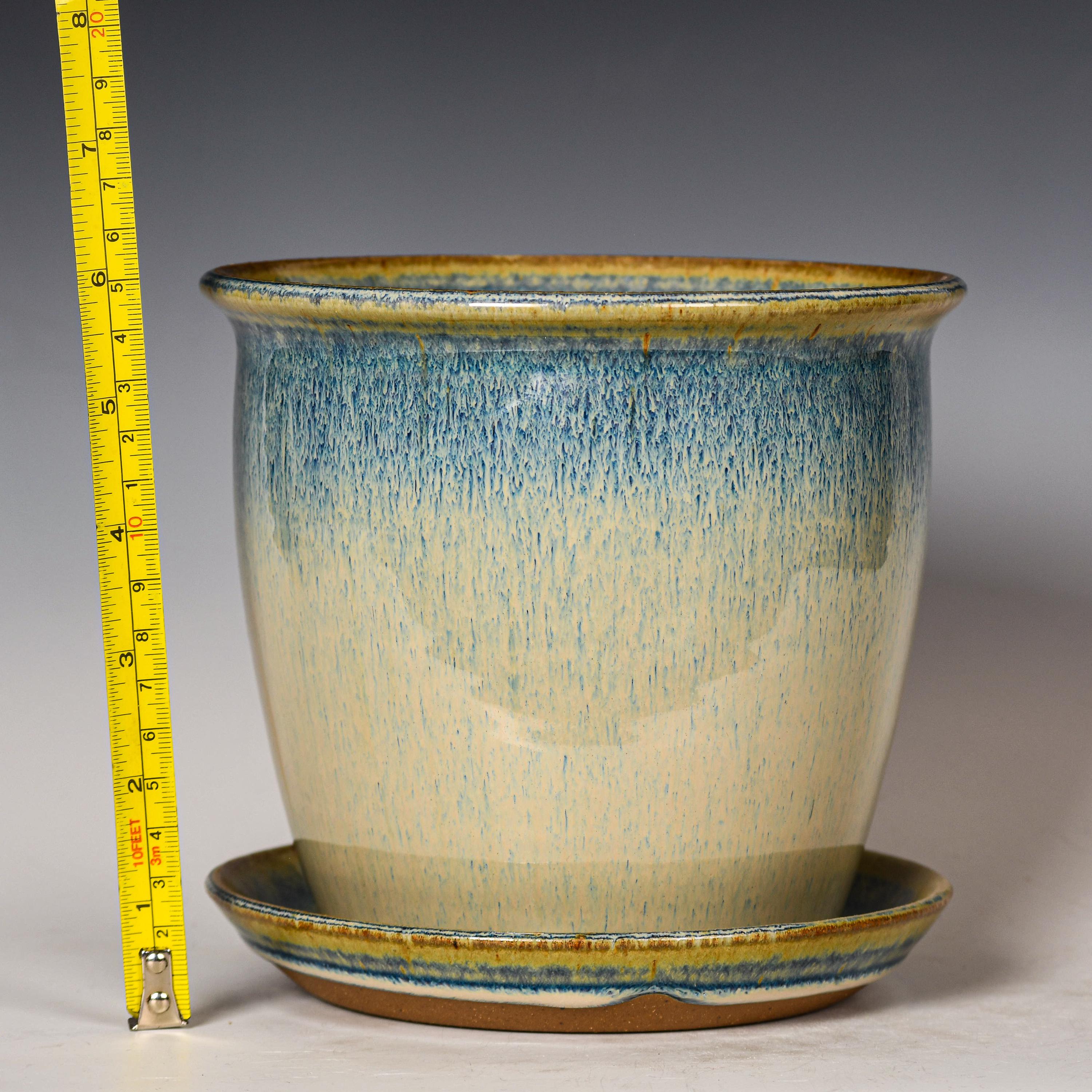 Ceramic Planter with Drainage Holes in Blue & White Glaze, Stoneware Plant Pot #760