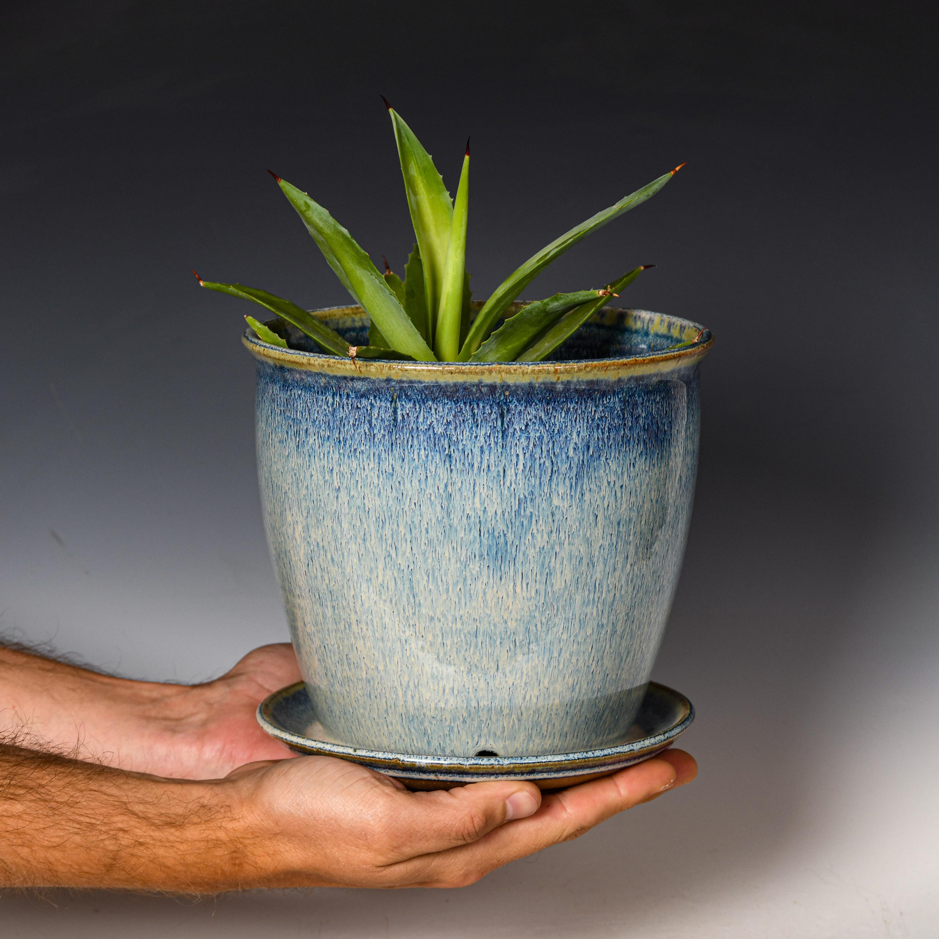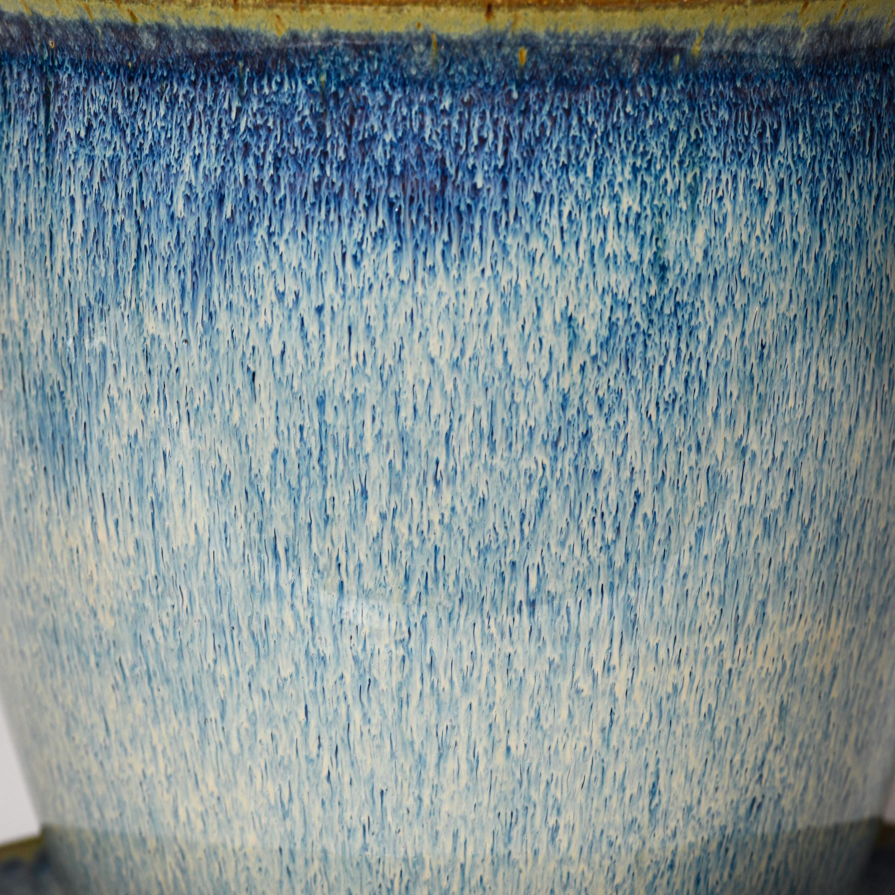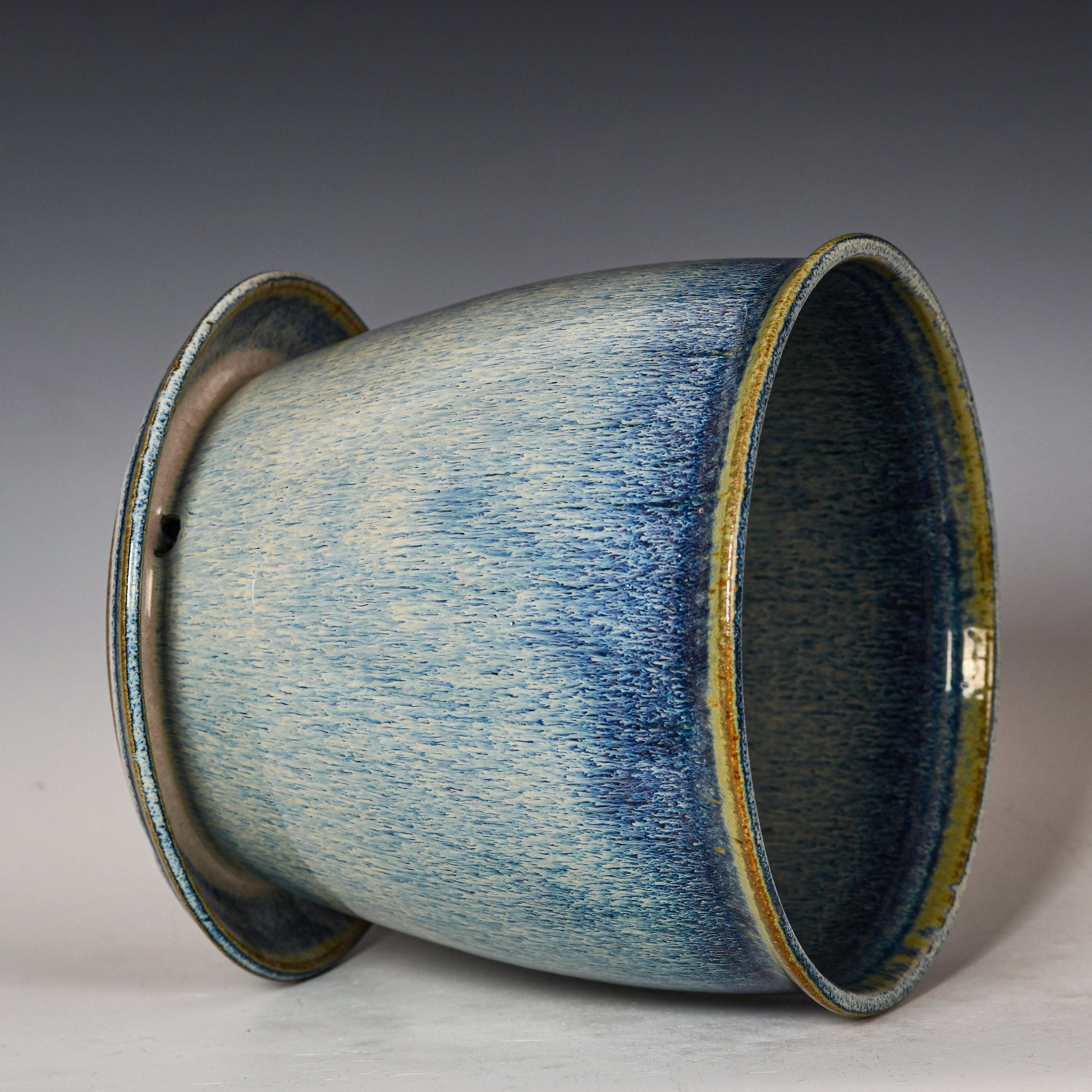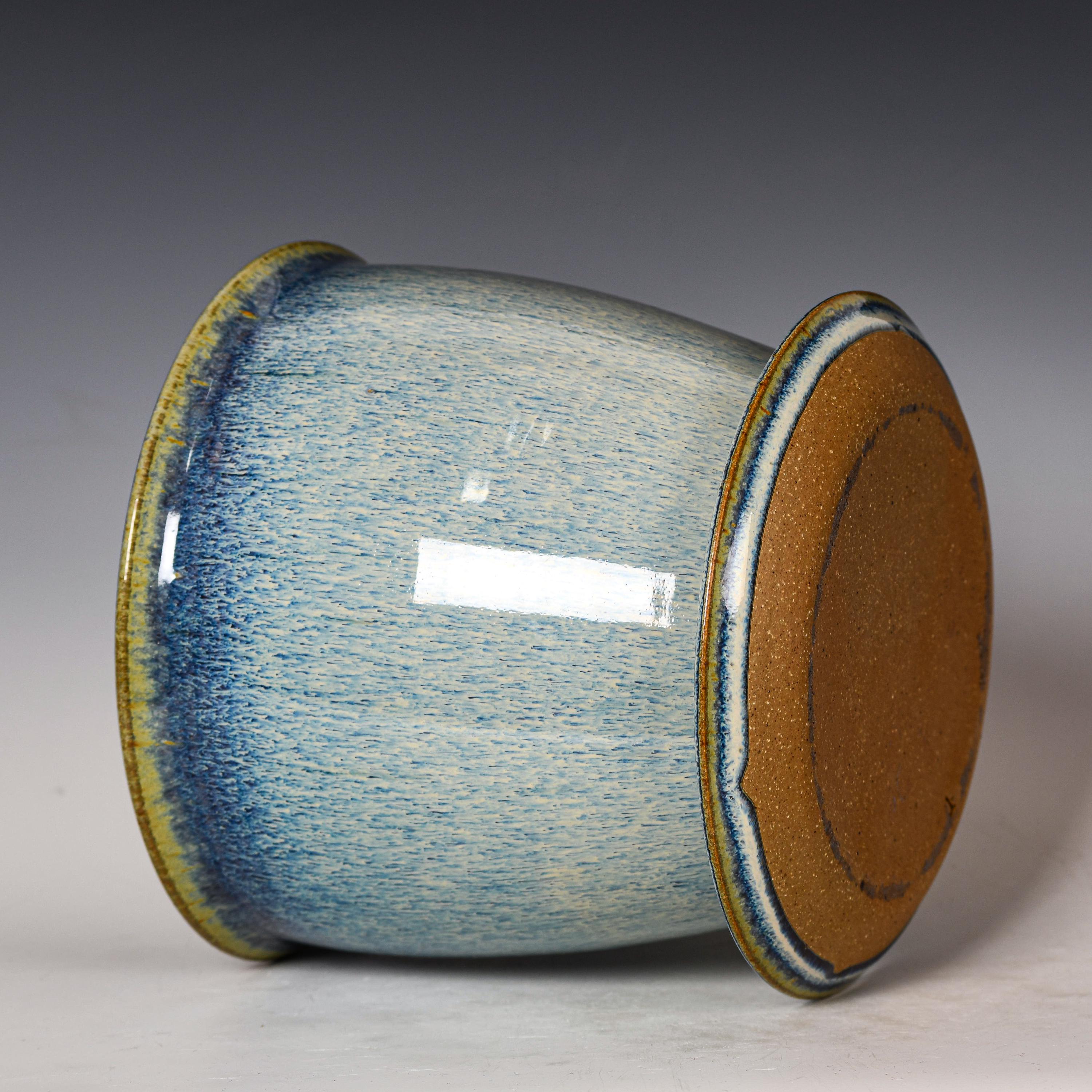 Wheel Thrown Planter with Drainage Holes in Blue & White Glaze, Stoneware Plant Pot #763