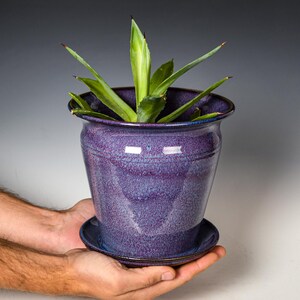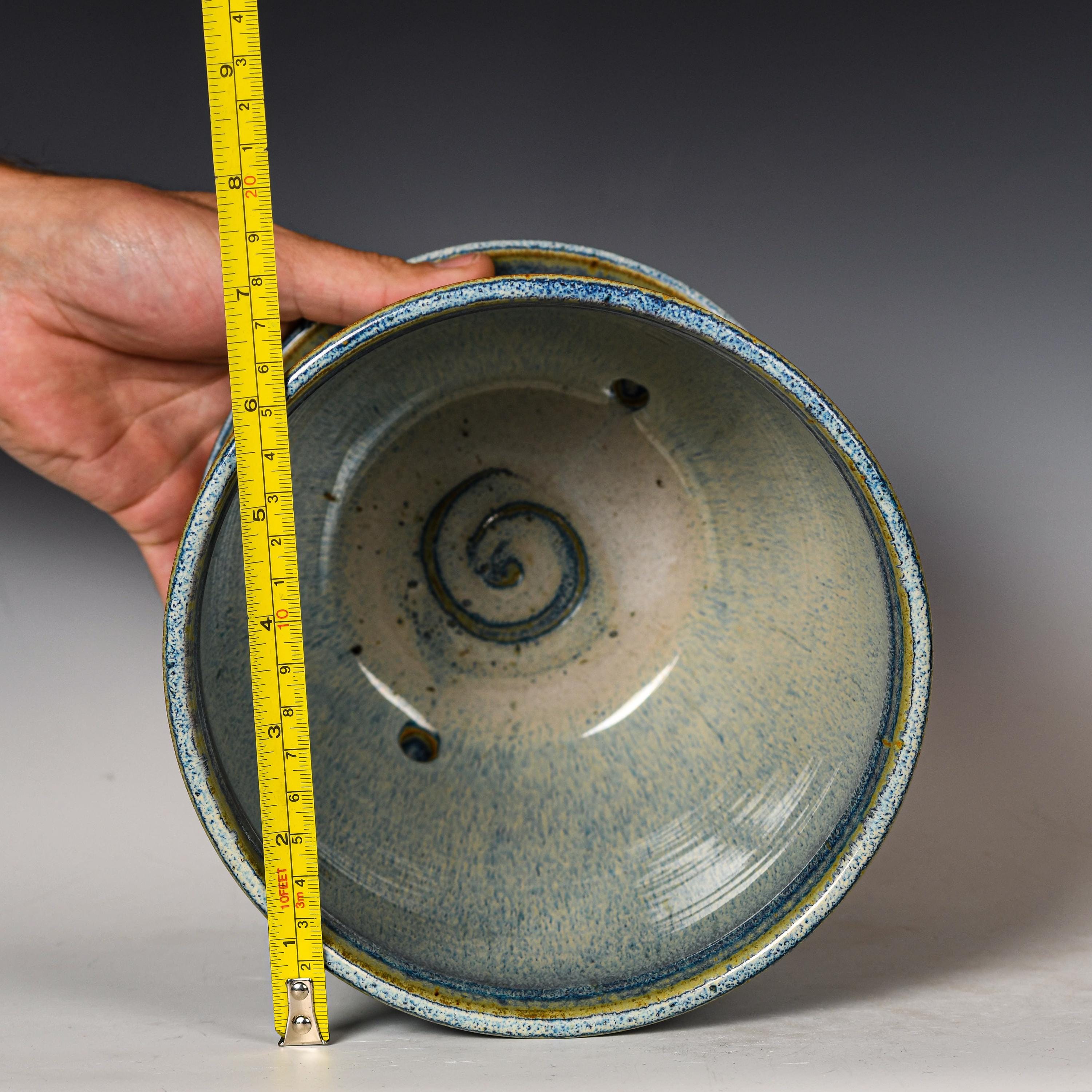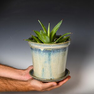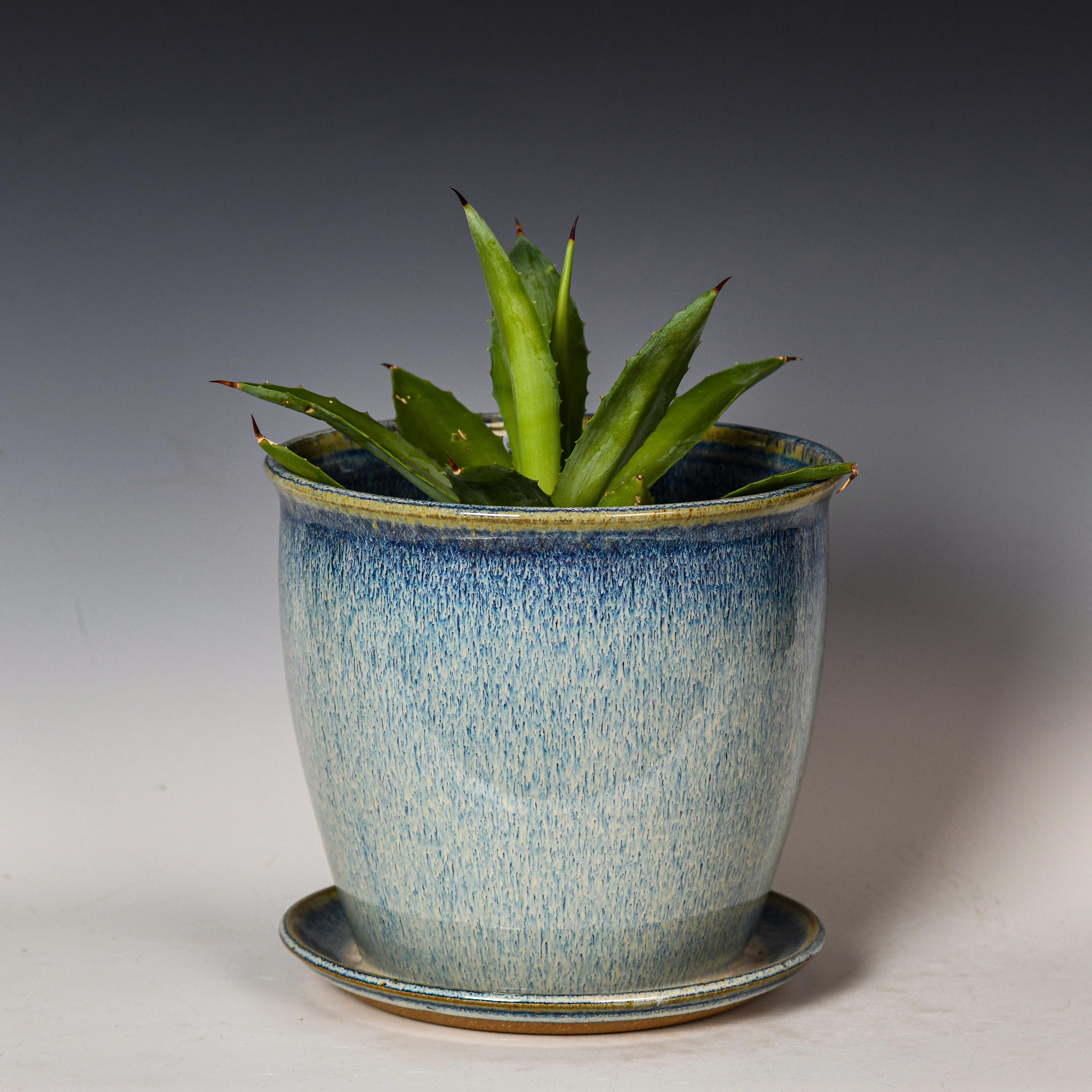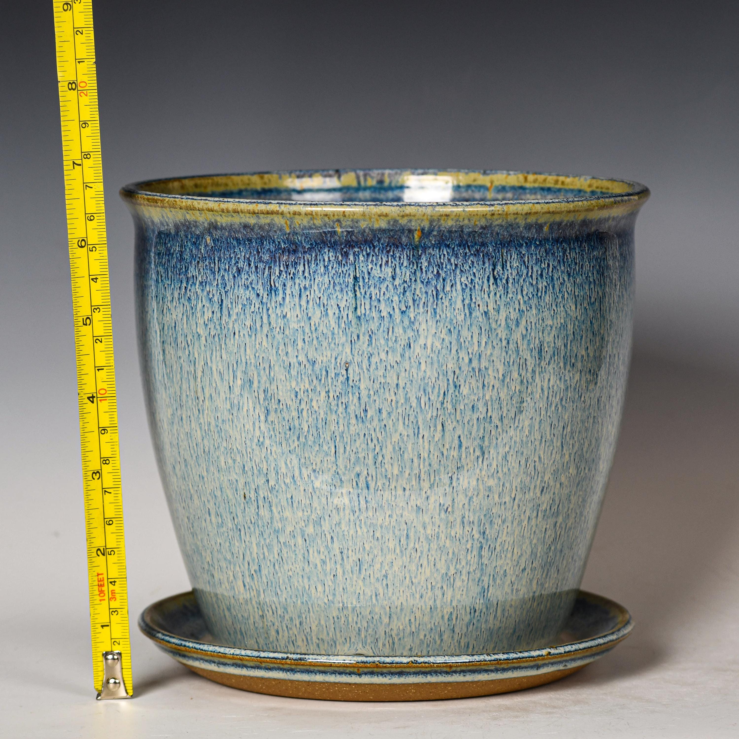 Wheel Thrown Planter with Drainage Holes in Blue & White Glaze, Stoneware Plant Pot #763