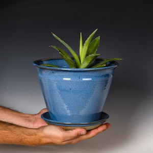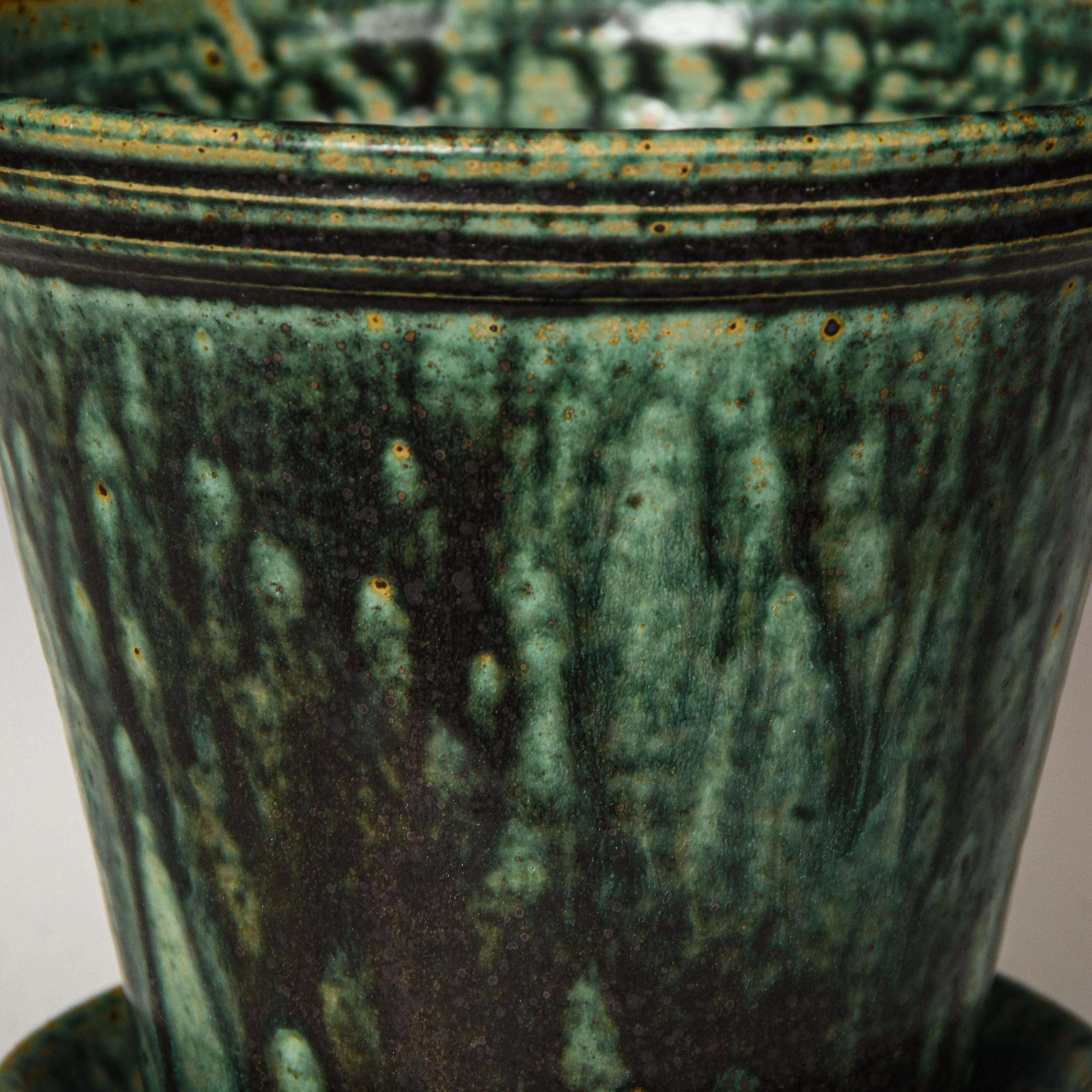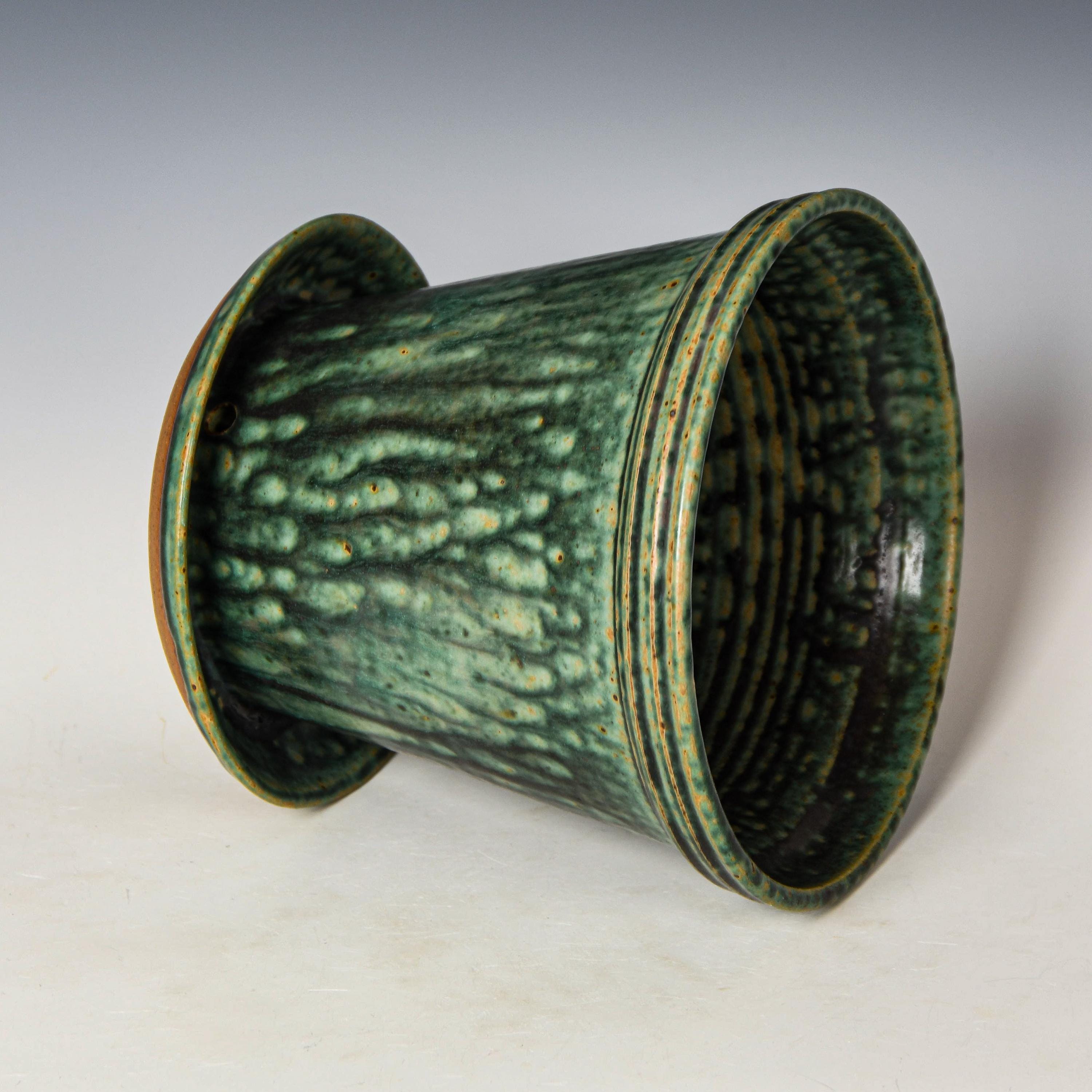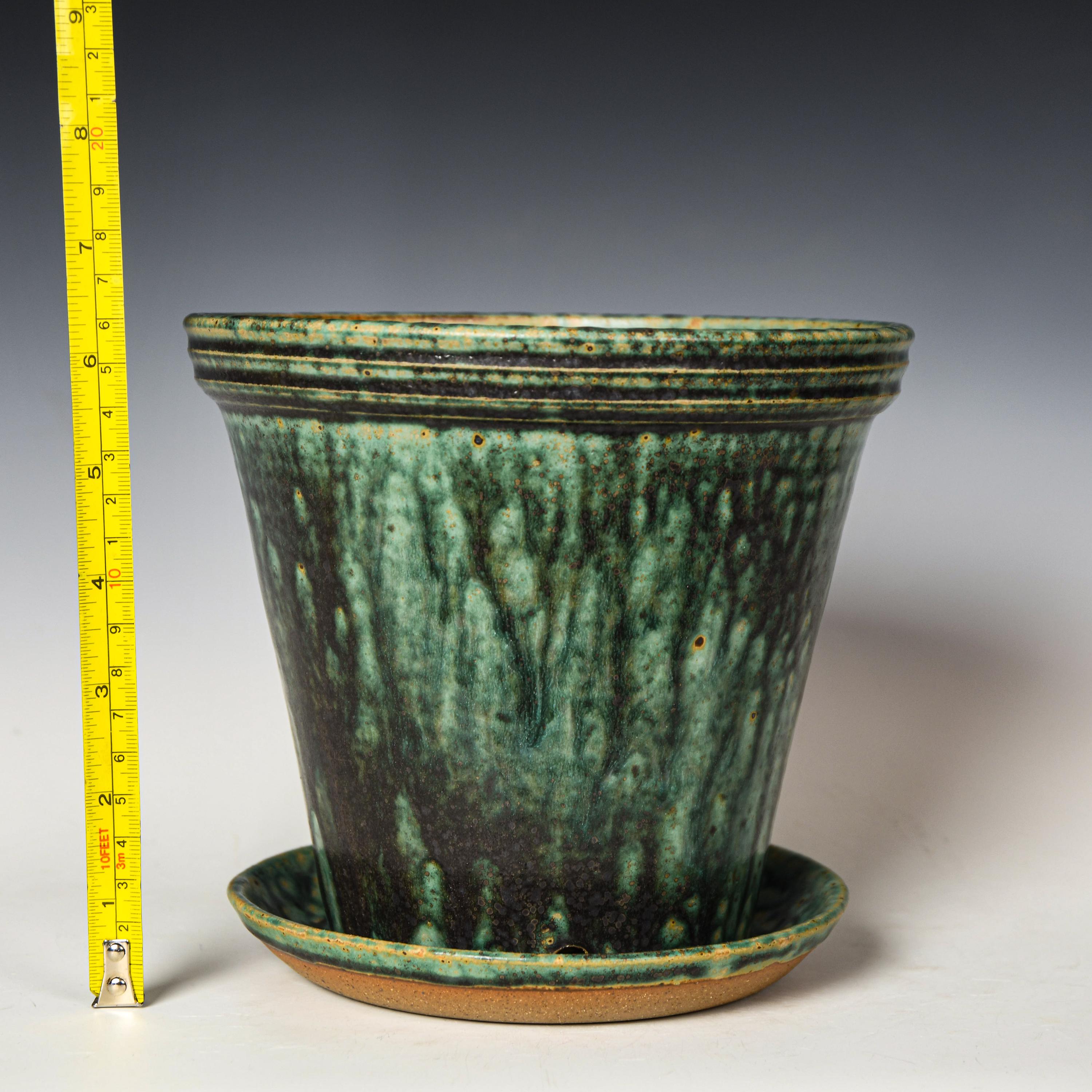 Wheel Thrown Planter with Drainage Holes in Green Glaze, Stoneware Plant Pot #752