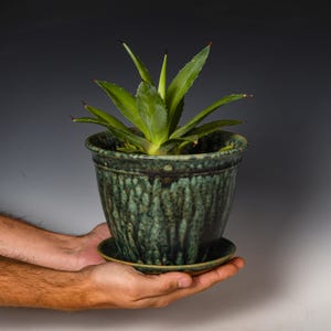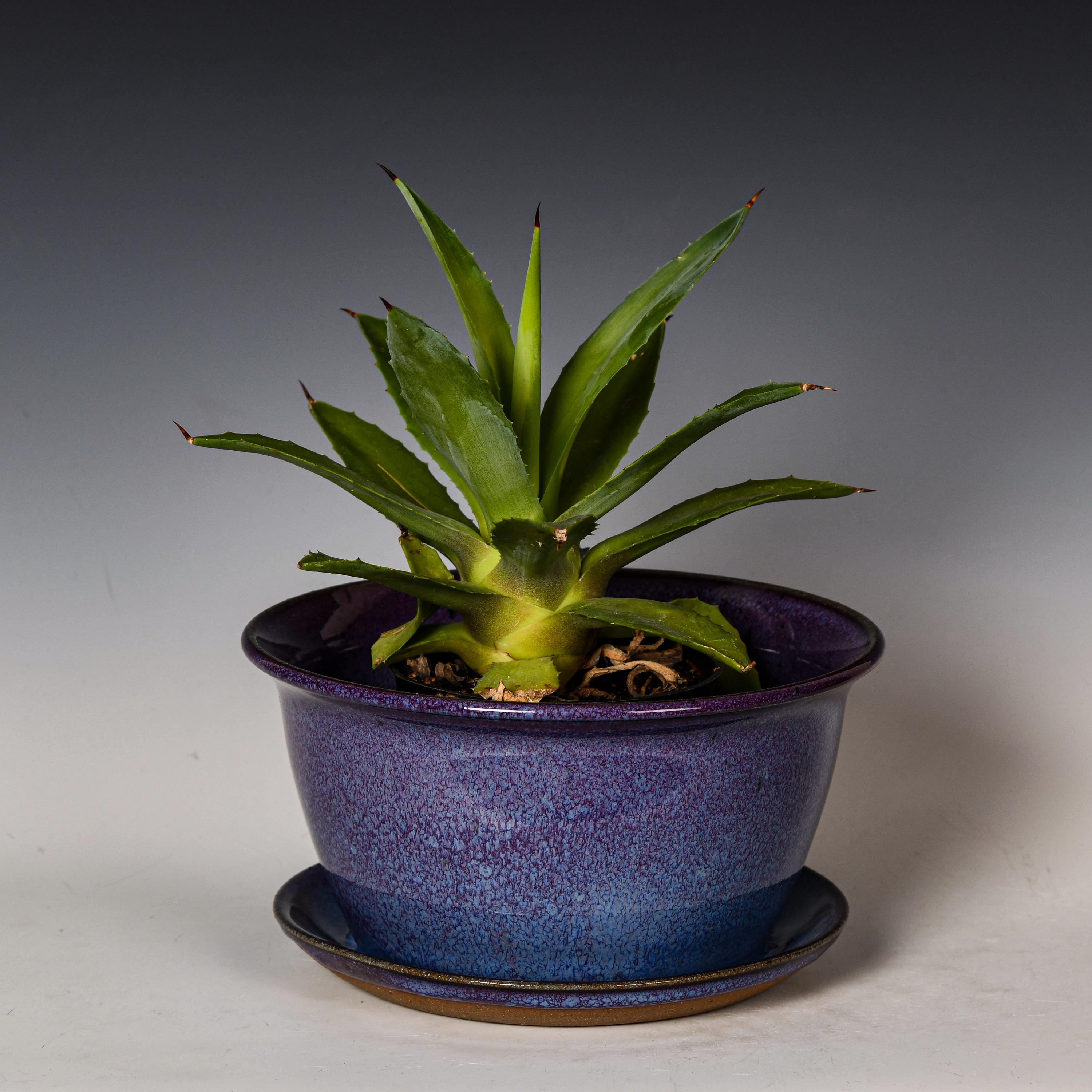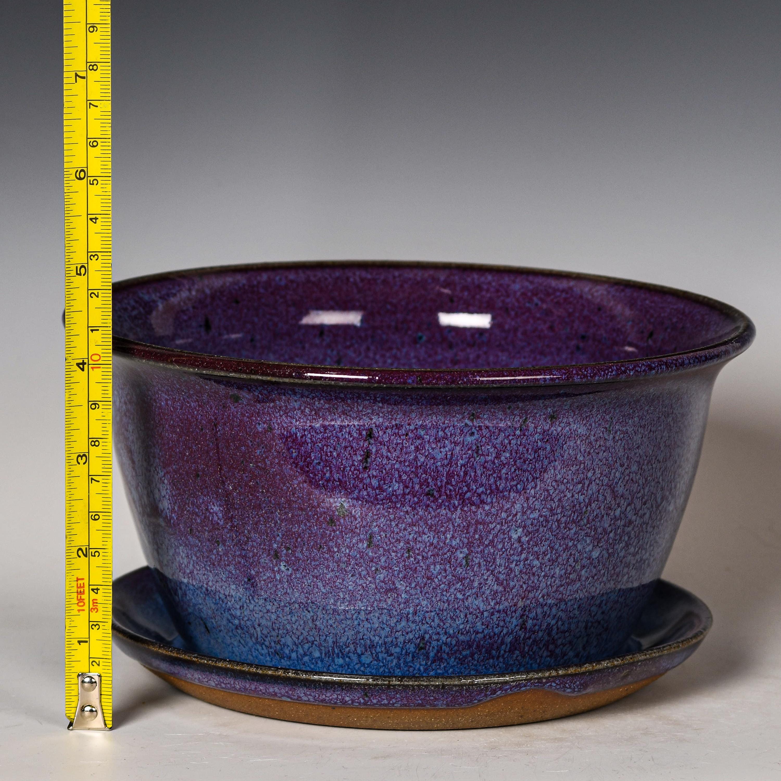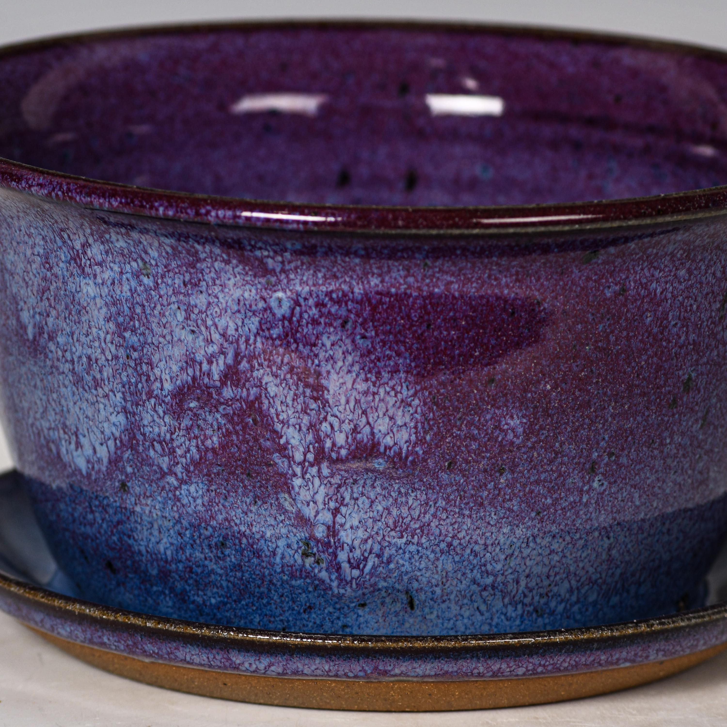 Ceramic Planter with Drainage Holes in Purple Glaze, Stoneware Plant Pot #759