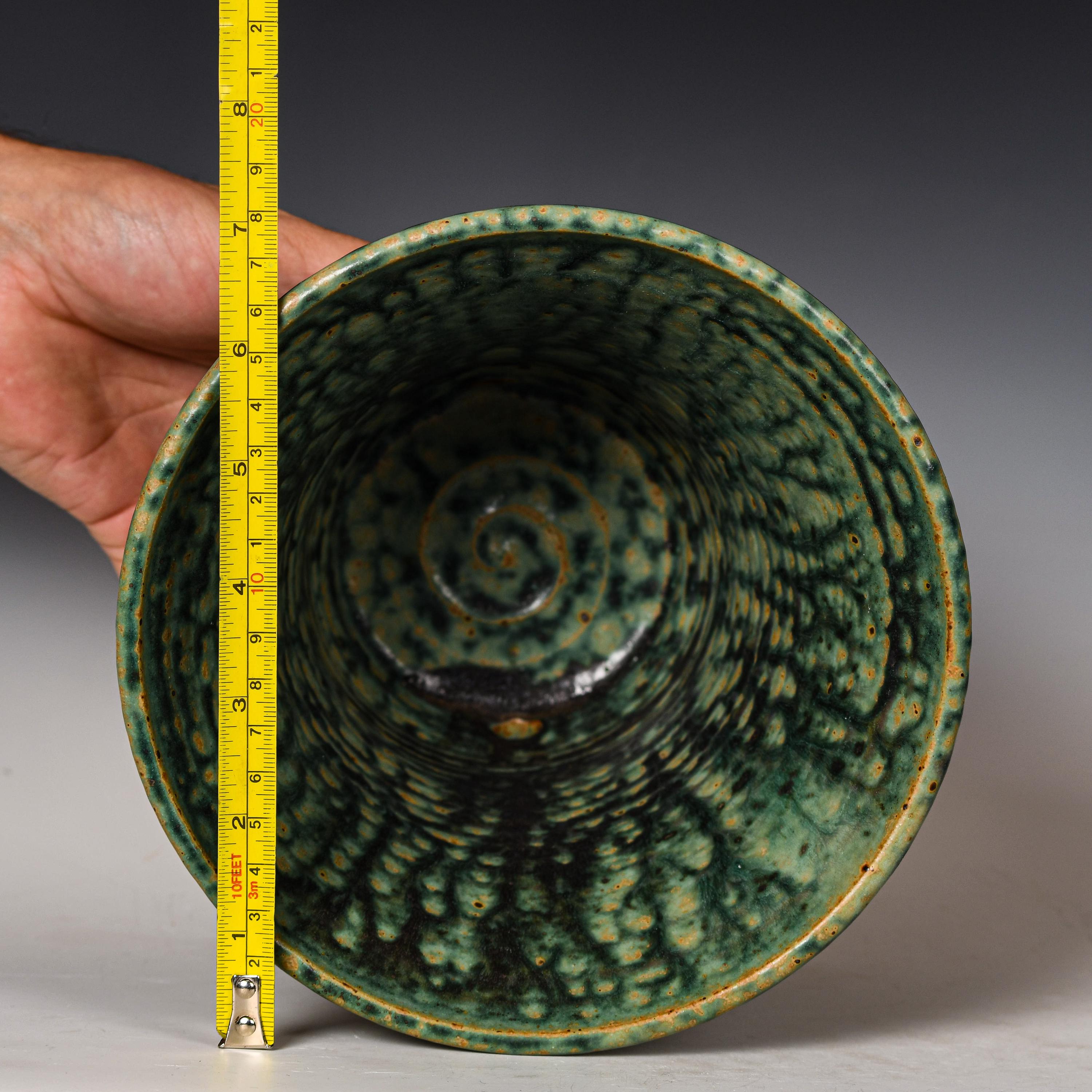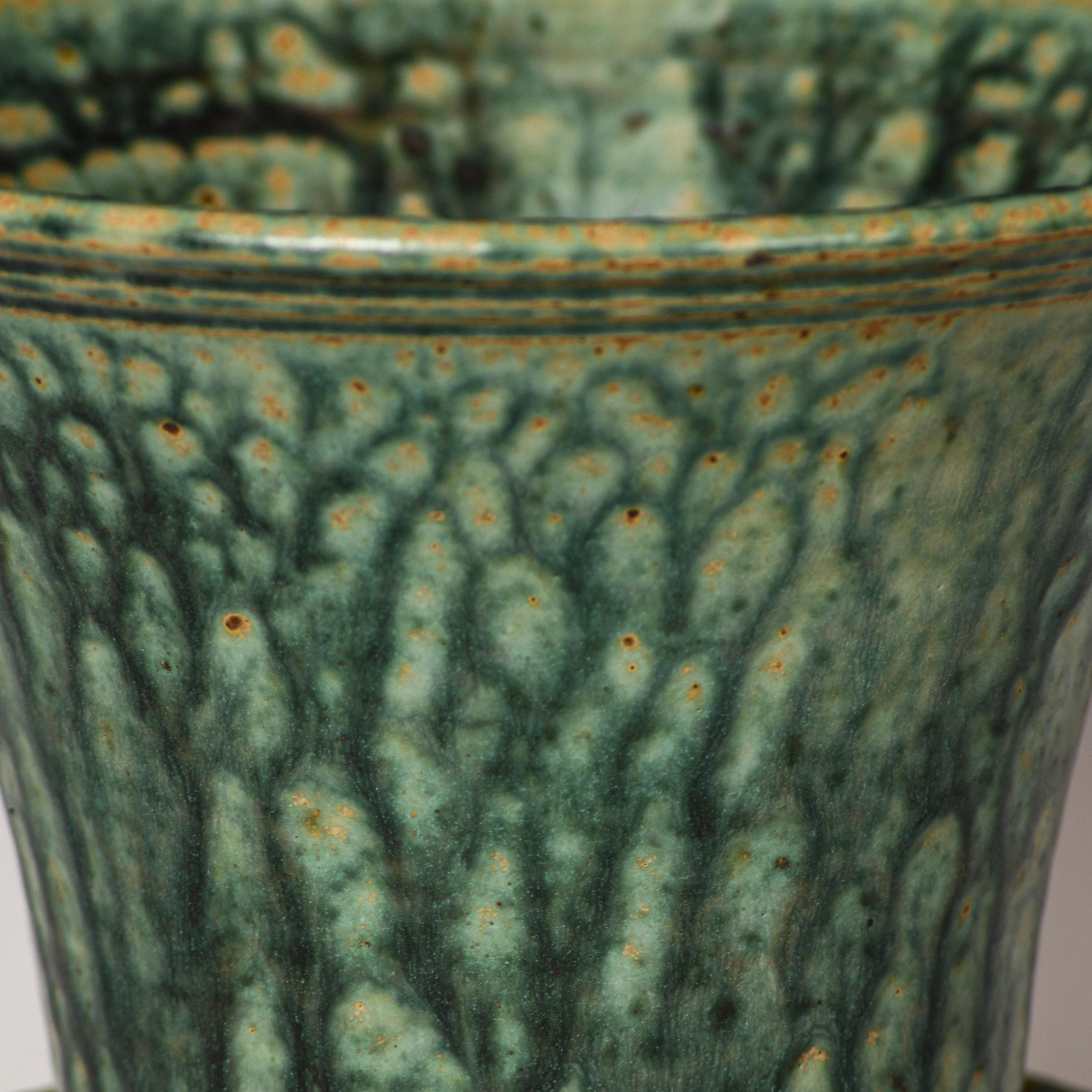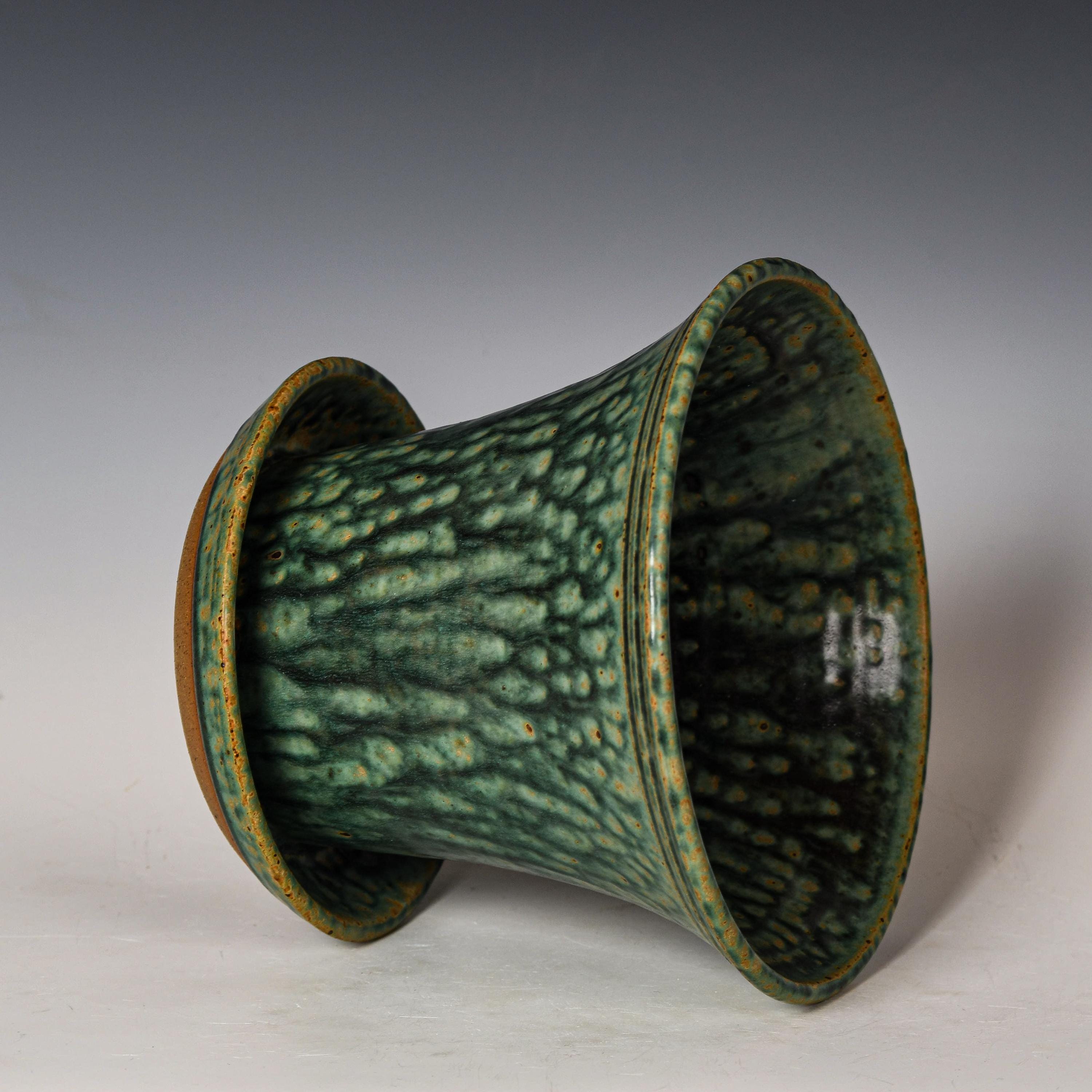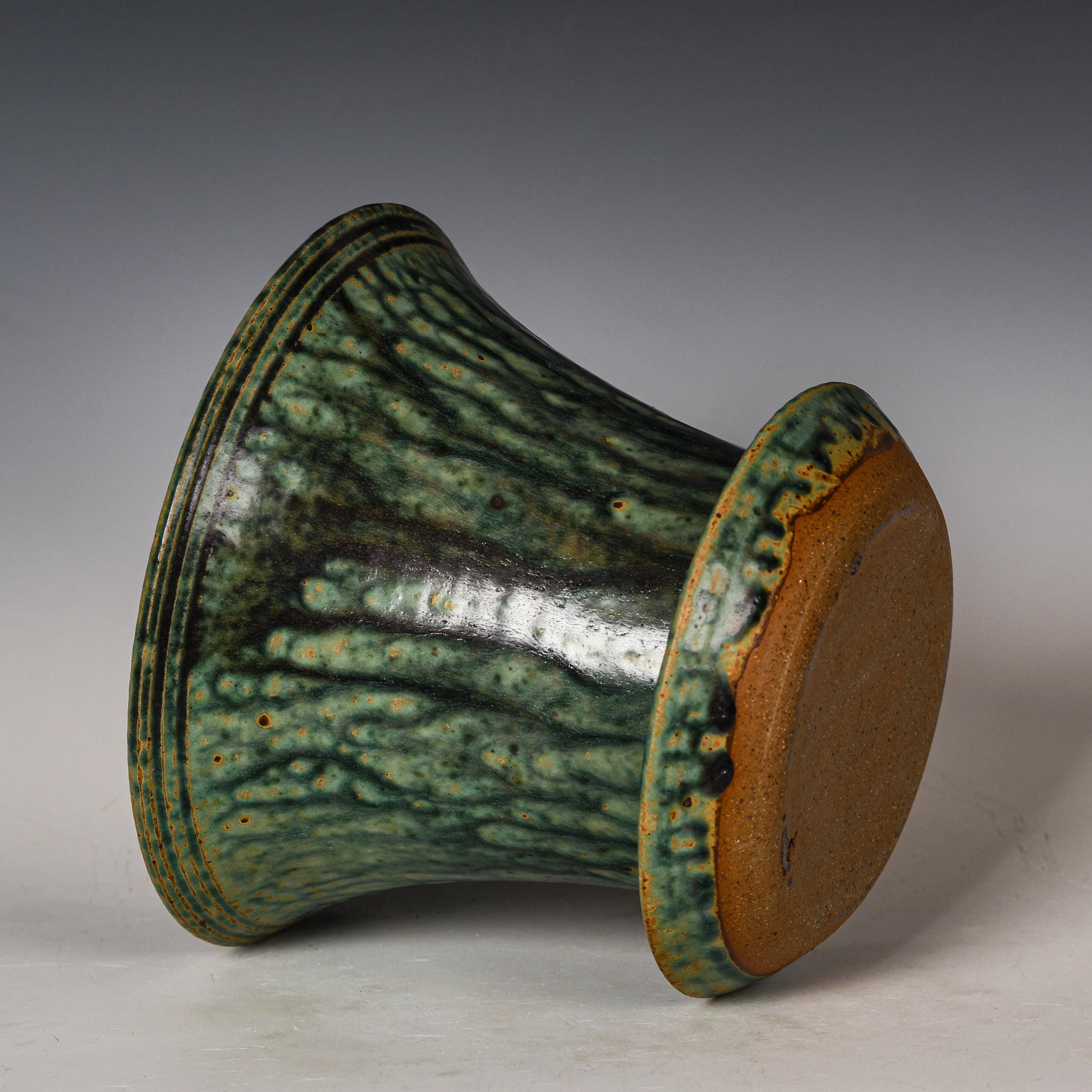 Ceramic Planter with Drainage Holes in Green Glaze, Stoneware Plant Pot #773