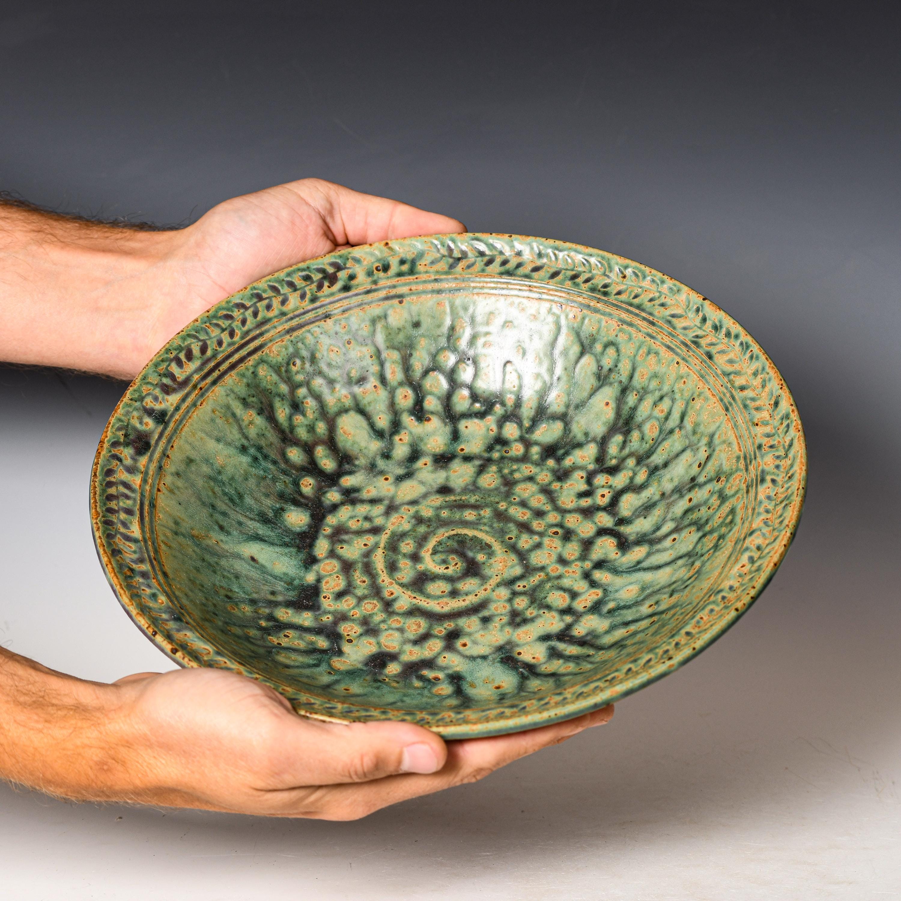 All of my work is hand-made on the pottery wheel using a rich, brown stoneware clay body. Once bisque fired, I glaze all of my work in hand-made glazes and fire everything in a gas reduction atmosphere to cone 11/12 (about 2370*F). Finished pieces are always safe for food use as well as use in the dishwasher, microwave and oven.