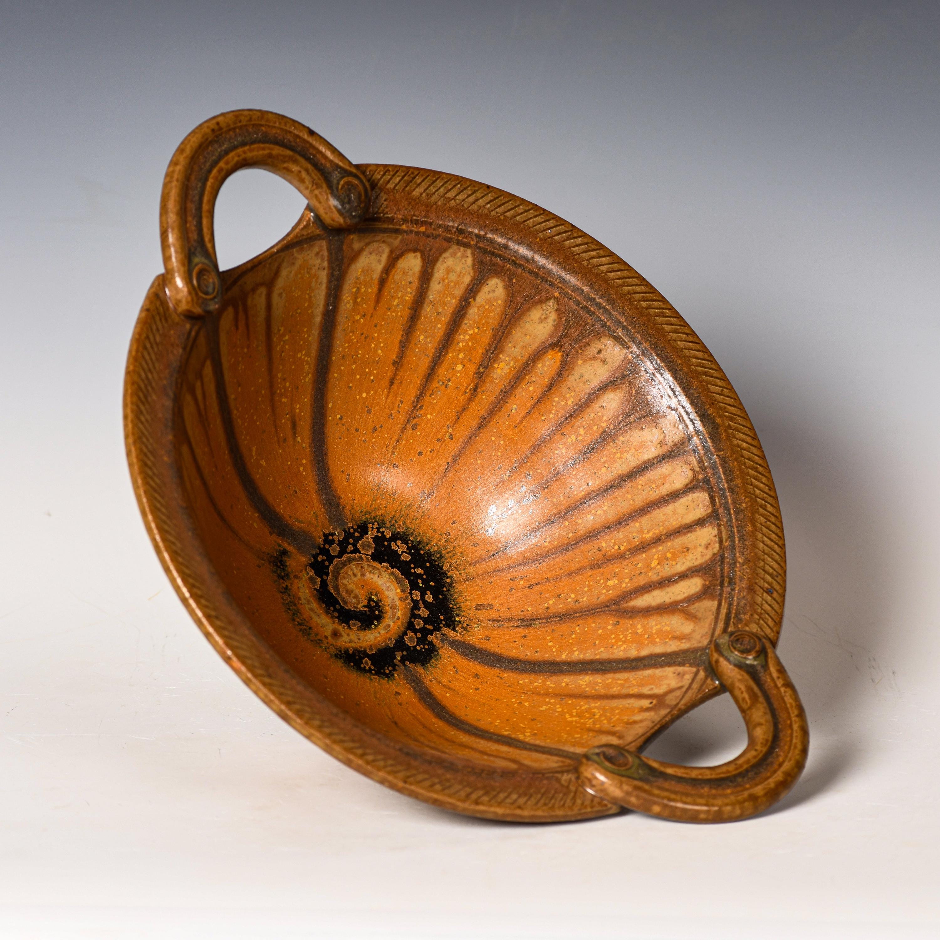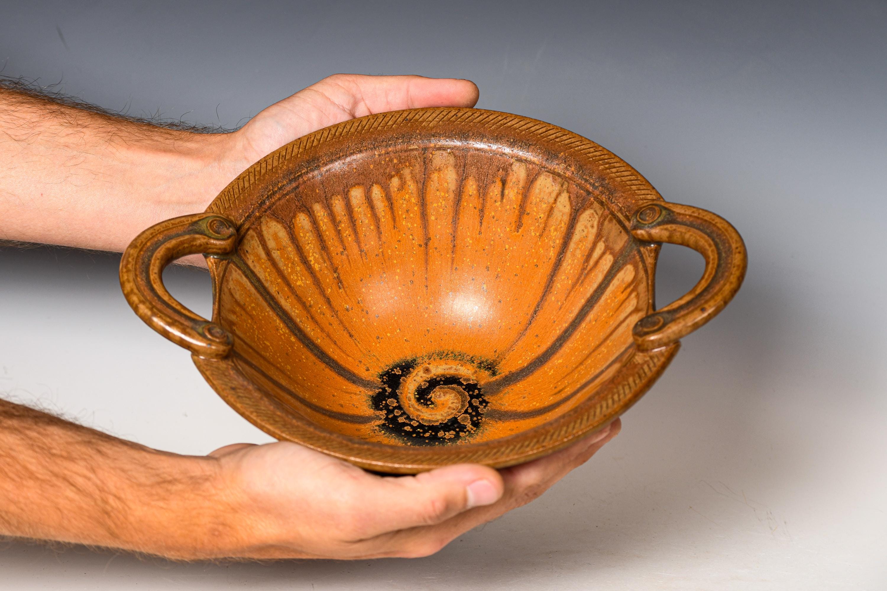 Ceramic Serving | Decorative Bowl with Handles | Yellow Ash Glaze #4