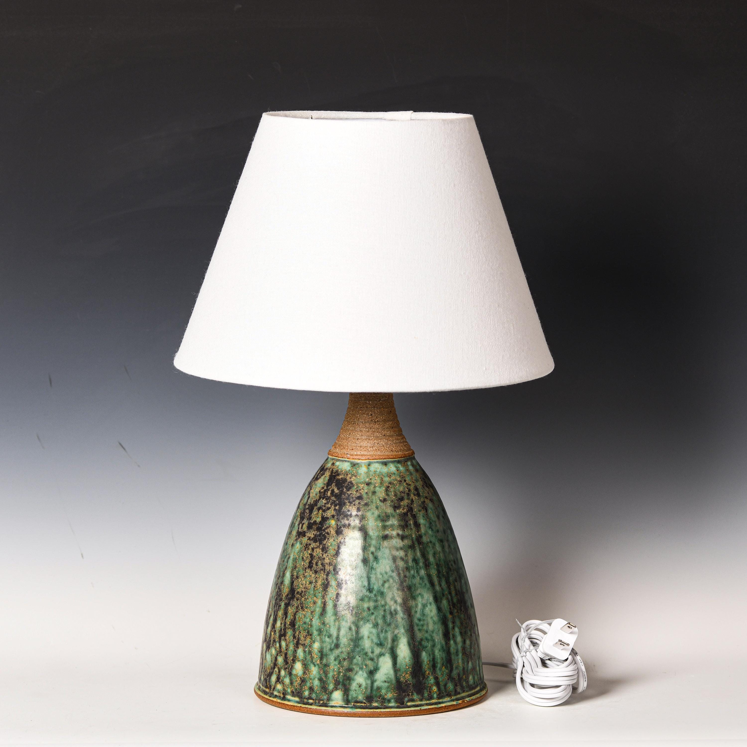 Ceramic Table Lamp | Stoneware Desk Light | Green Glaze #34