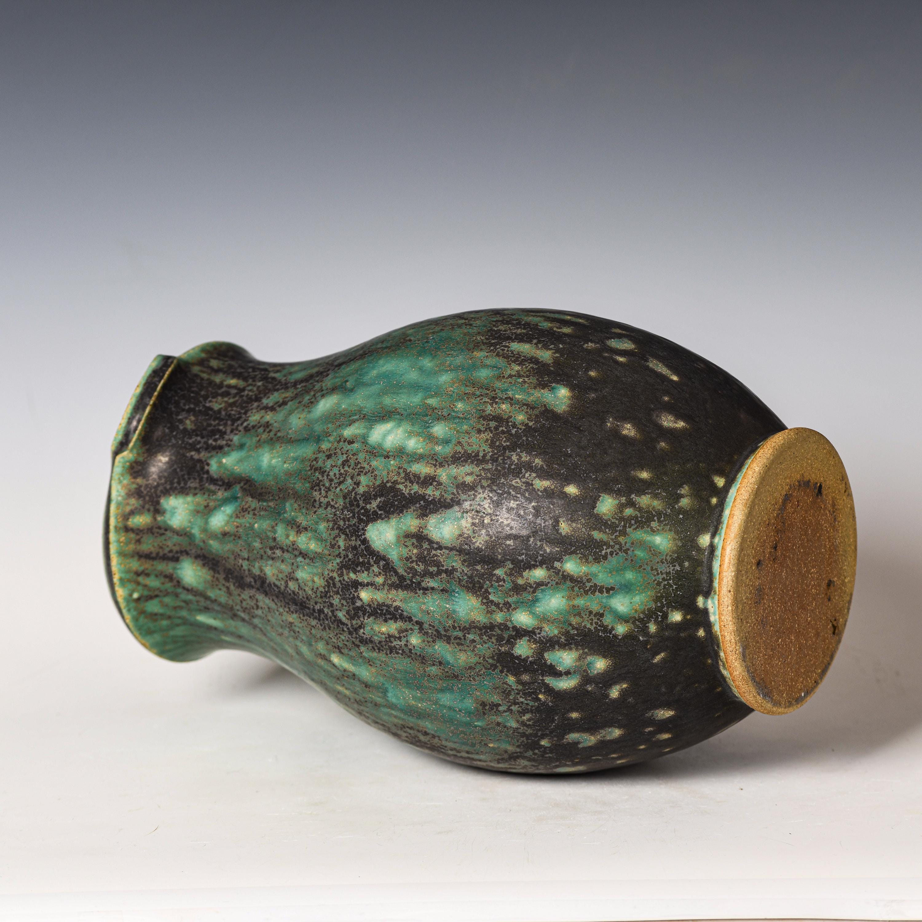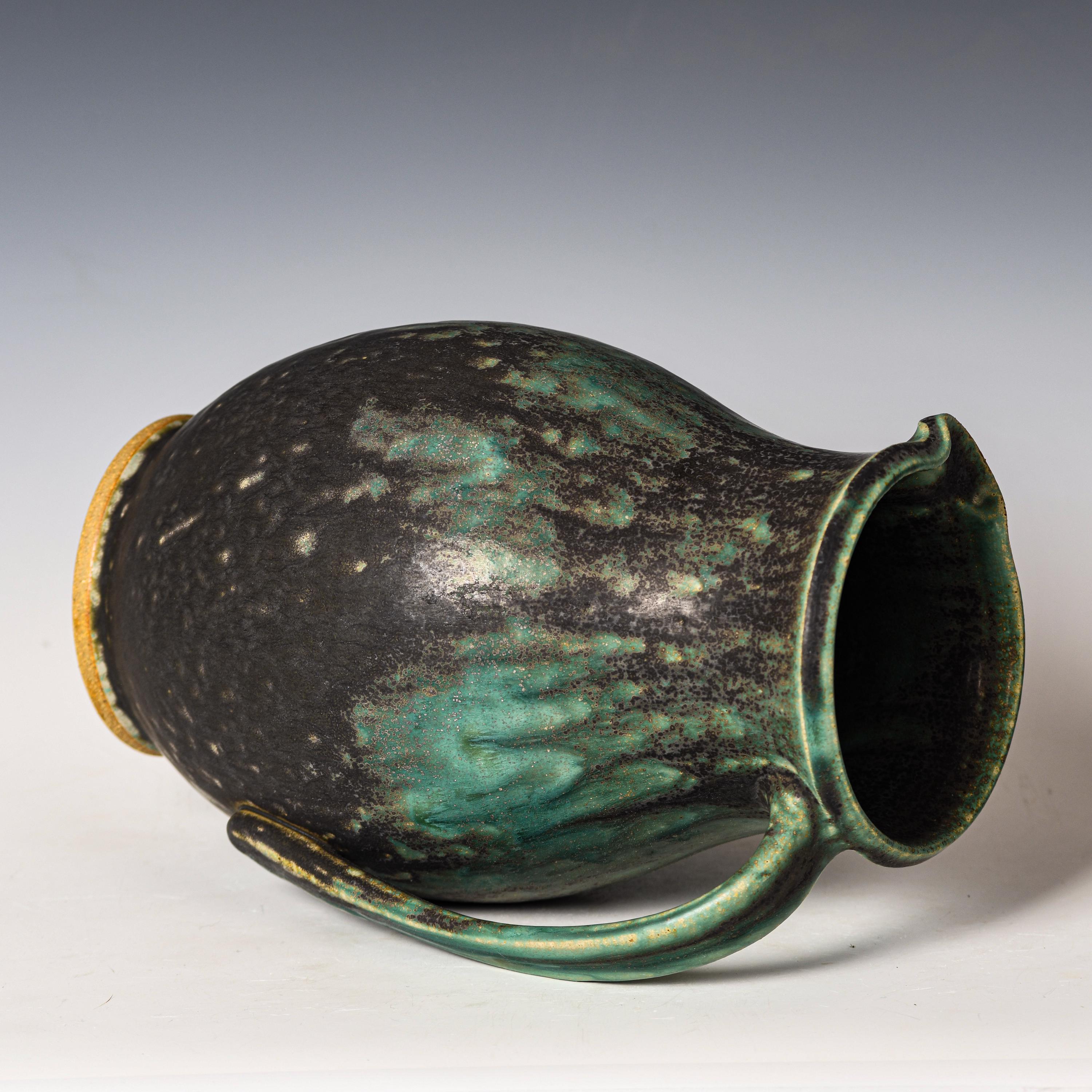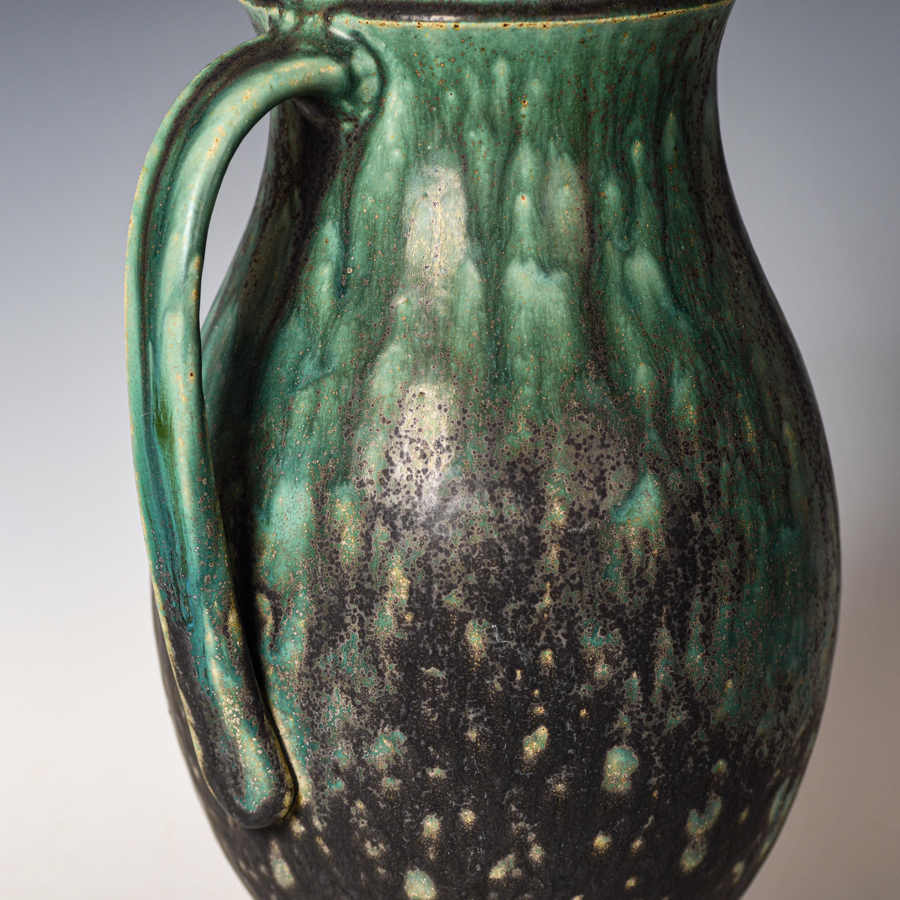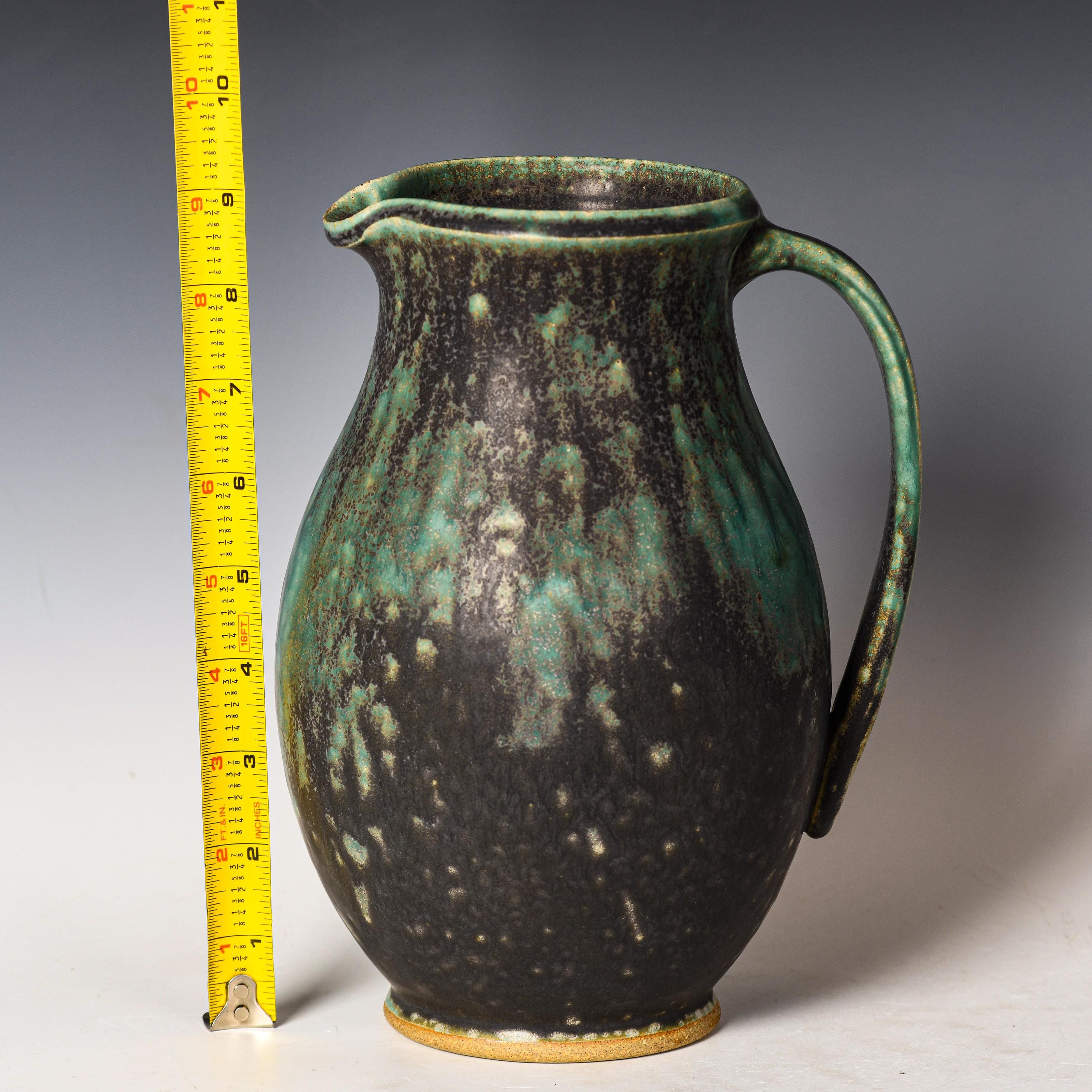 Stoneware Pitcher | Ceramic Flower Vase | Green & Black Glaze #26