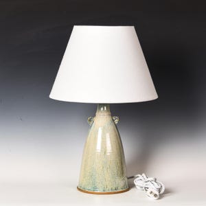 Brighten up your space with some mood lighting from one of our wheel thrown stoneware lamps. Accepts standard size bulbs & has a 6' white cord. If the lamp is pictured with a harp, the harp will be included but is not required for all shades.
