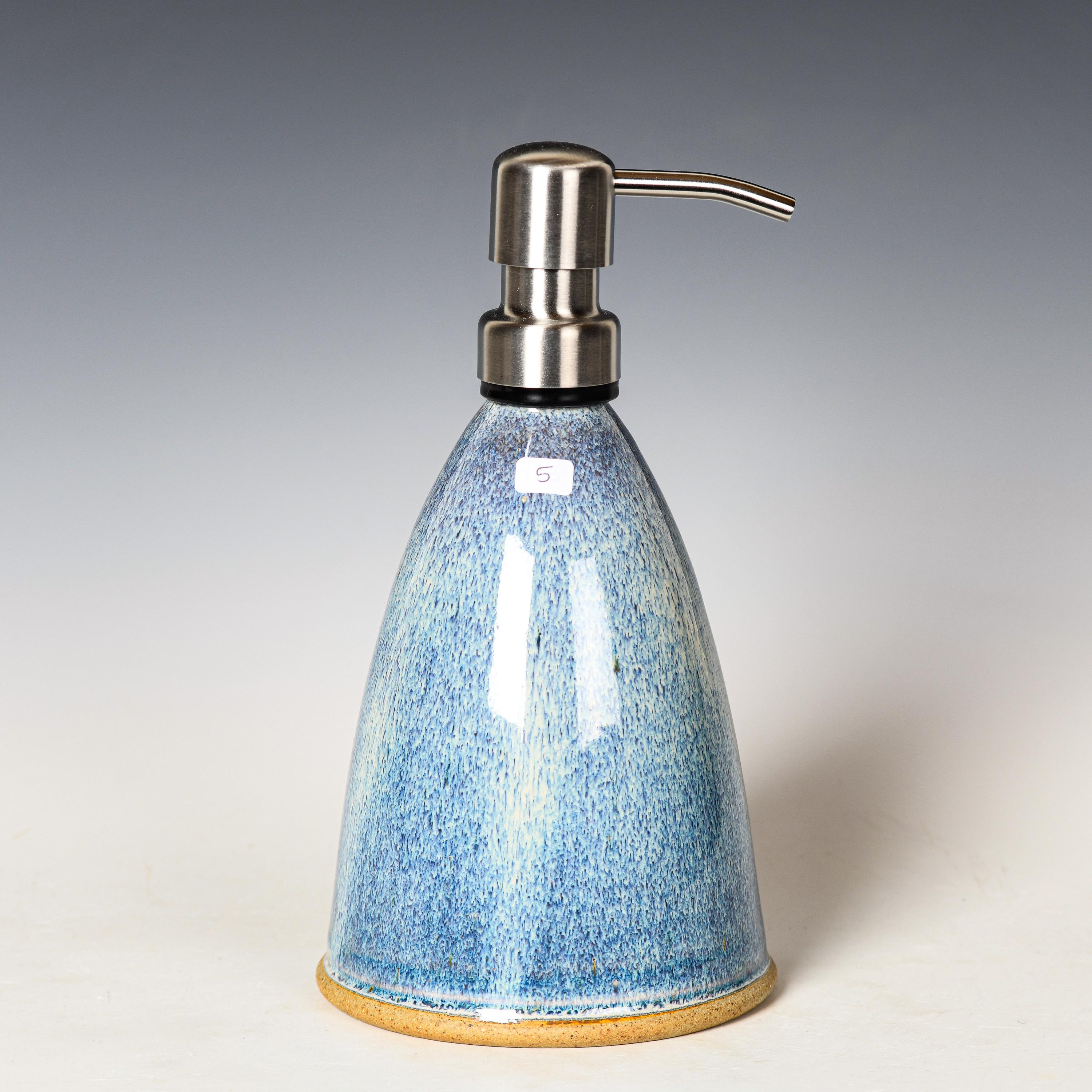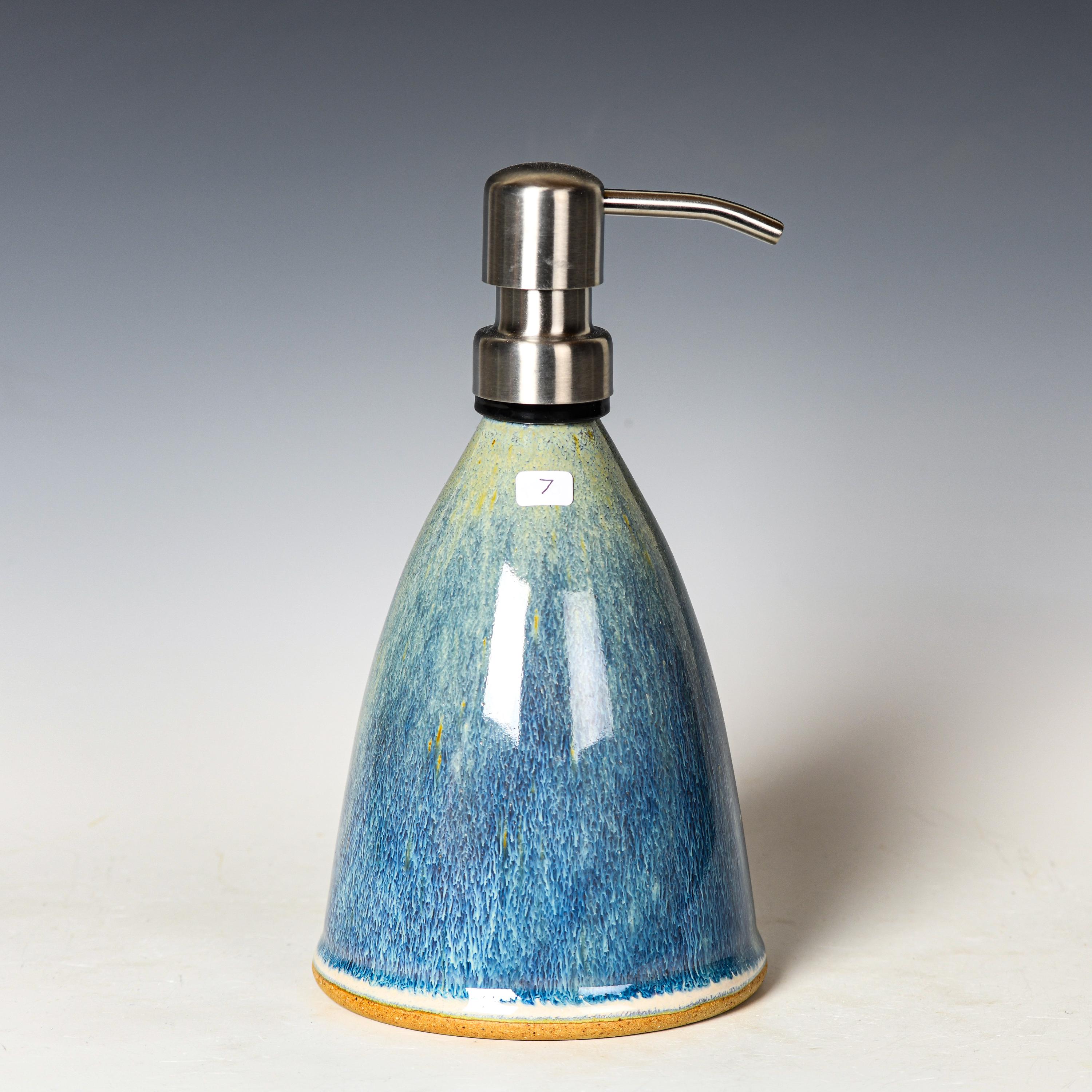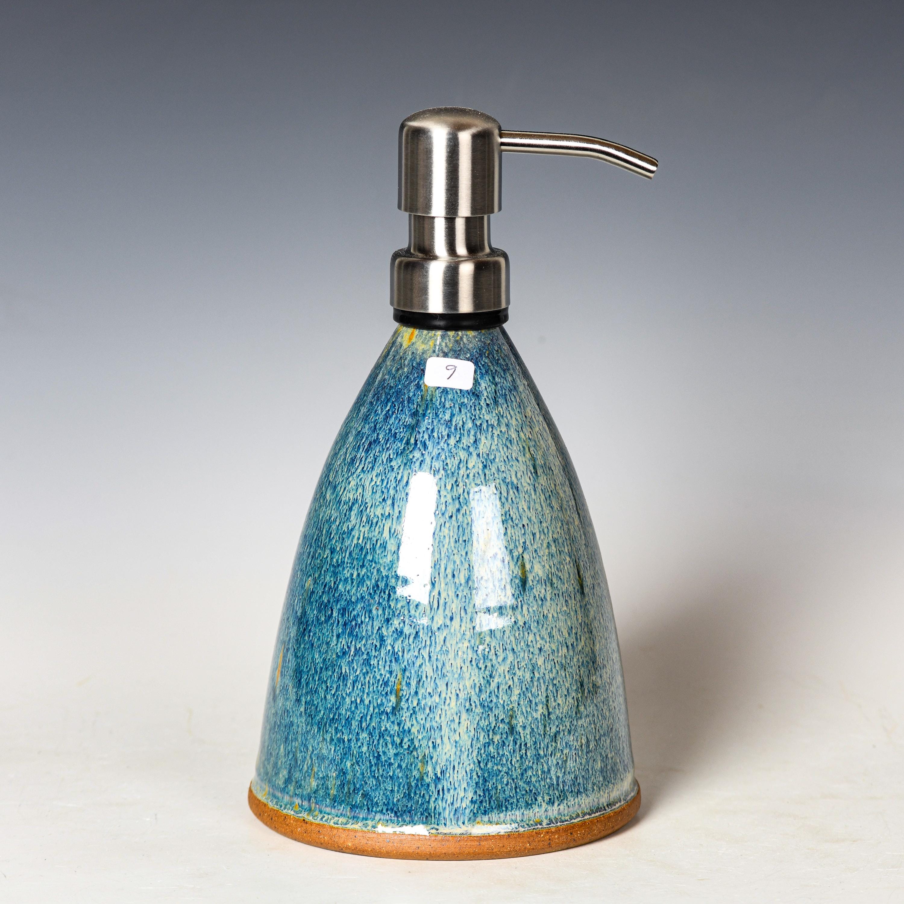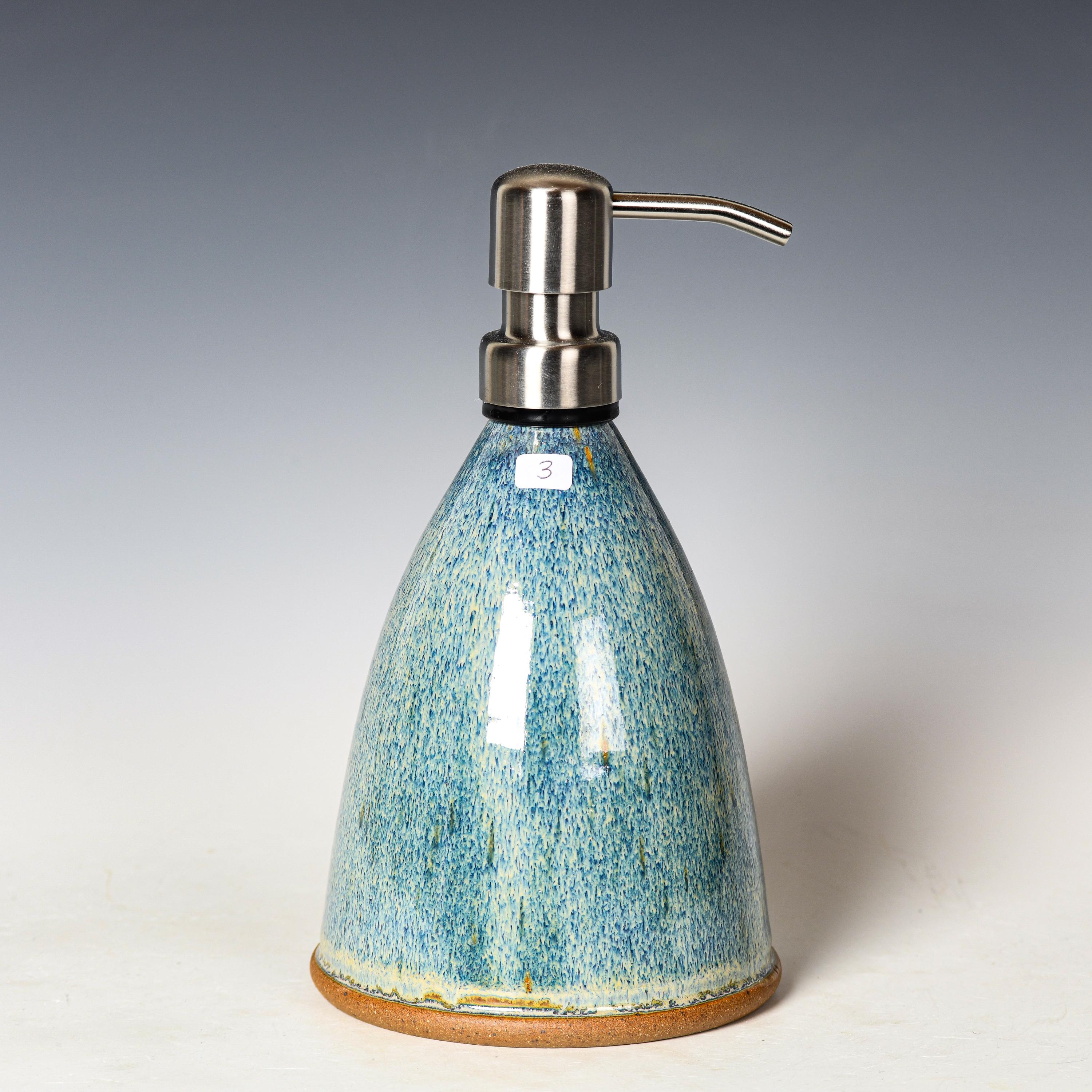 Ceramic Soap Pump Dispenser | Blue & White Glaze | Reusable Lotion Bottle