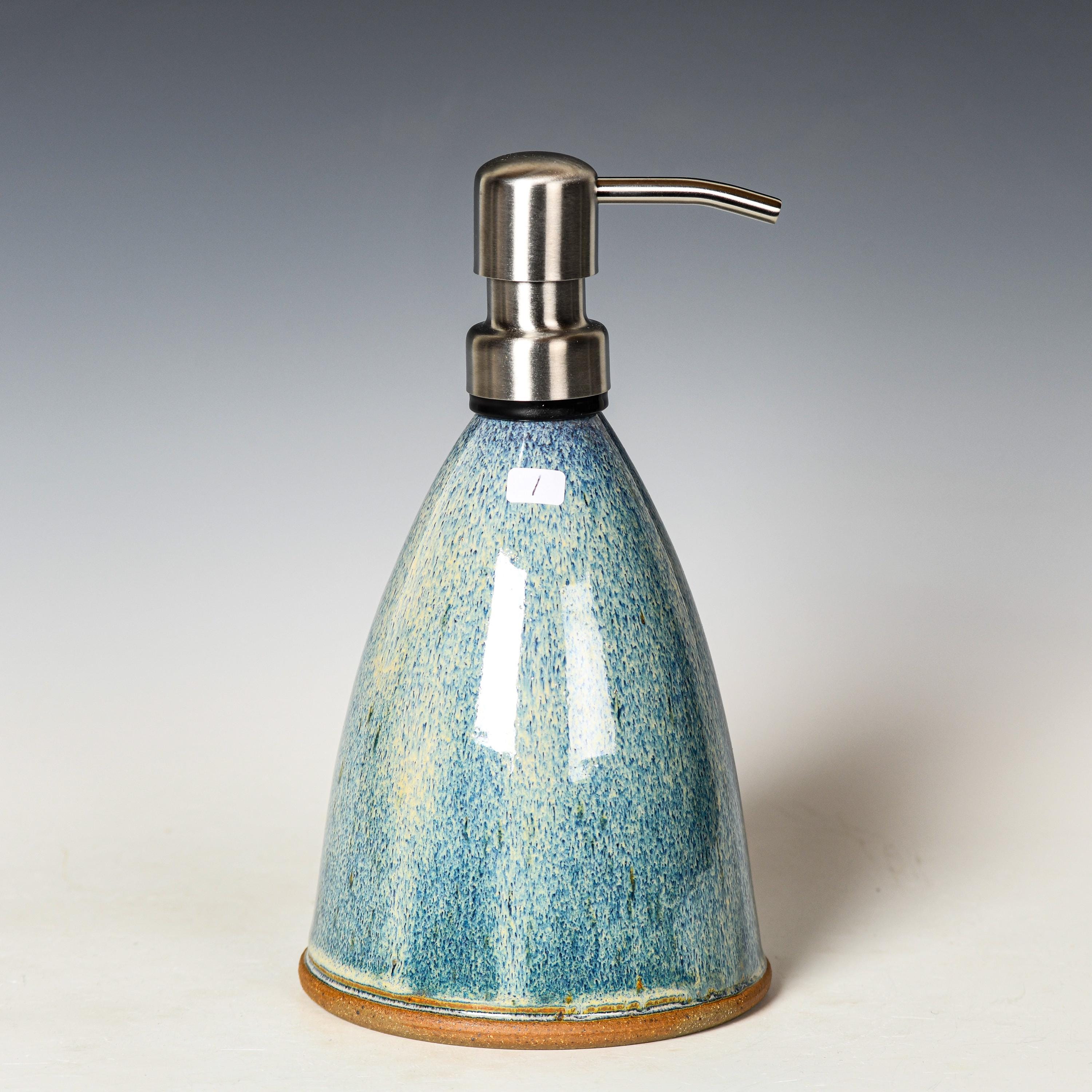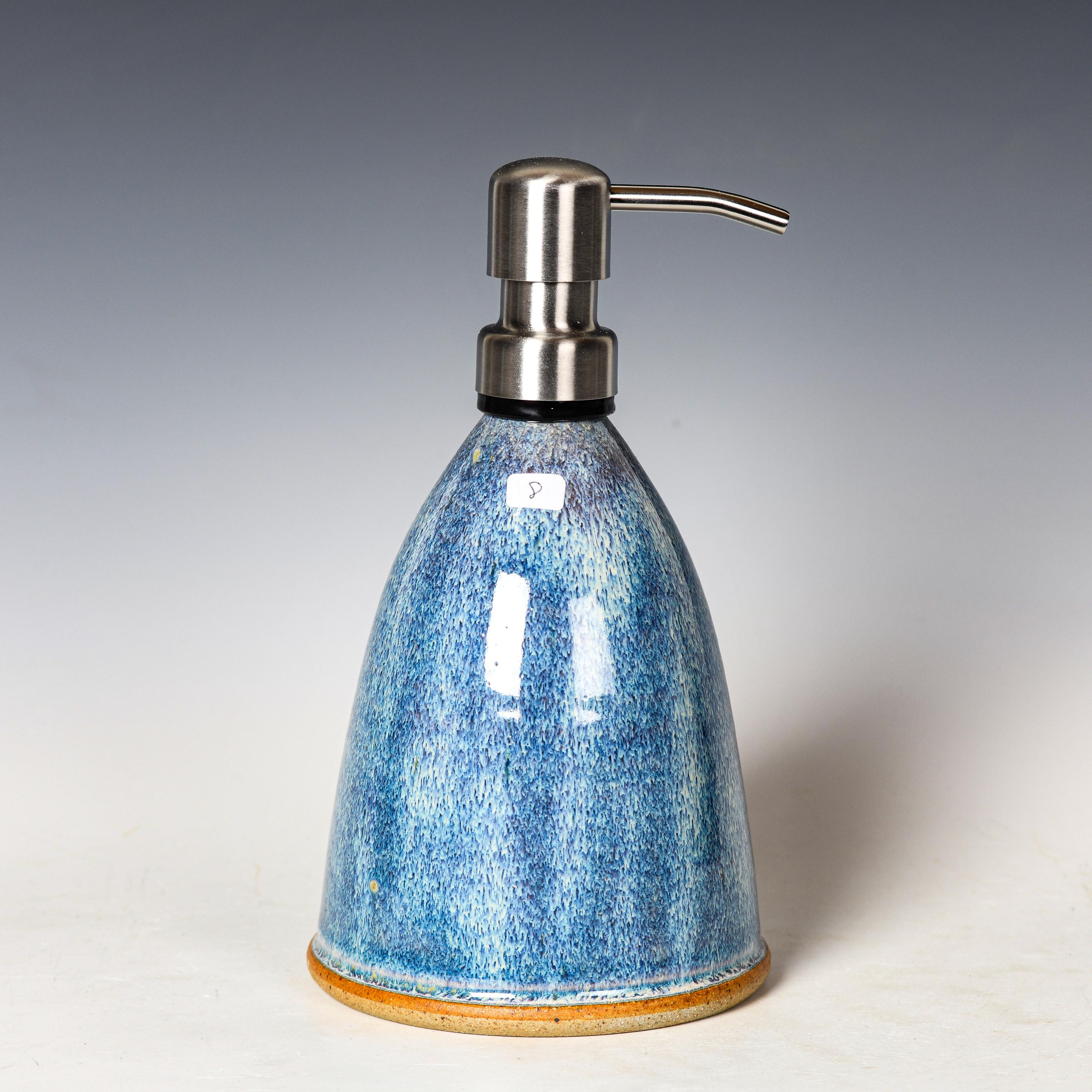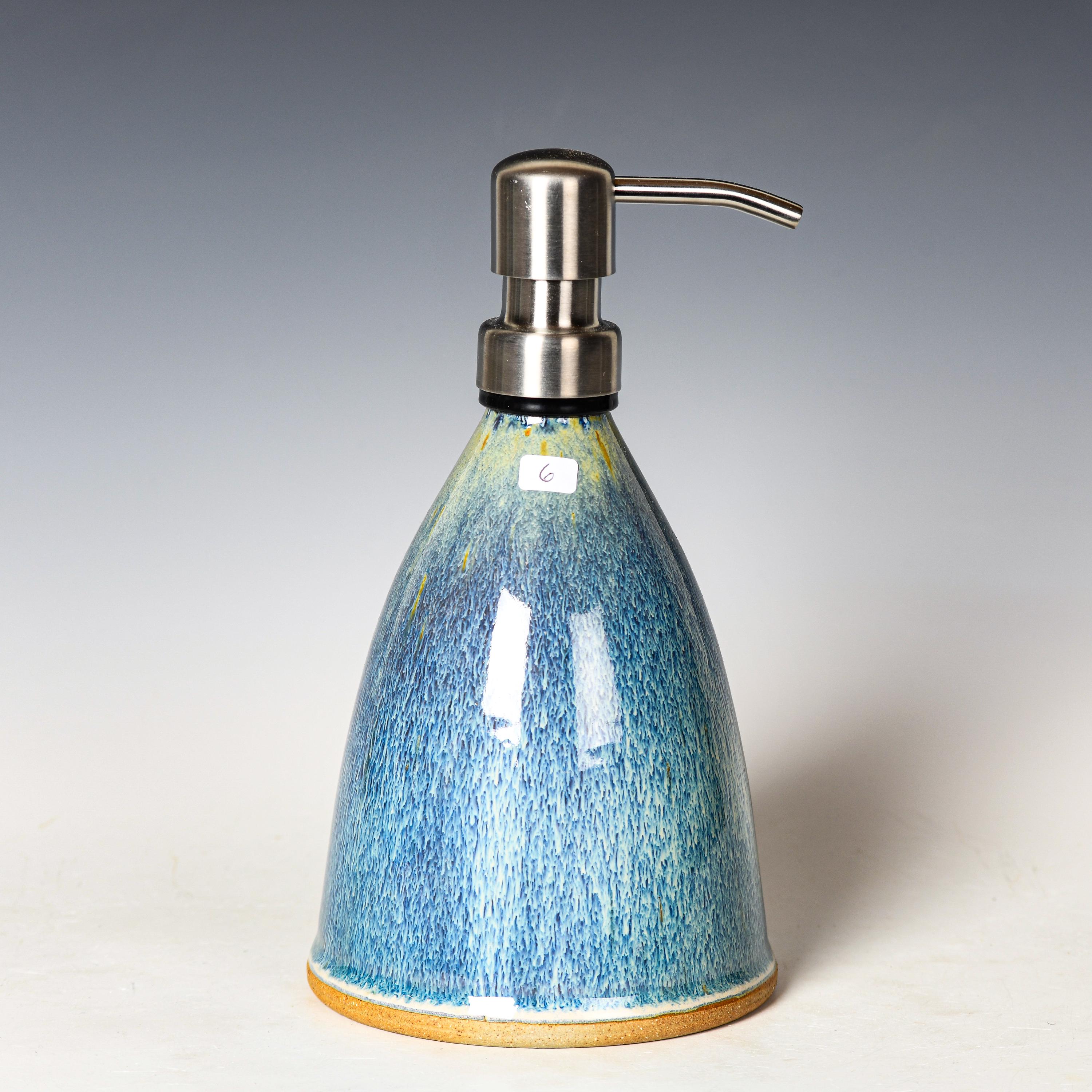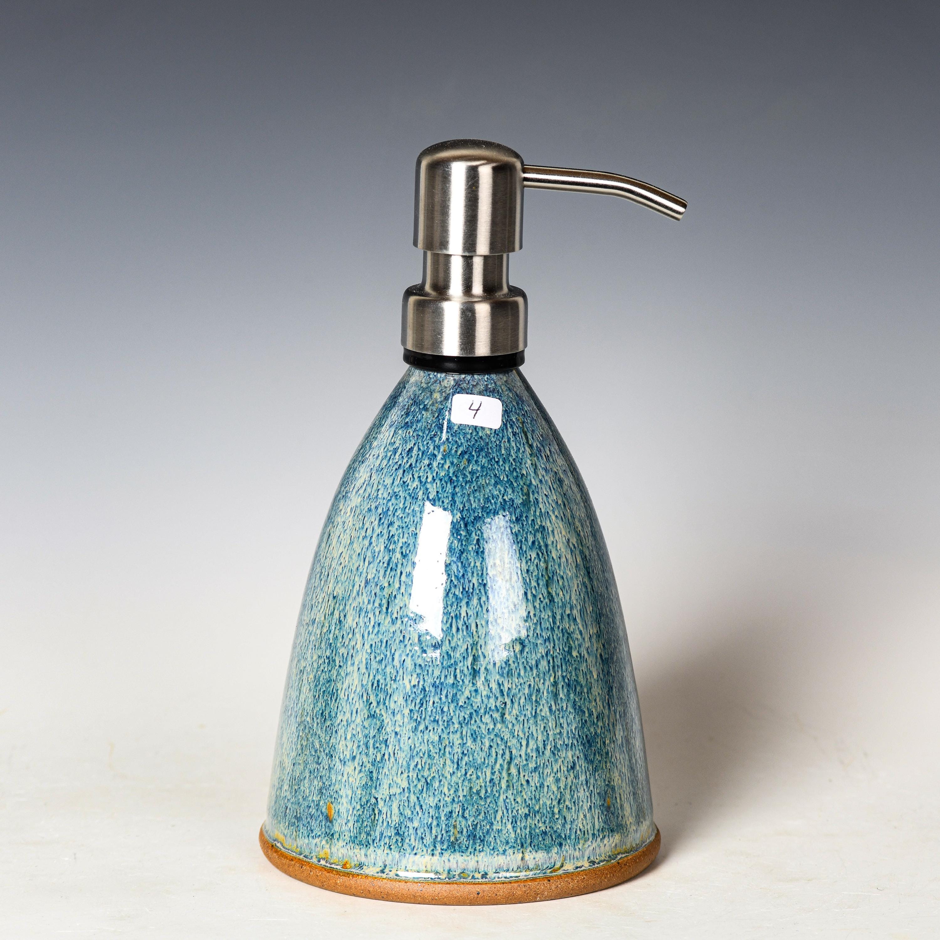 Ceramic Soap Pump Dispenser | Blue & White Glaze | Reusable Lotion Bottle