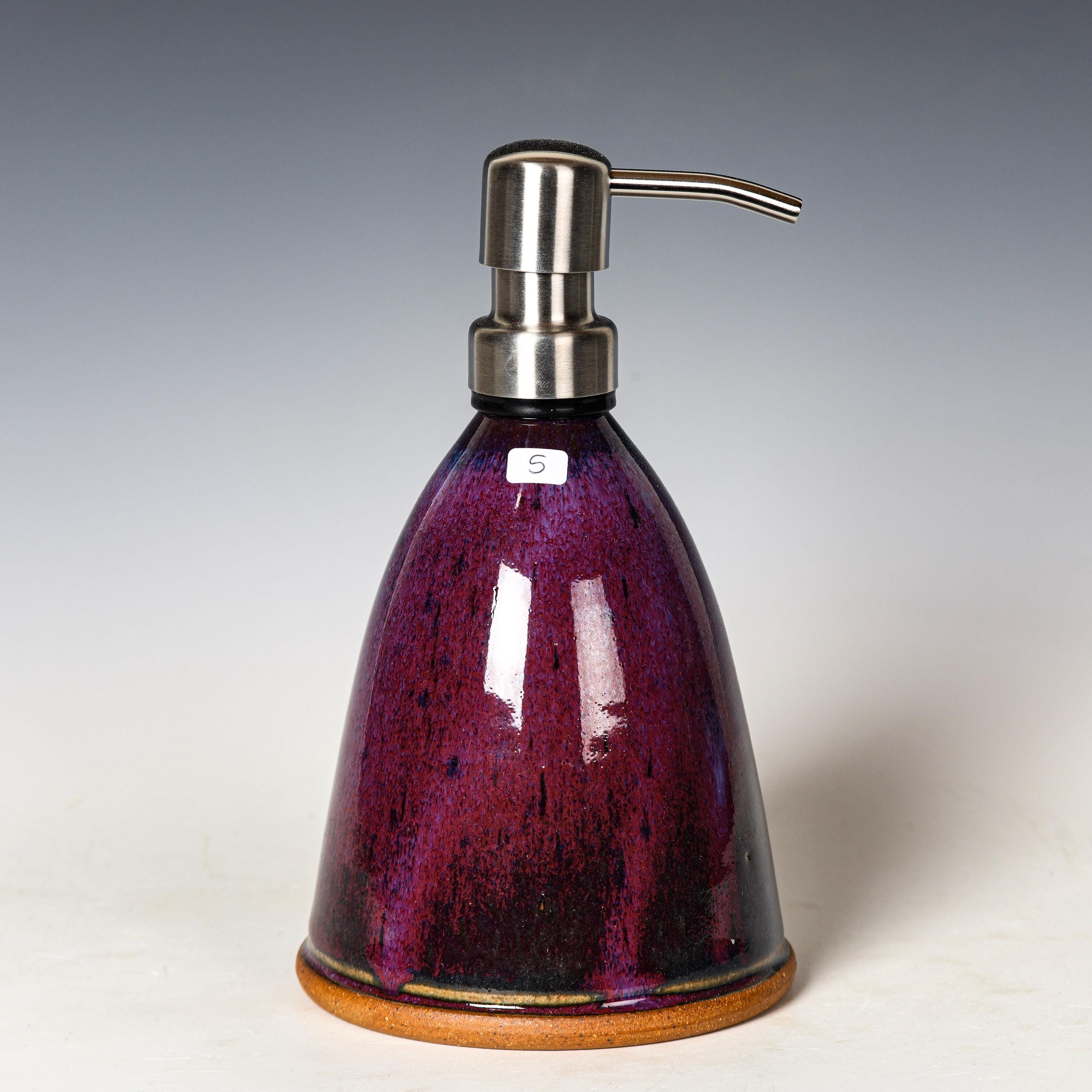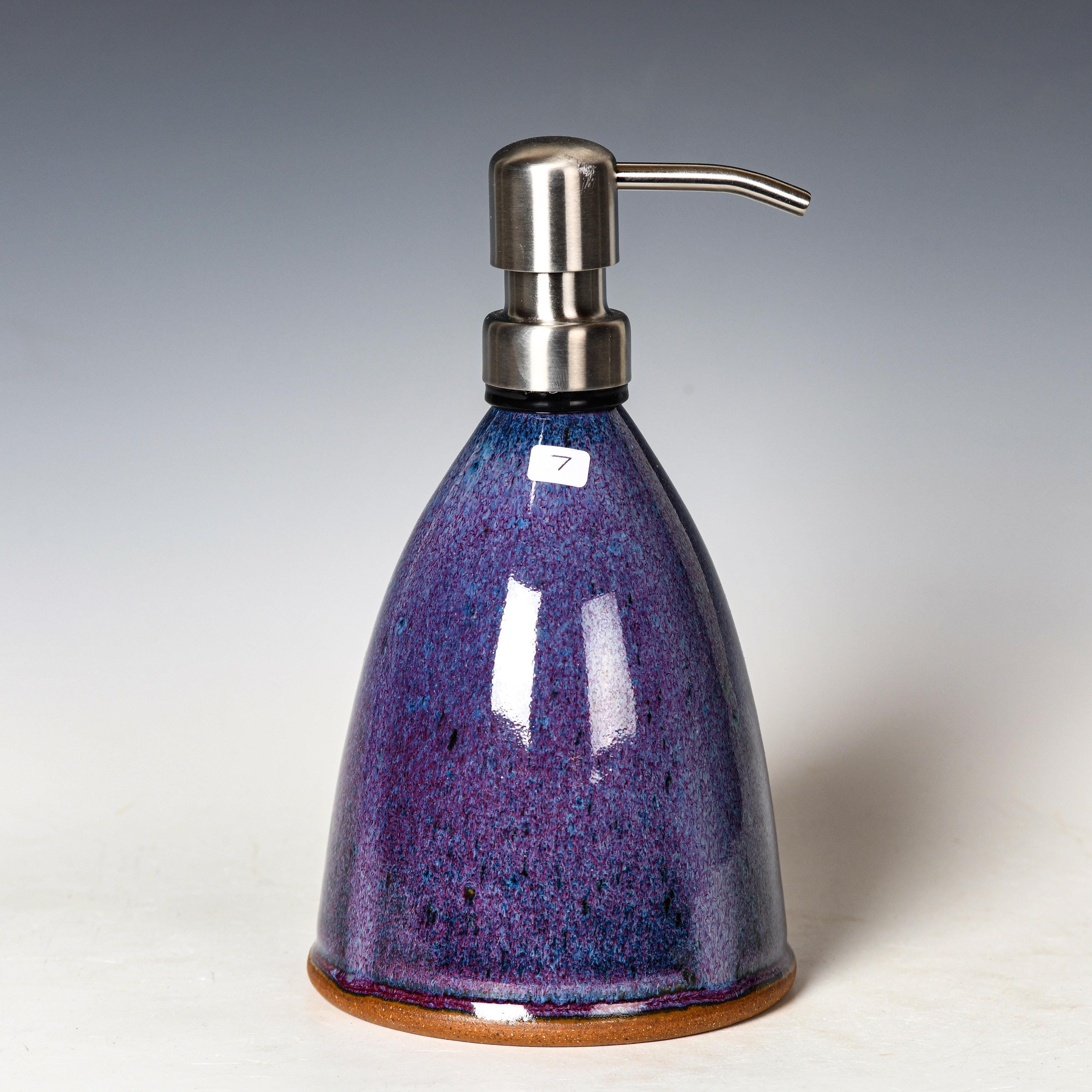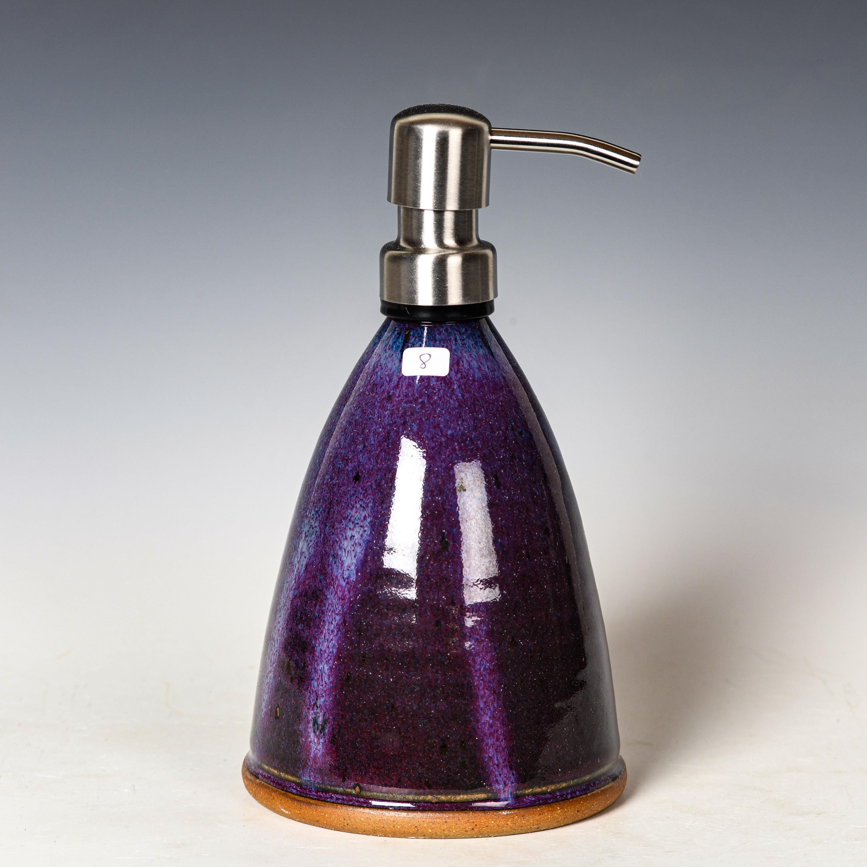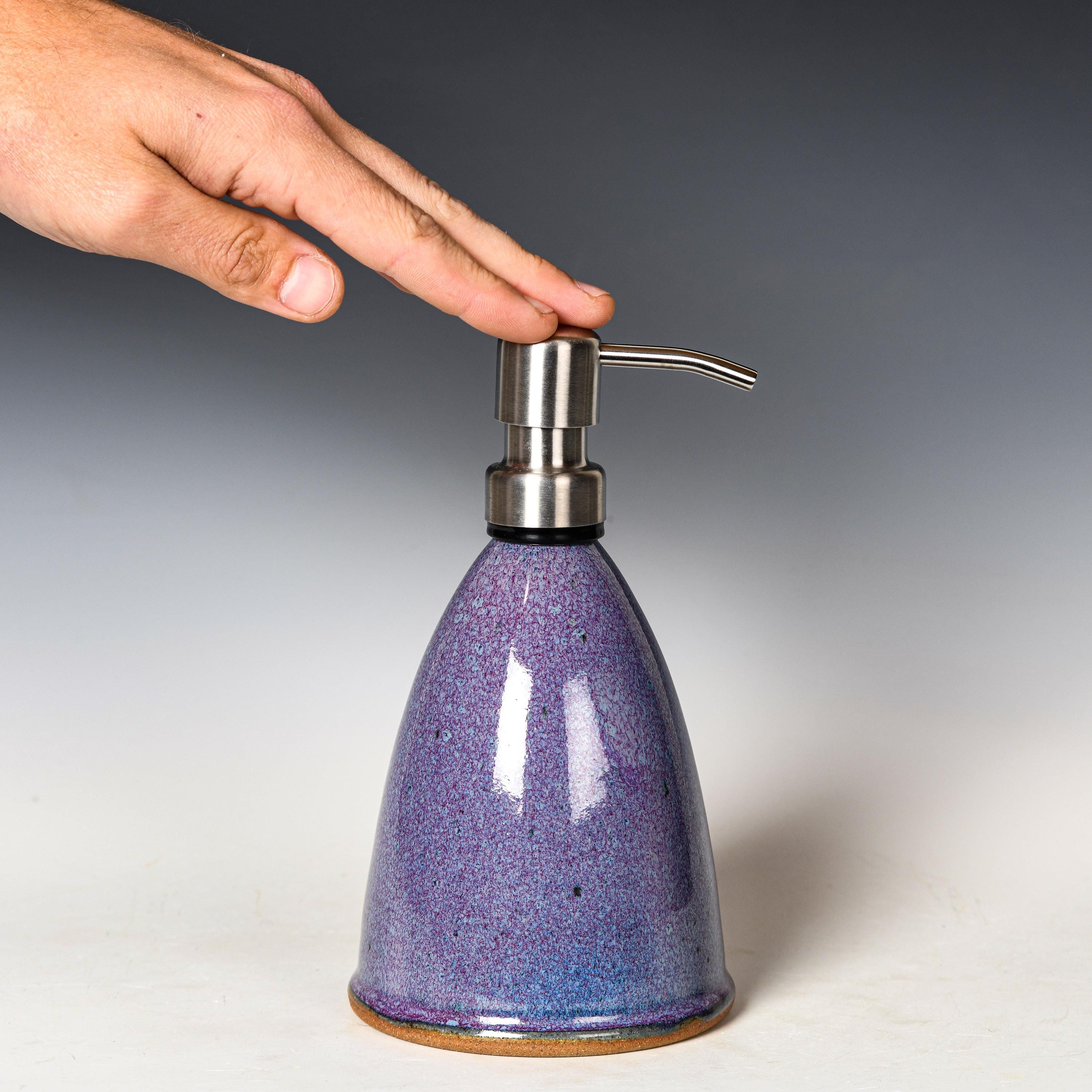 Ceramic Soap Pump Dispenser | Purple Glaze | Reusable Lotion Bottle