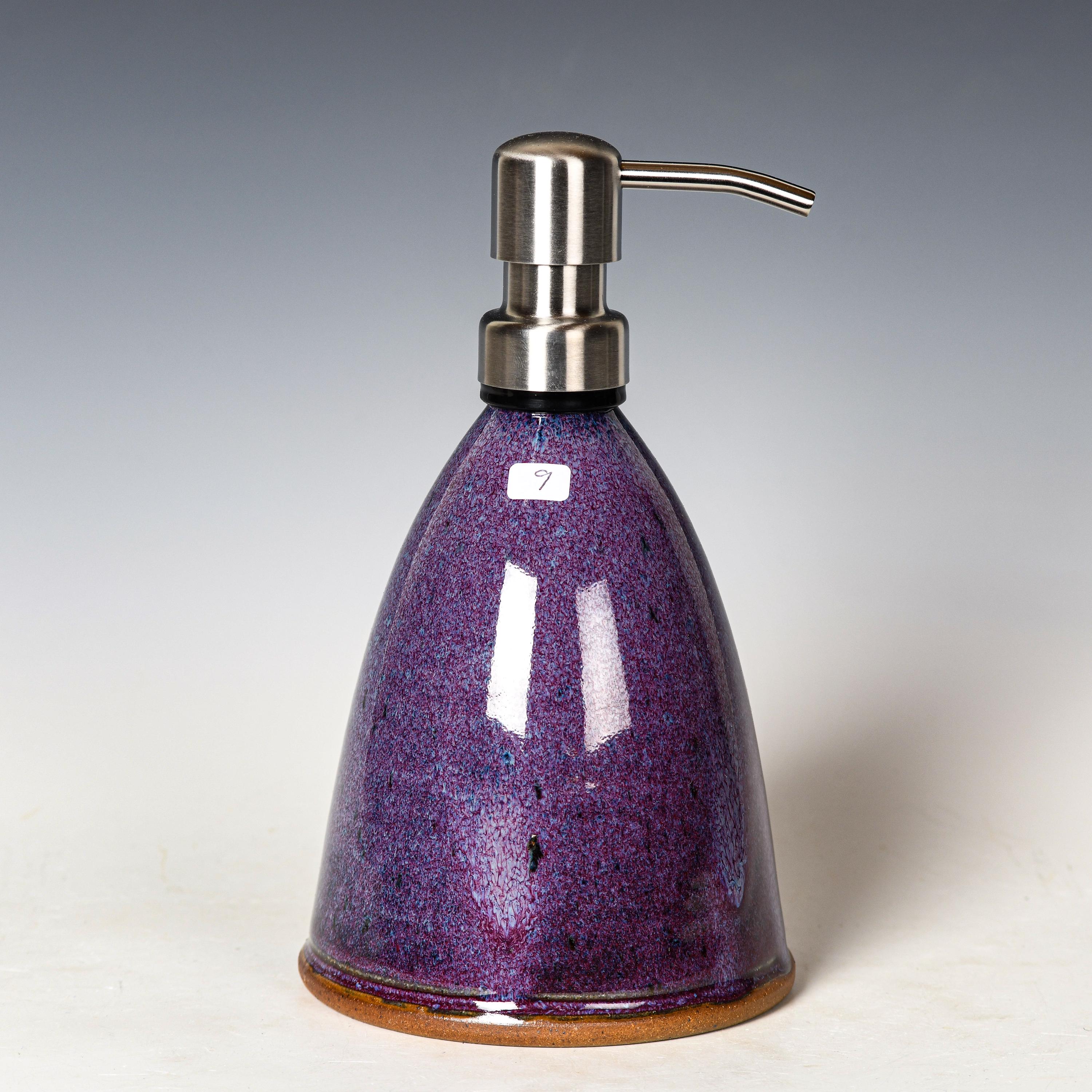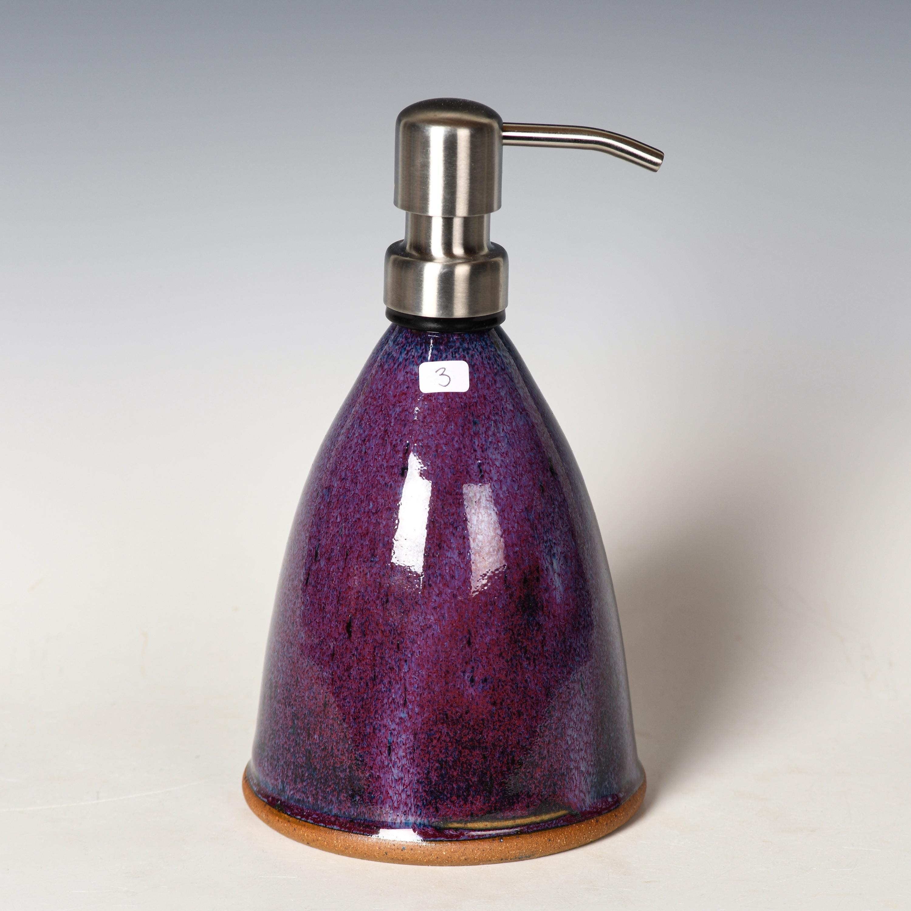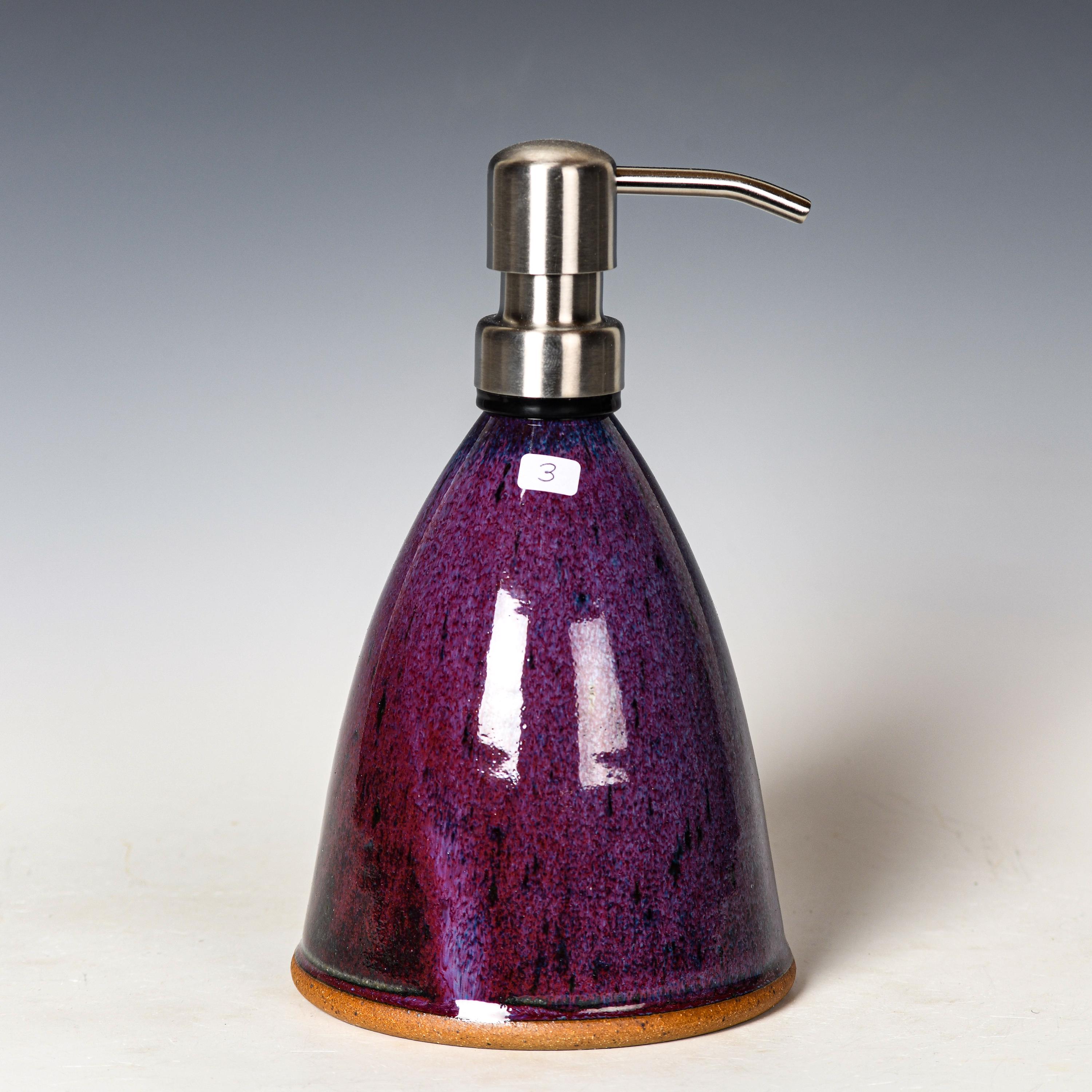 Ceramic Soap Pump Dispenser | Purple Glaze | Reusable Lotion Bottle