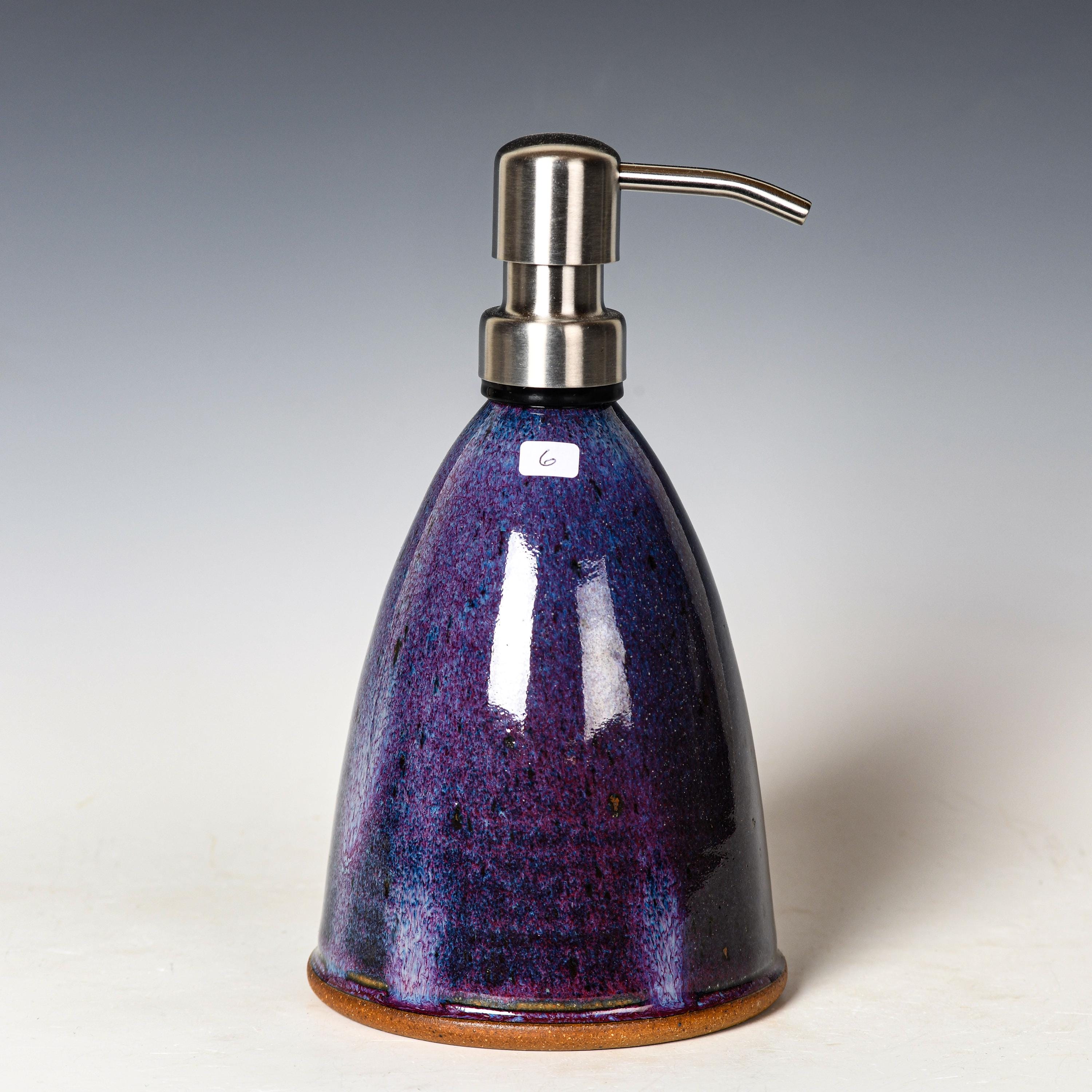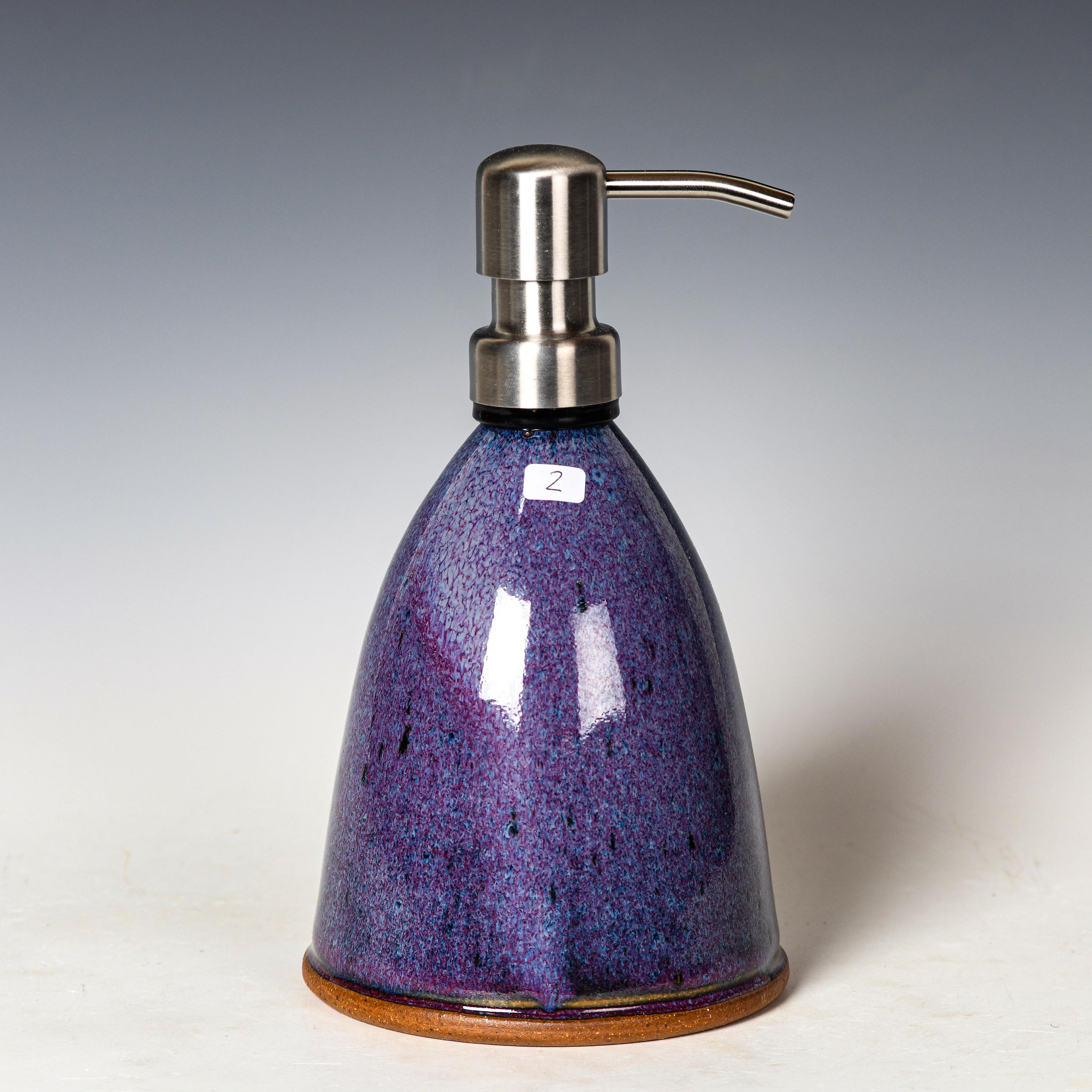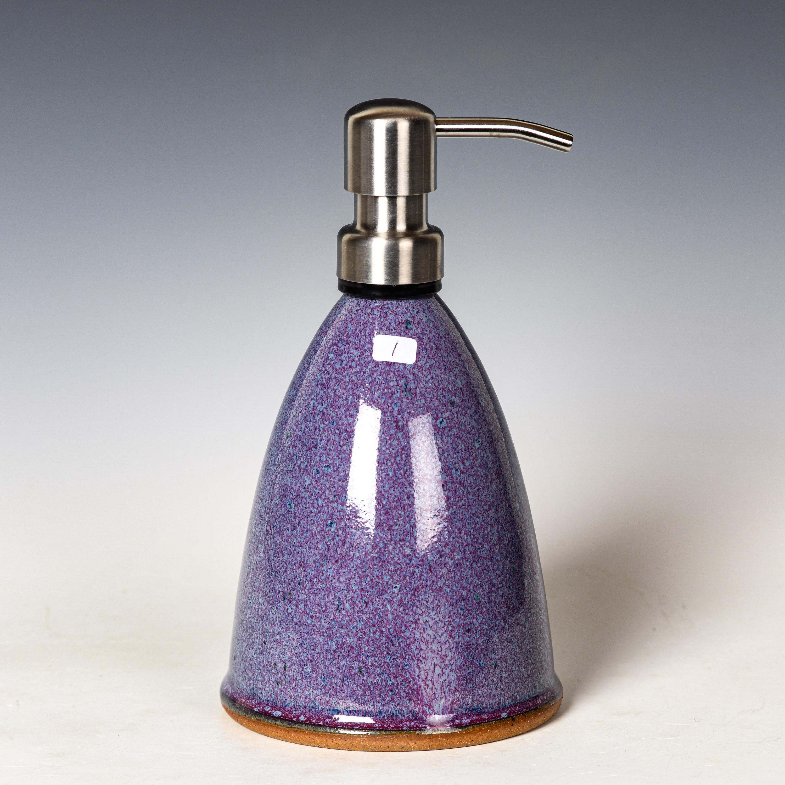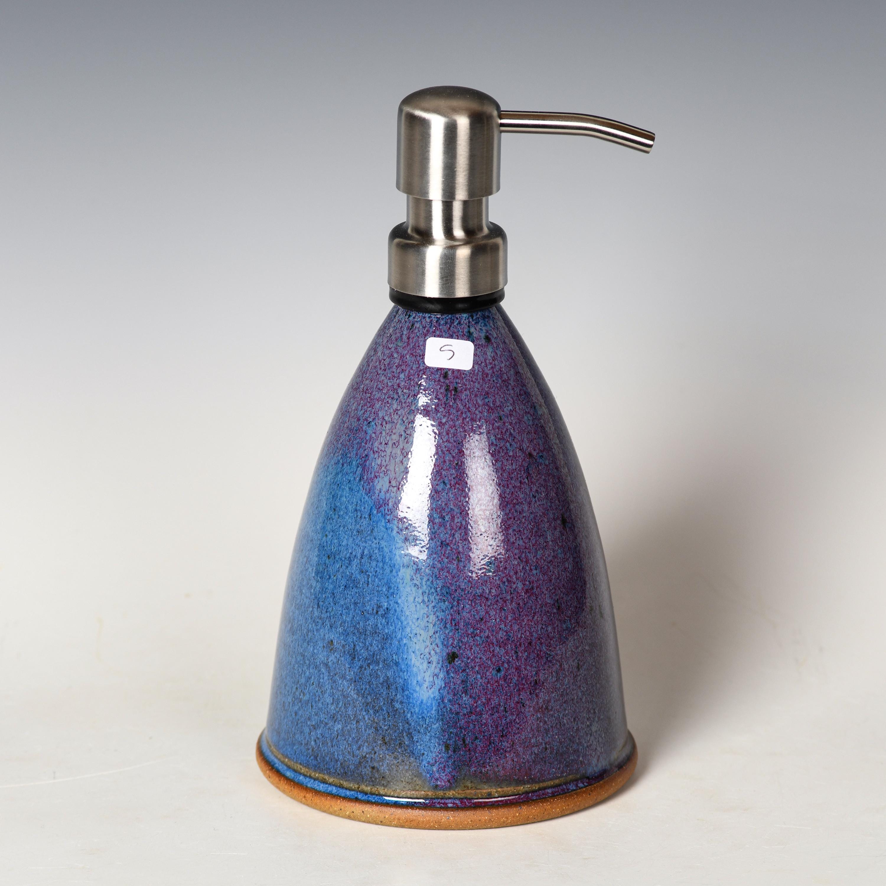 Ceramic Soap Pump Dispenser | Purple Glaze | Reusable Lotion Bottle
