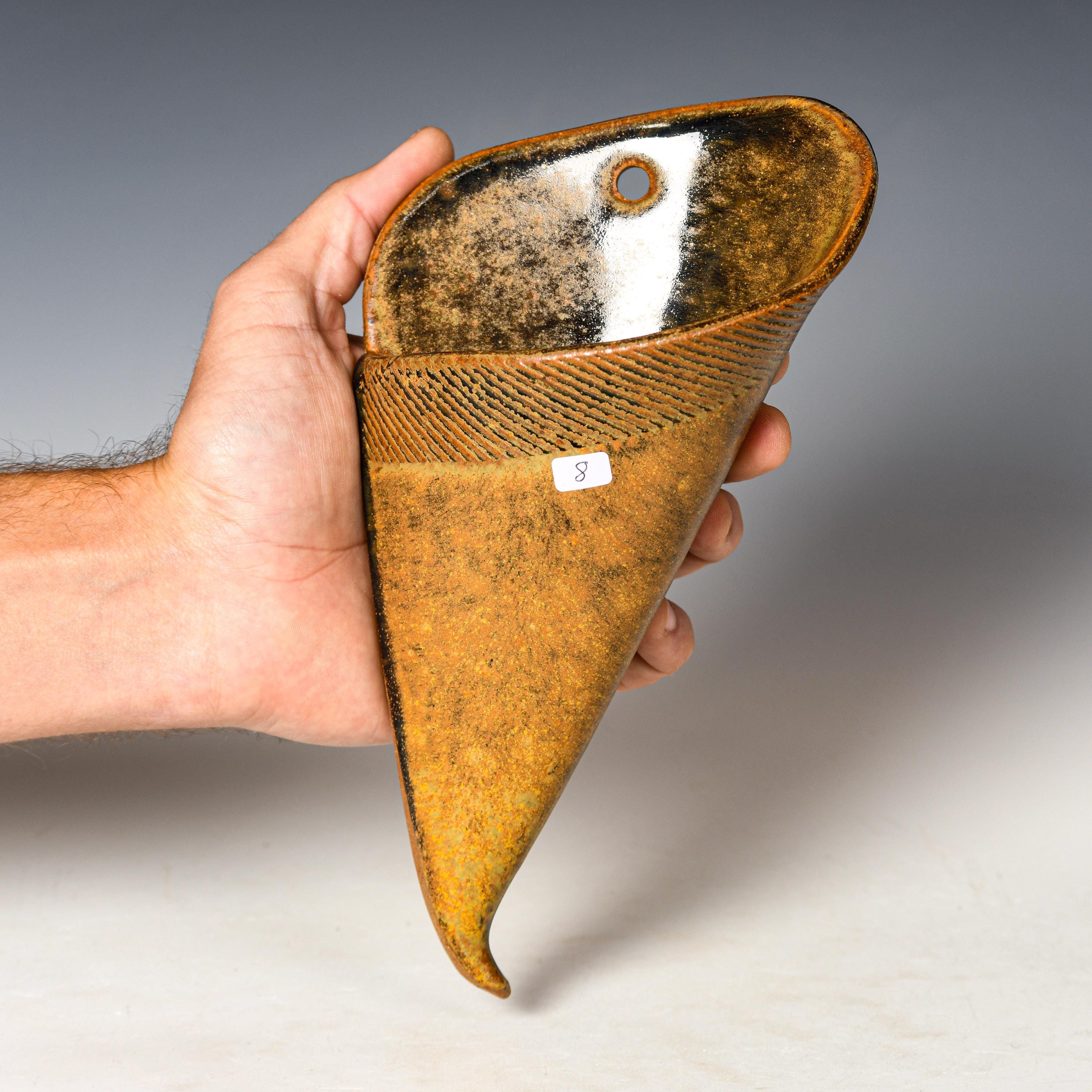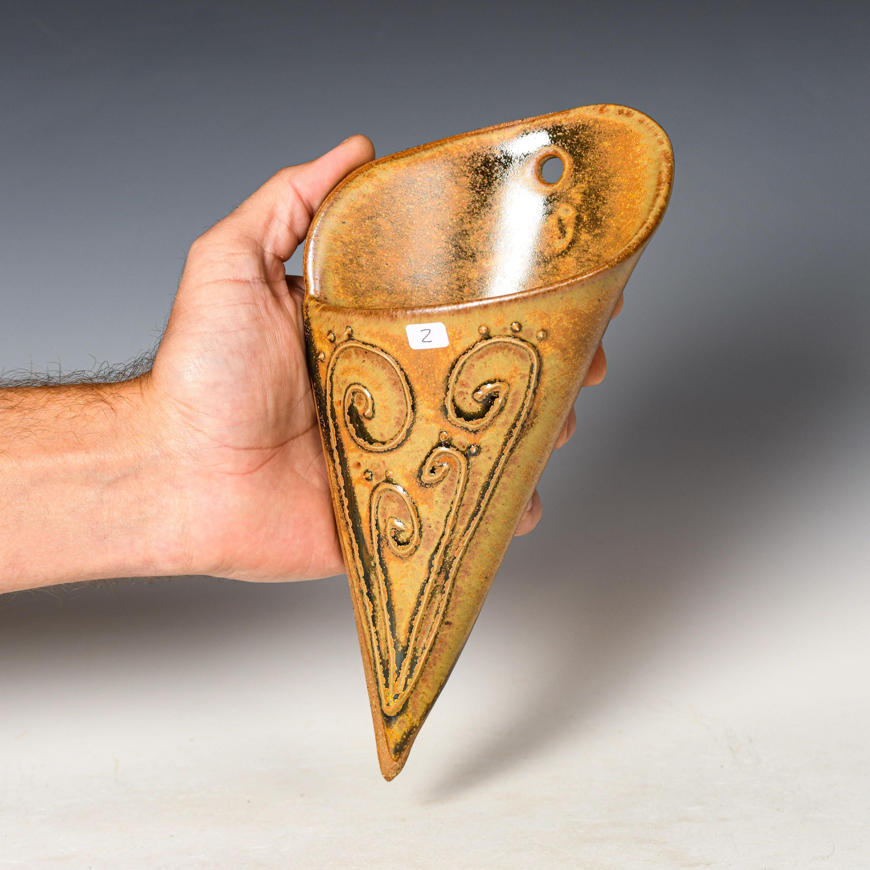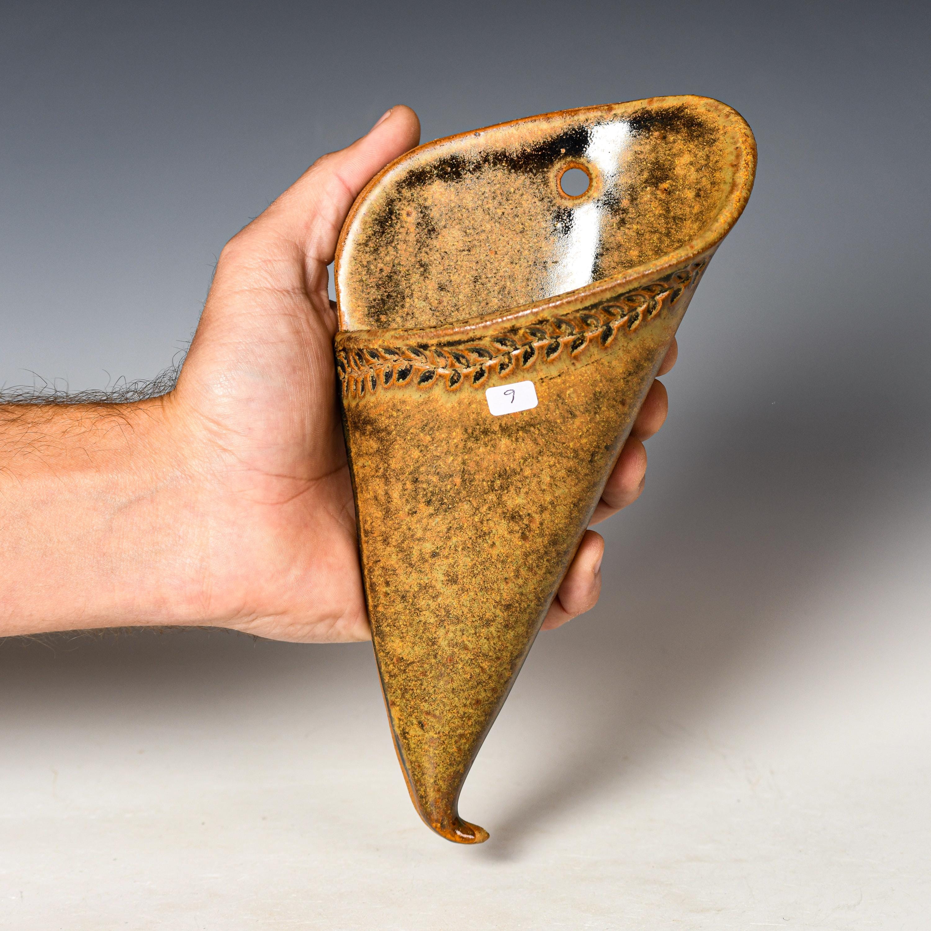 Ceramic Wall Pocket | Yellow Ash Glaze | Stoneware Hanging Pocket