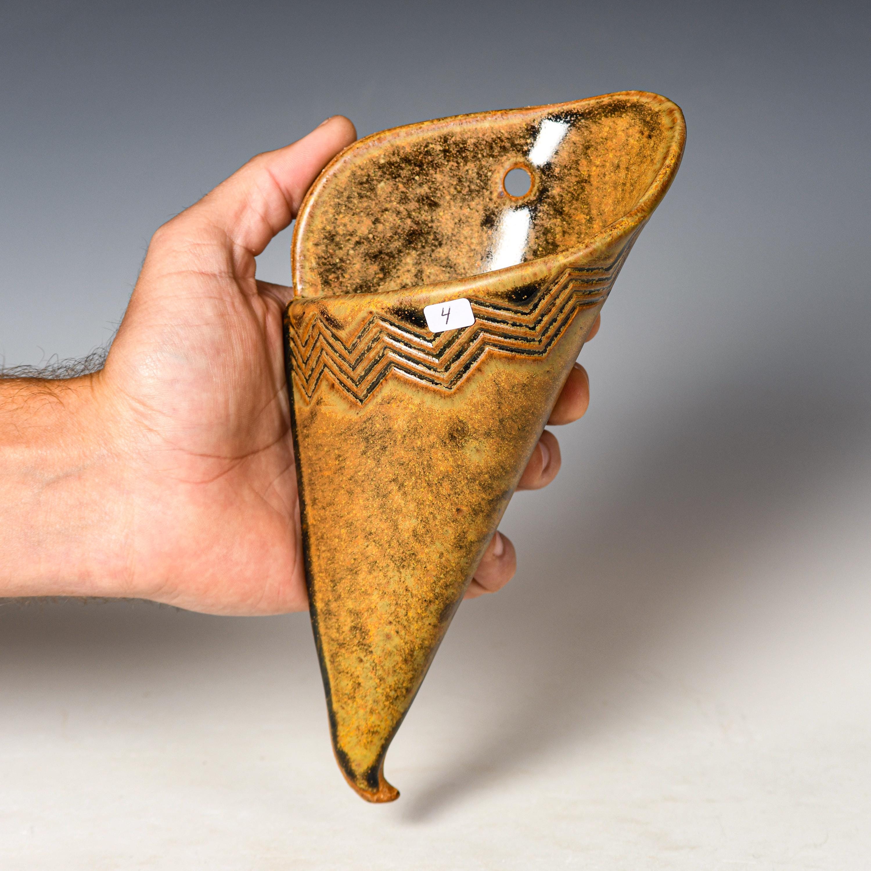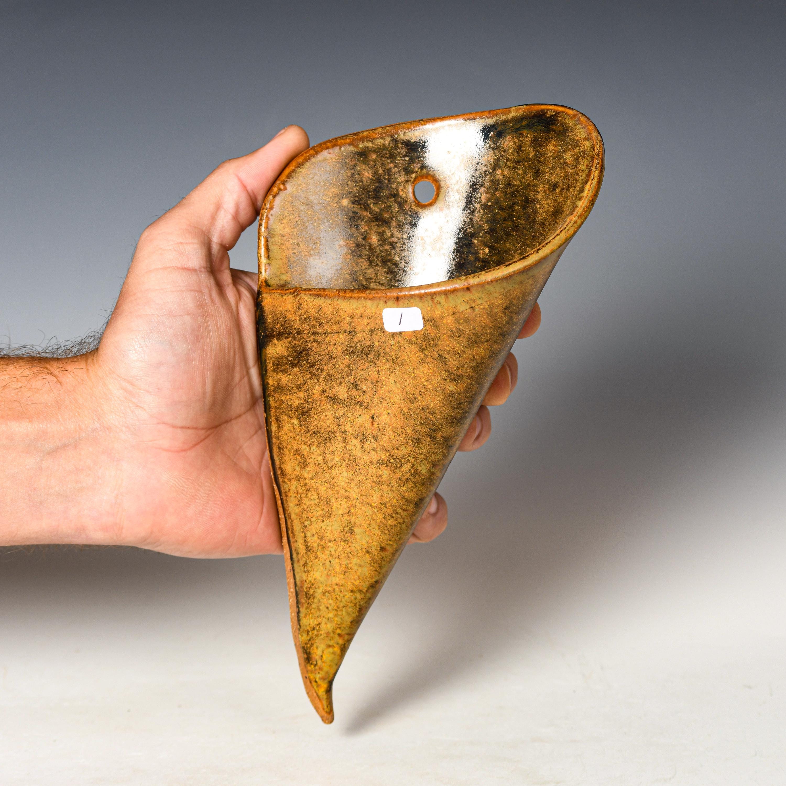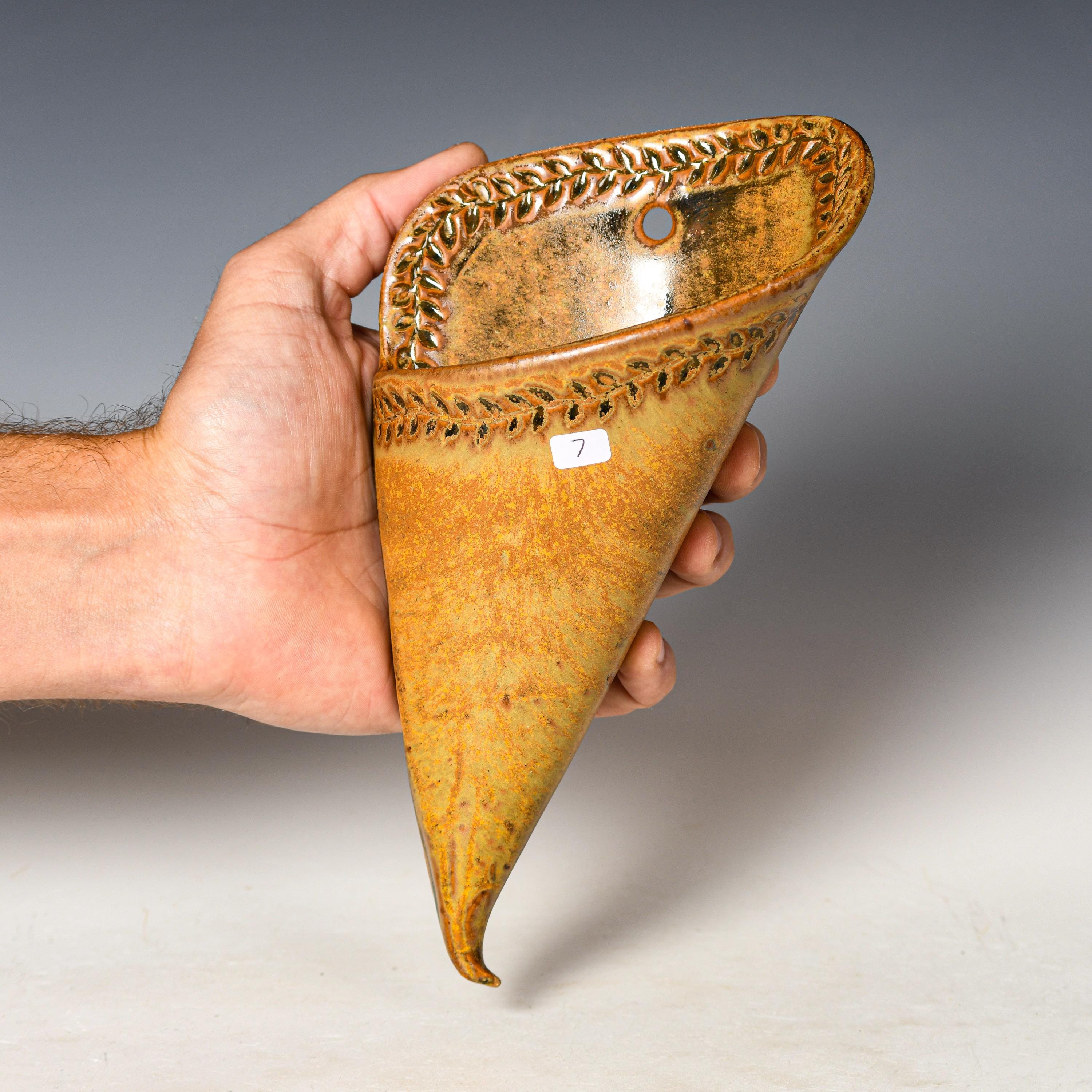 Ceramic Wall Pocket | Yellow Ash Glaze | Stoneware Hanging Pocket