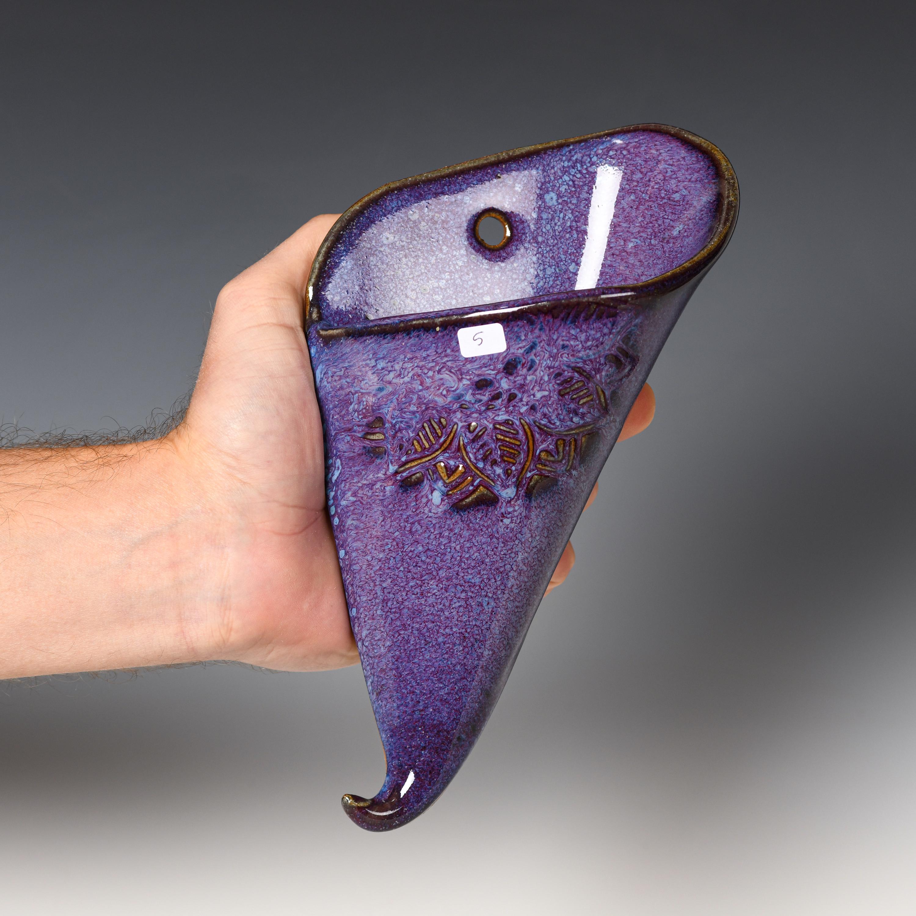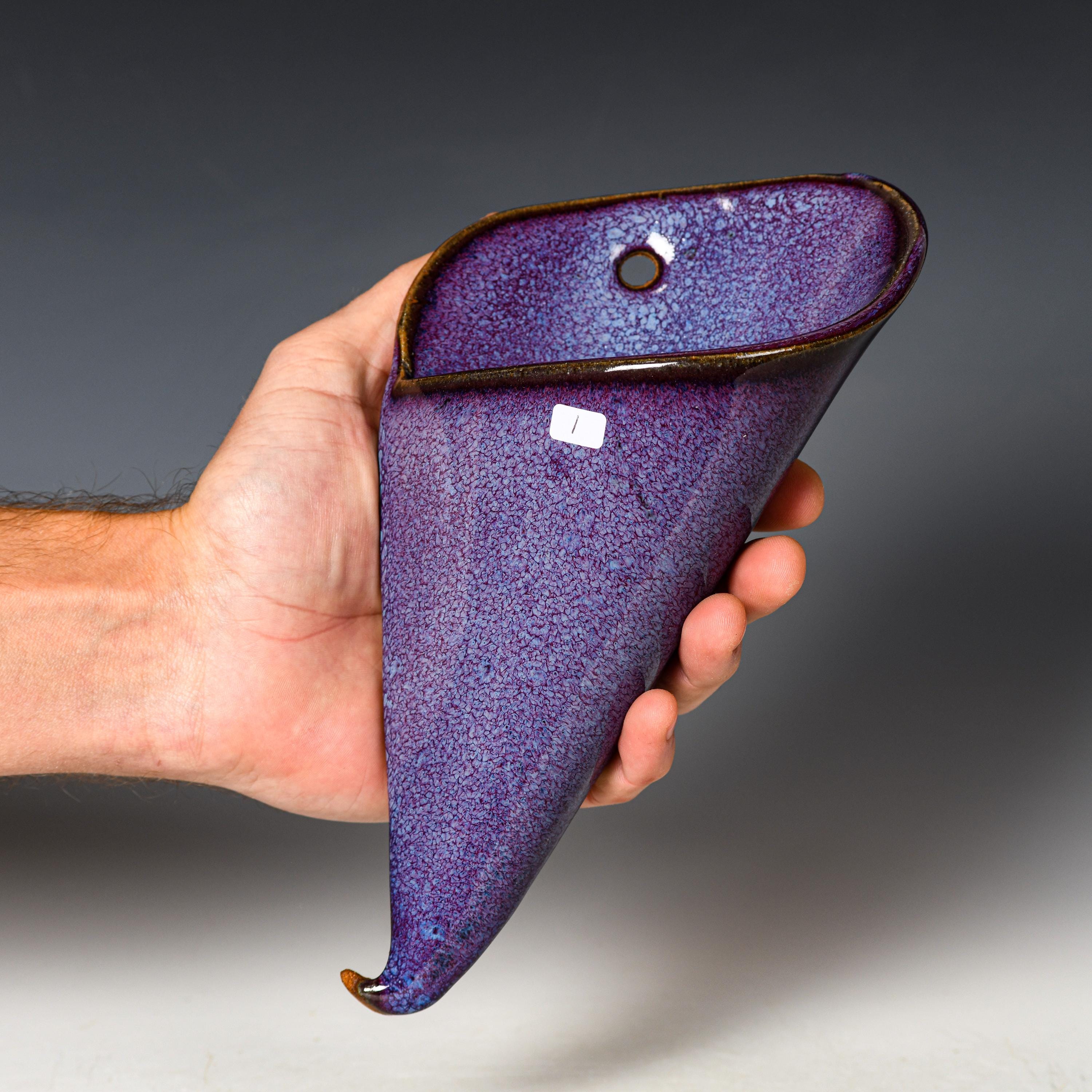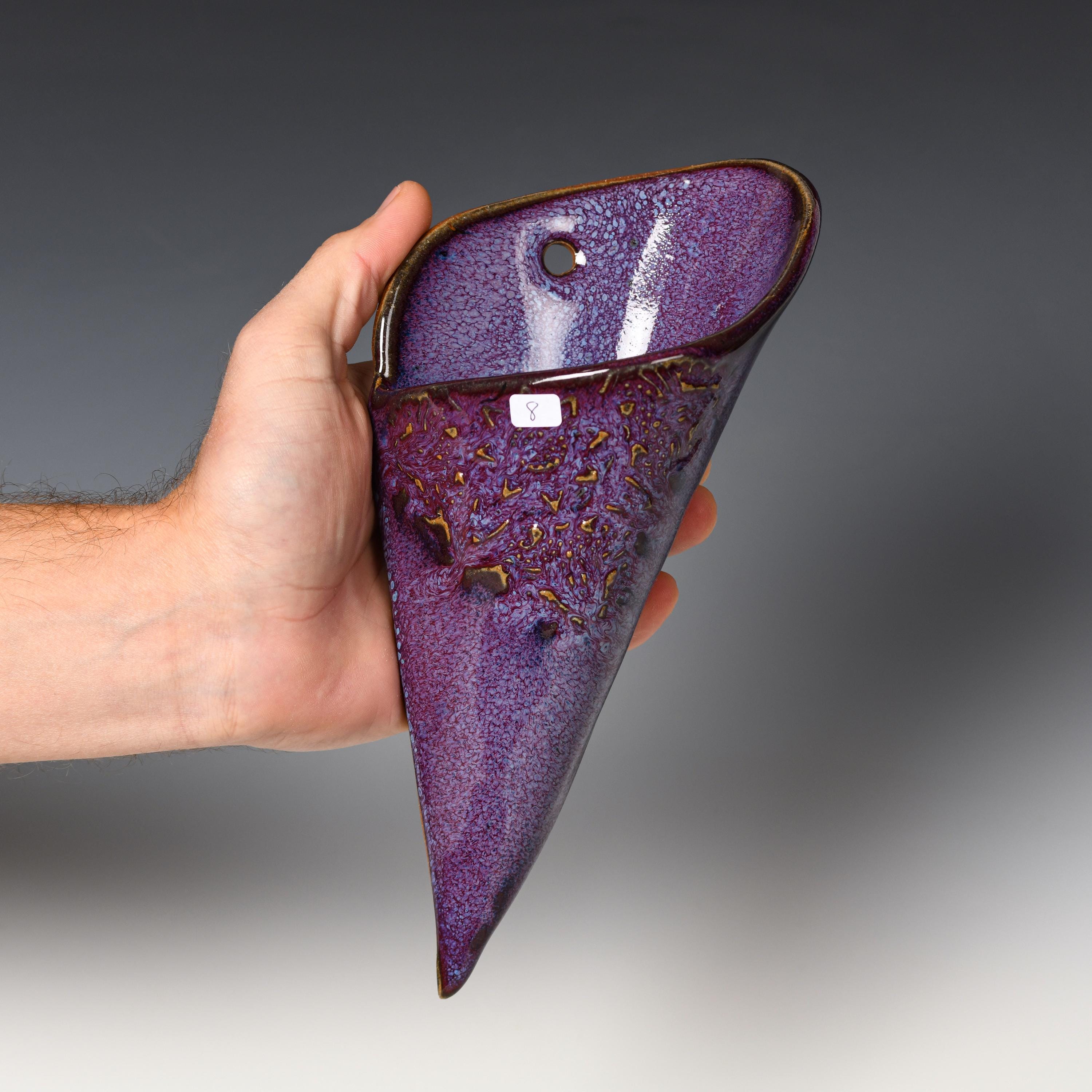 Ceramic Wall Pocket | Purple Glaze | Stoneware Hanging Planter