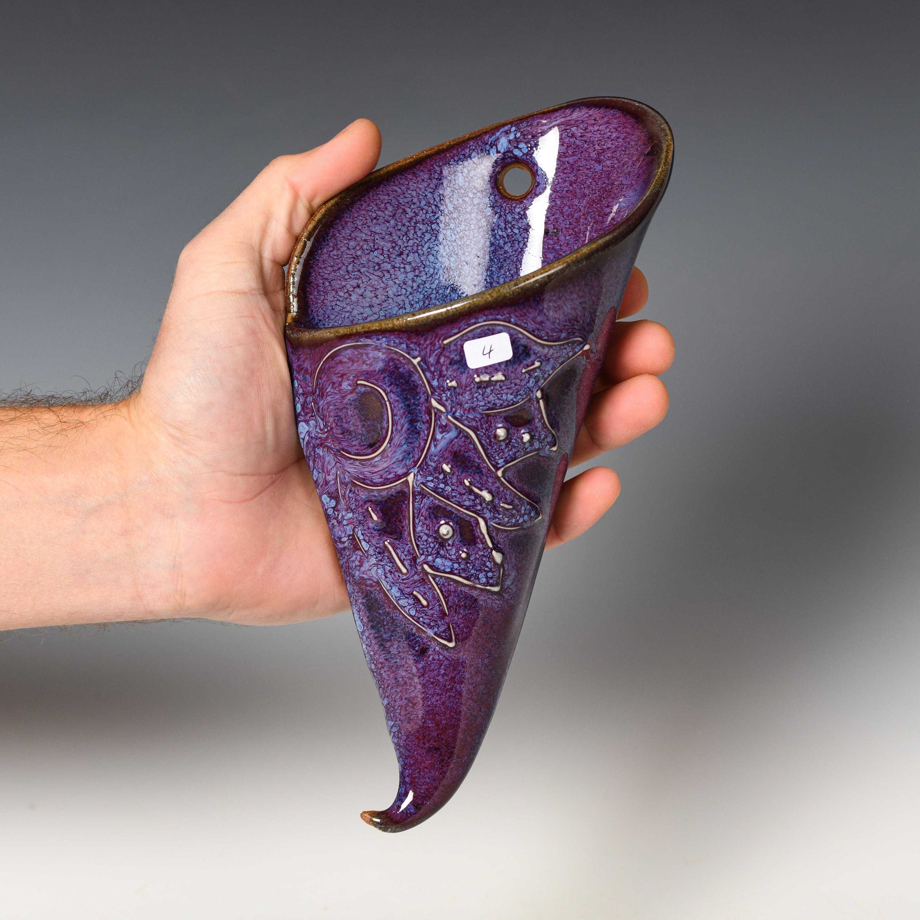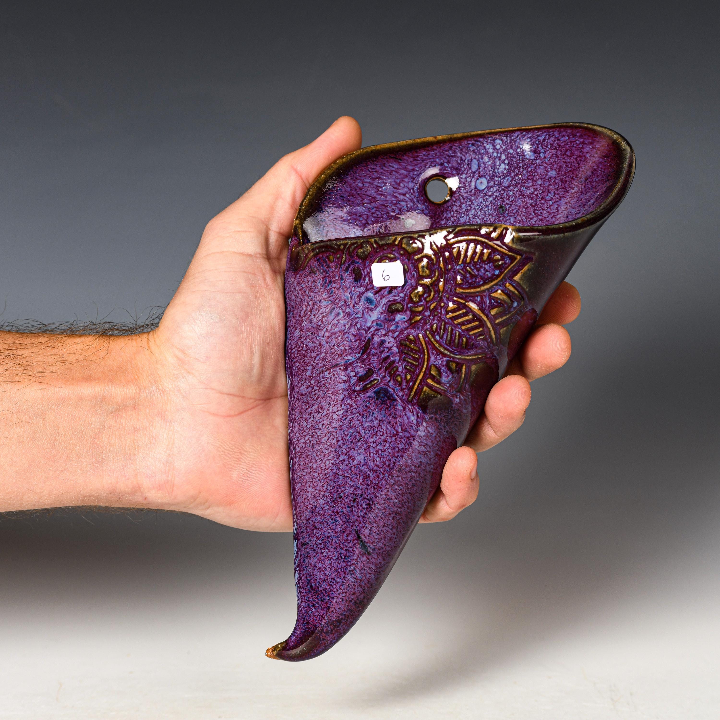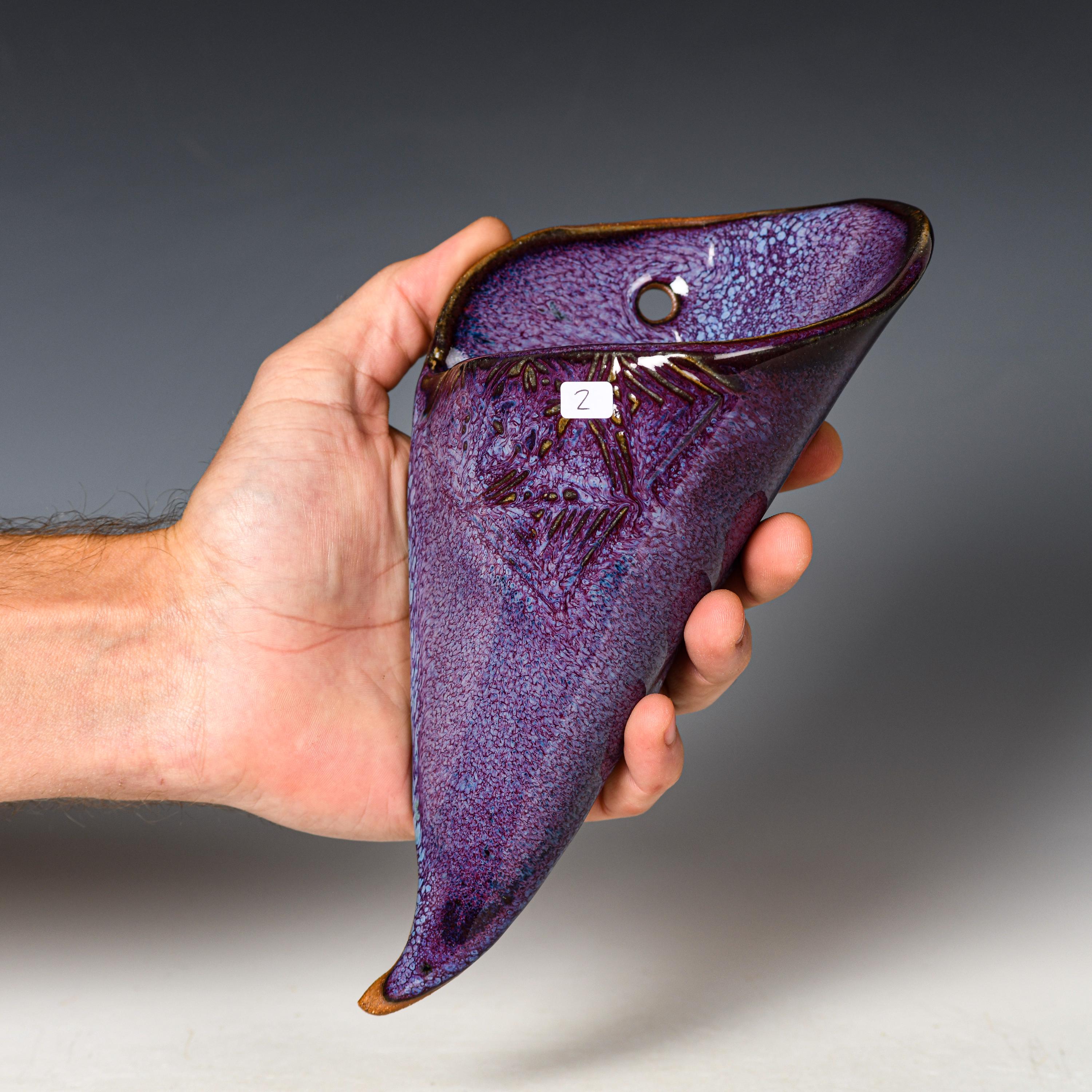 Ceramic Wall Pocket | Purple Glaze | Stoneware Hanging Planter
