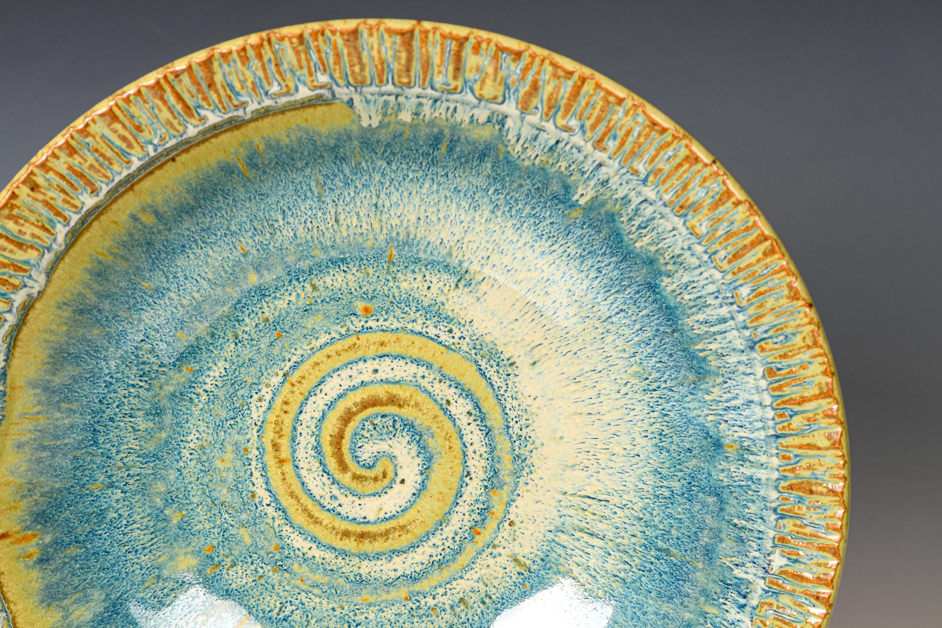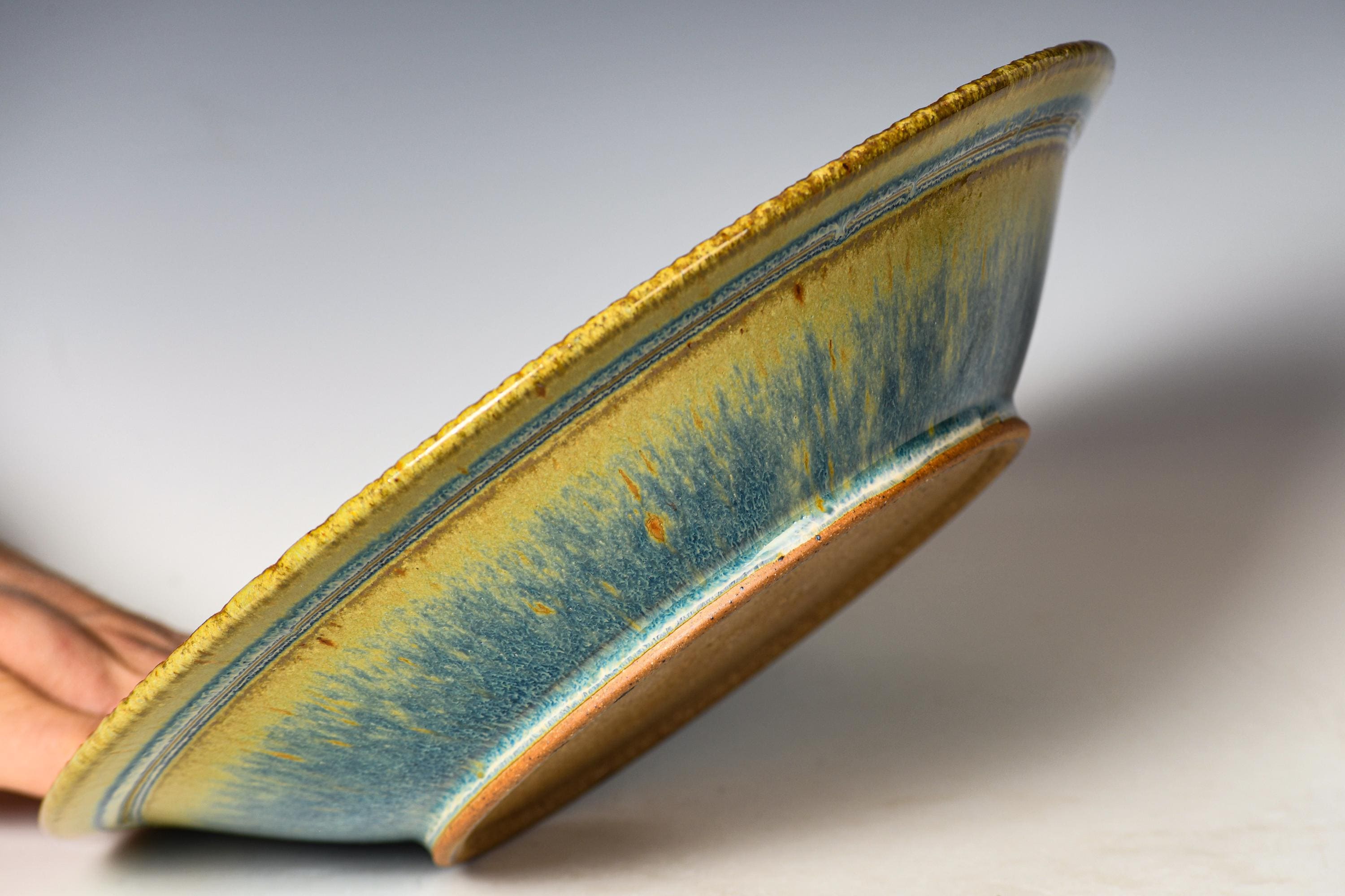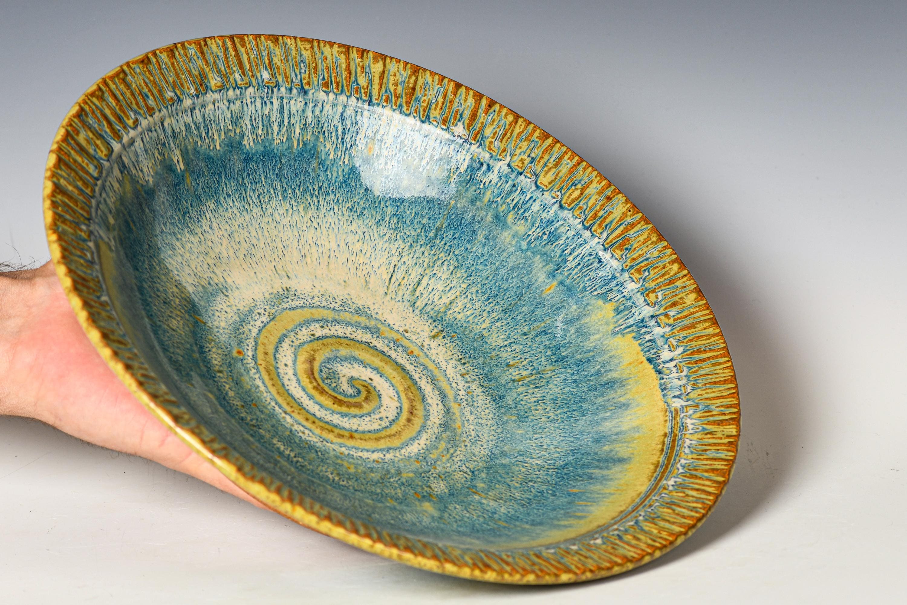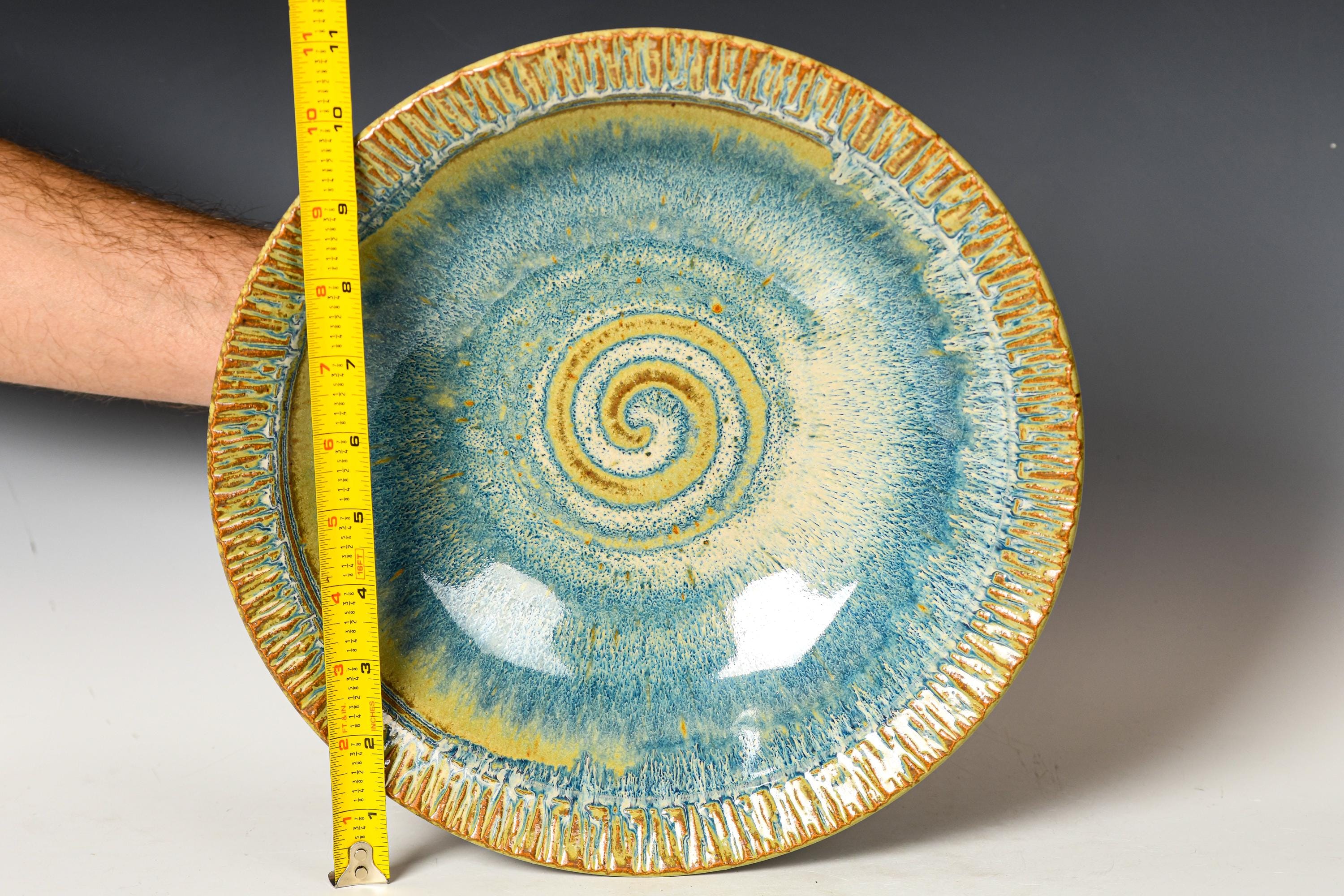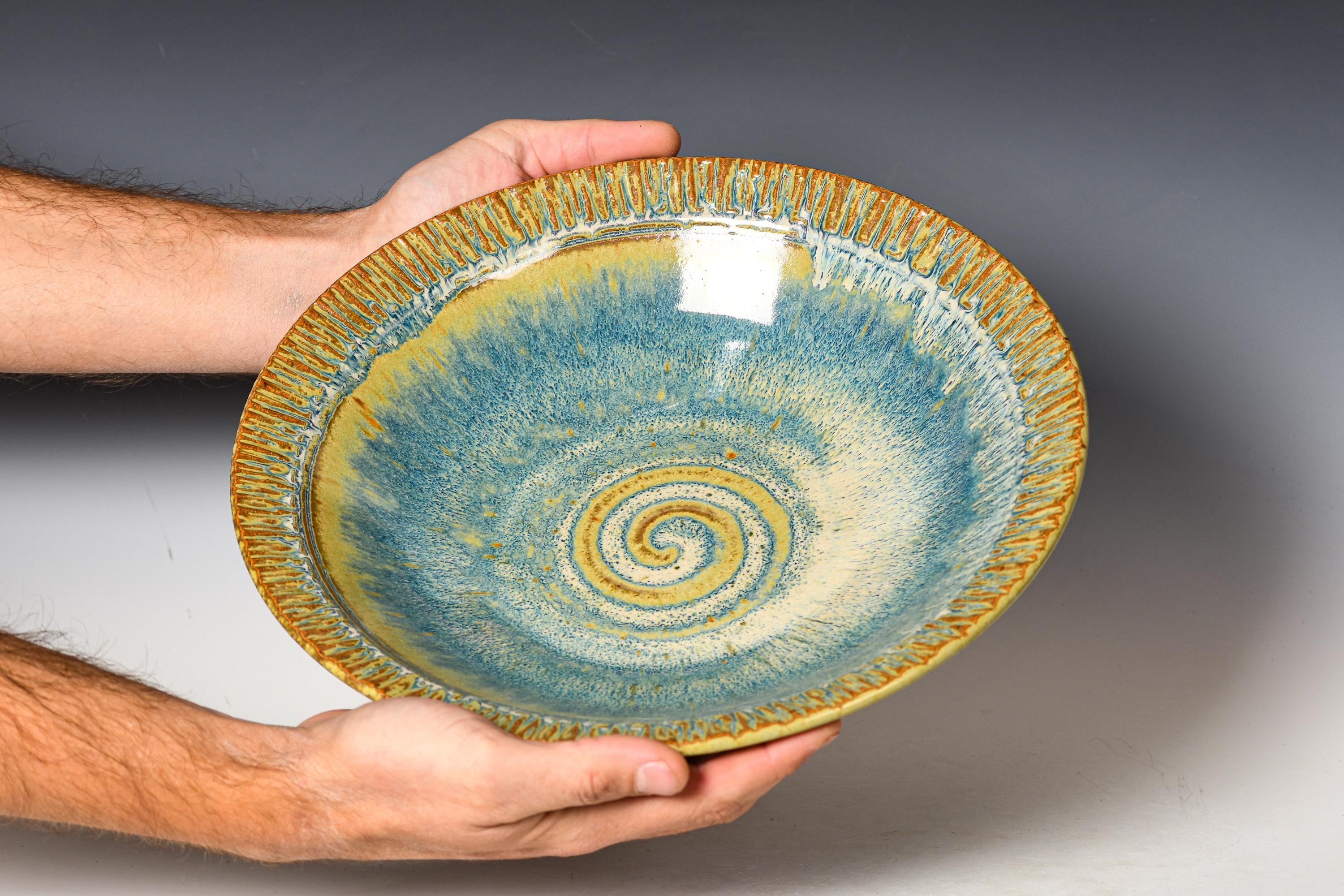 Ceramic Serving Bowl | Wheel Thrown Decorative Centerpiece | Blue Glaze #107