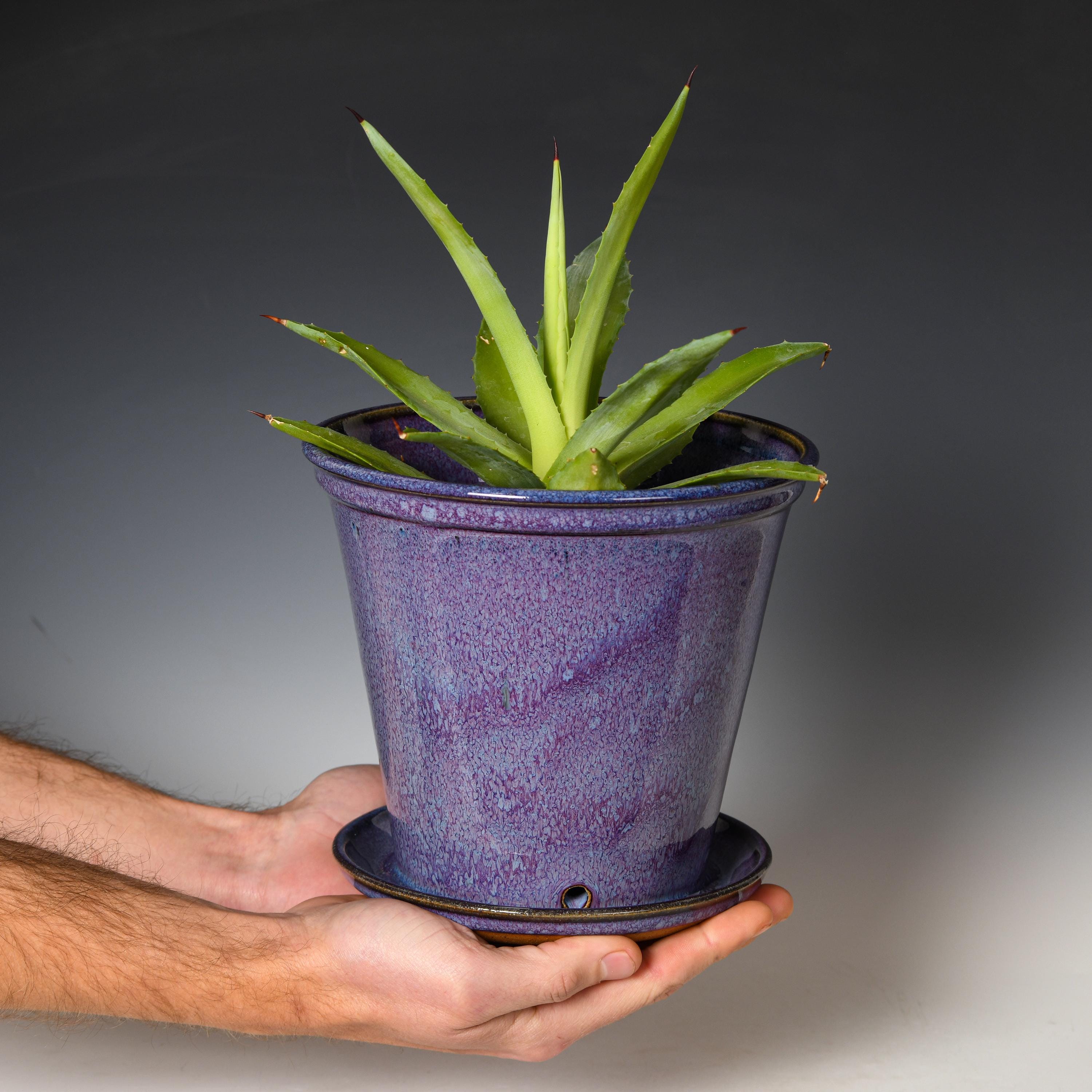 Ceramic Planter with Drainage Holes | Stoneware Plant Pot | Purple Glaze #1
