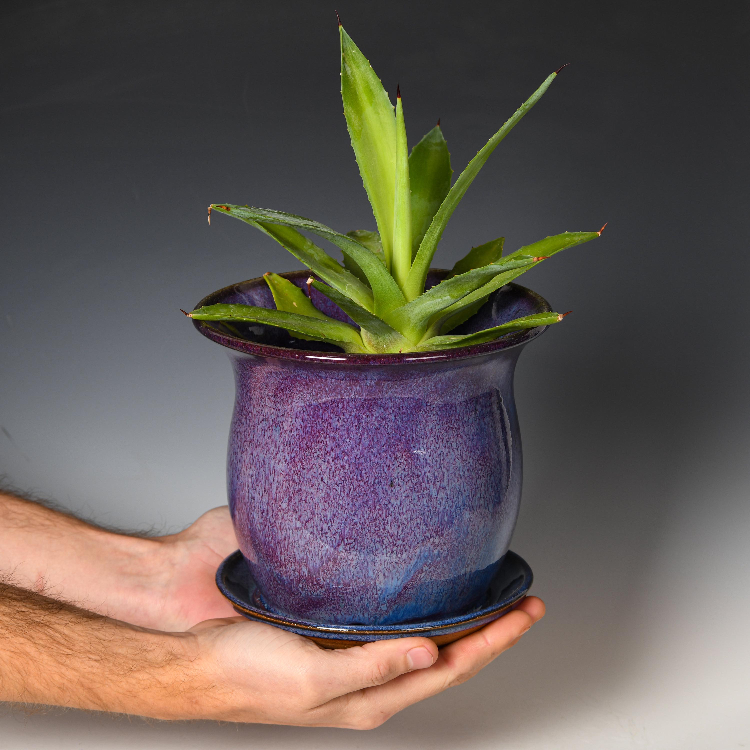 Ceramic Planter with Drainage Holes | Stoneware Plant Pot | Purple Glaze #8