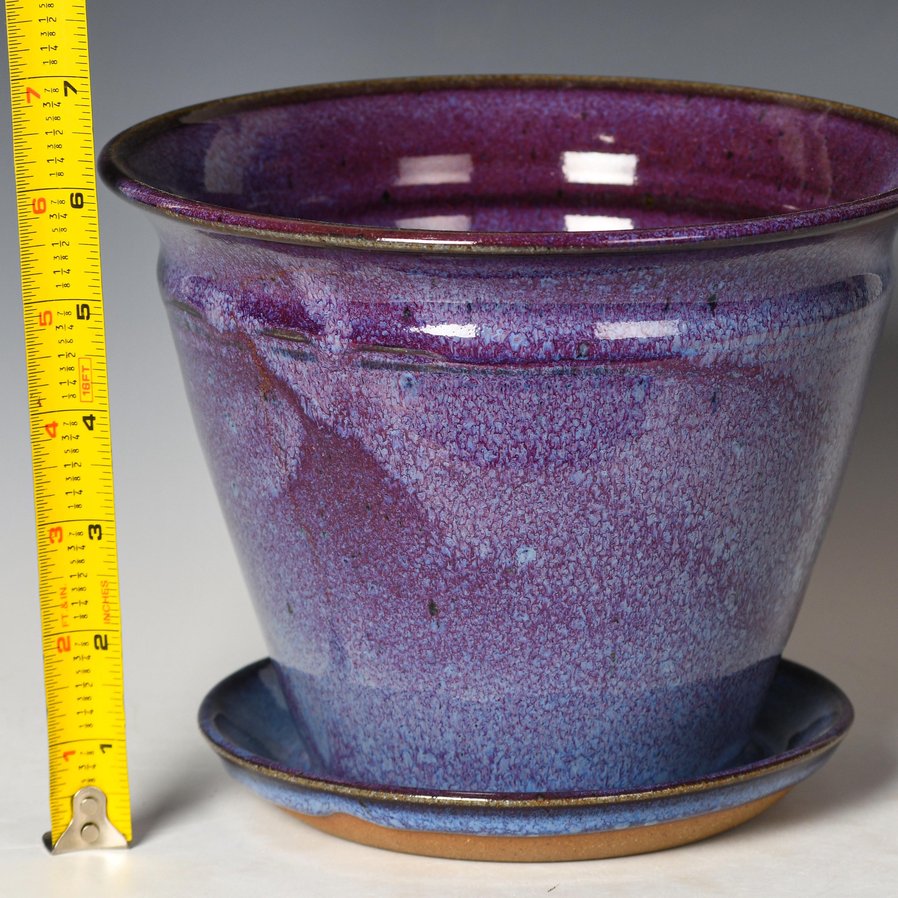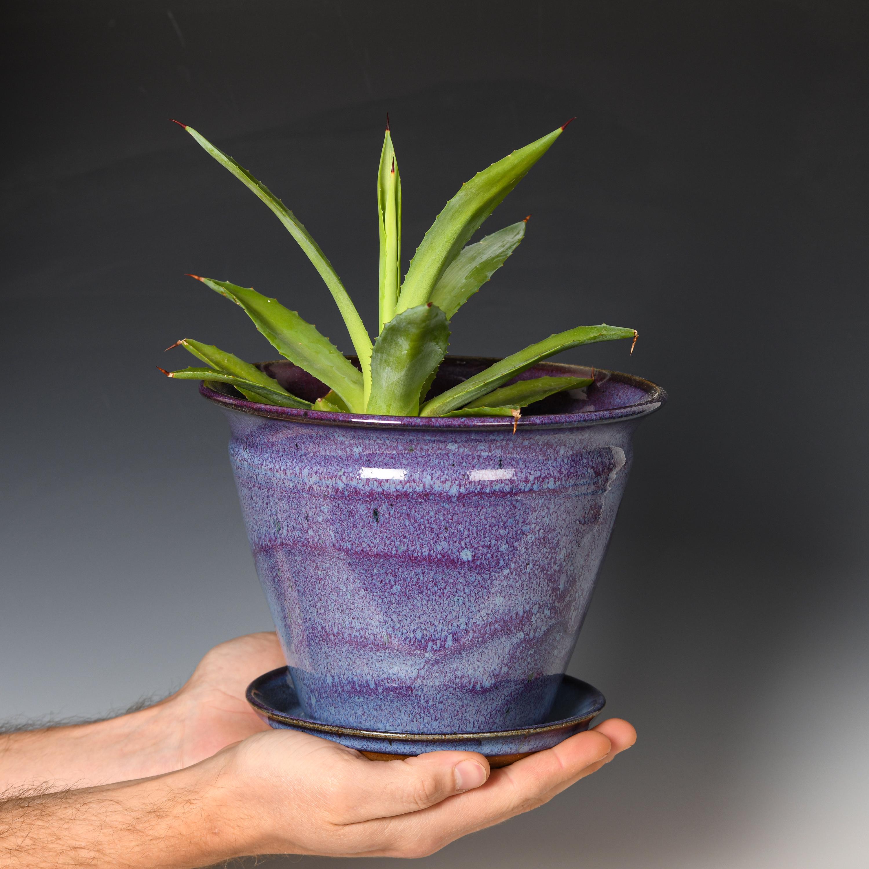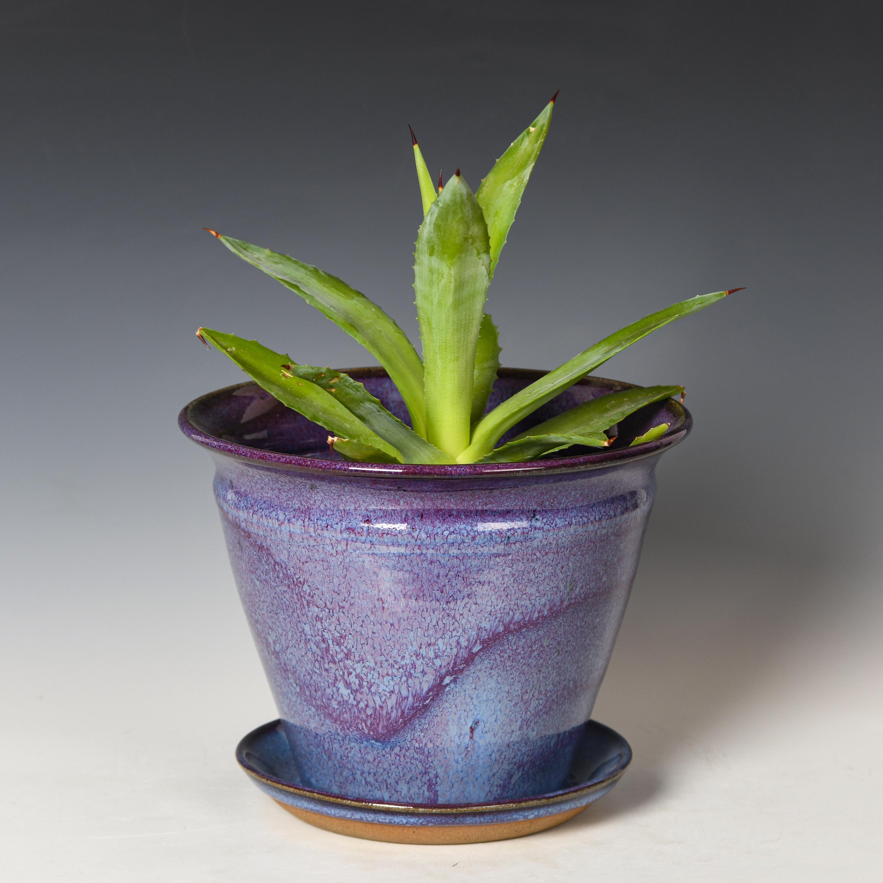 This planter has drainage holes & an attached drain dish.