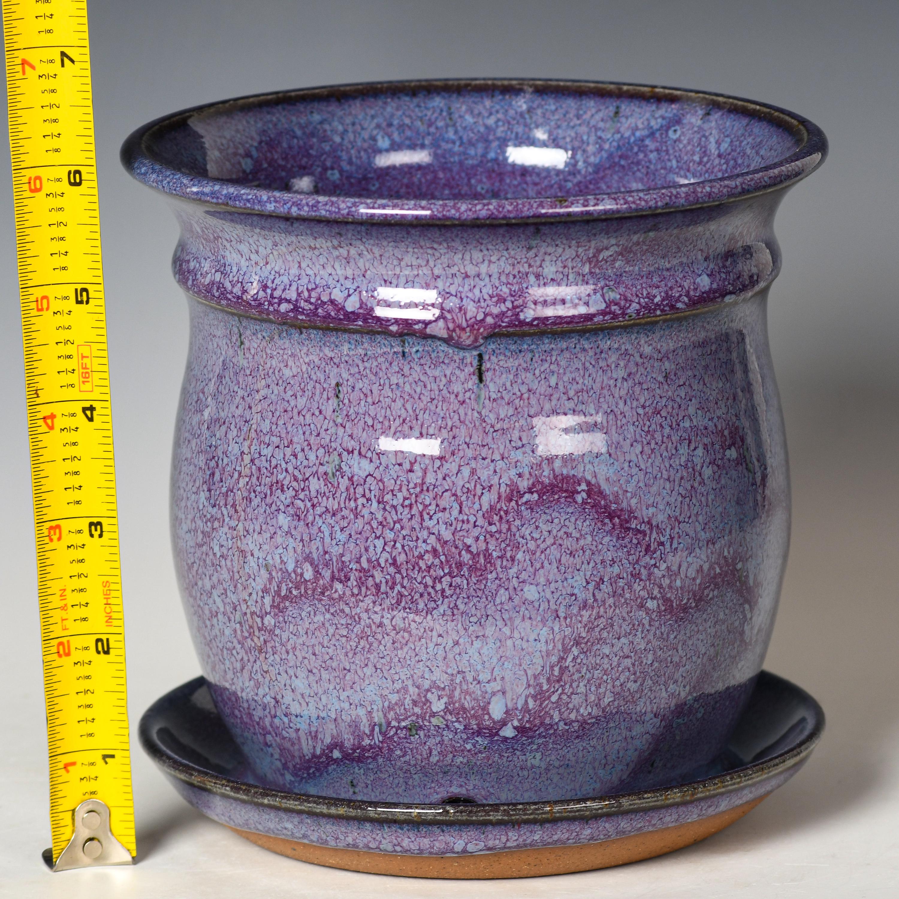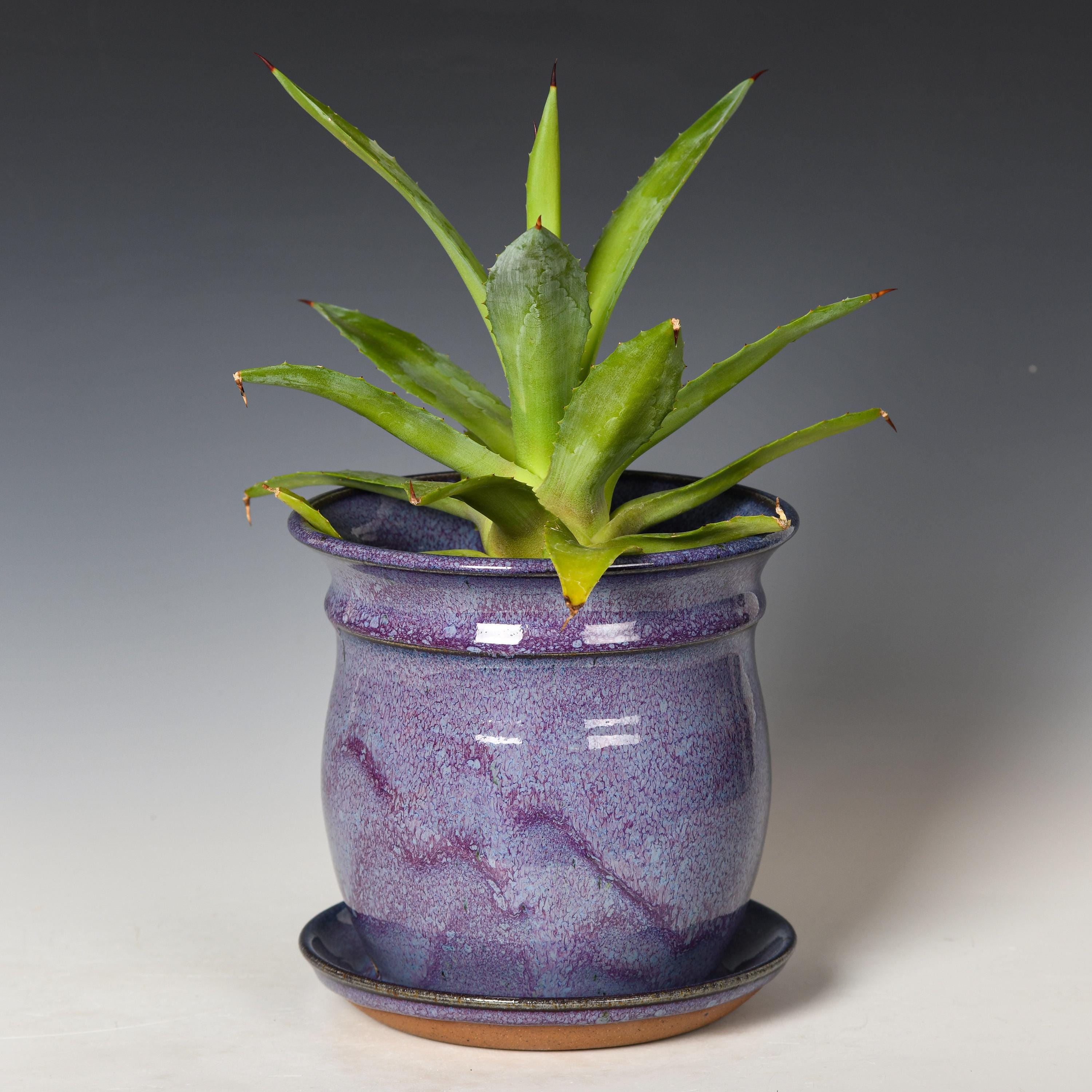 This planter has drainage holes & an attached drain dish.