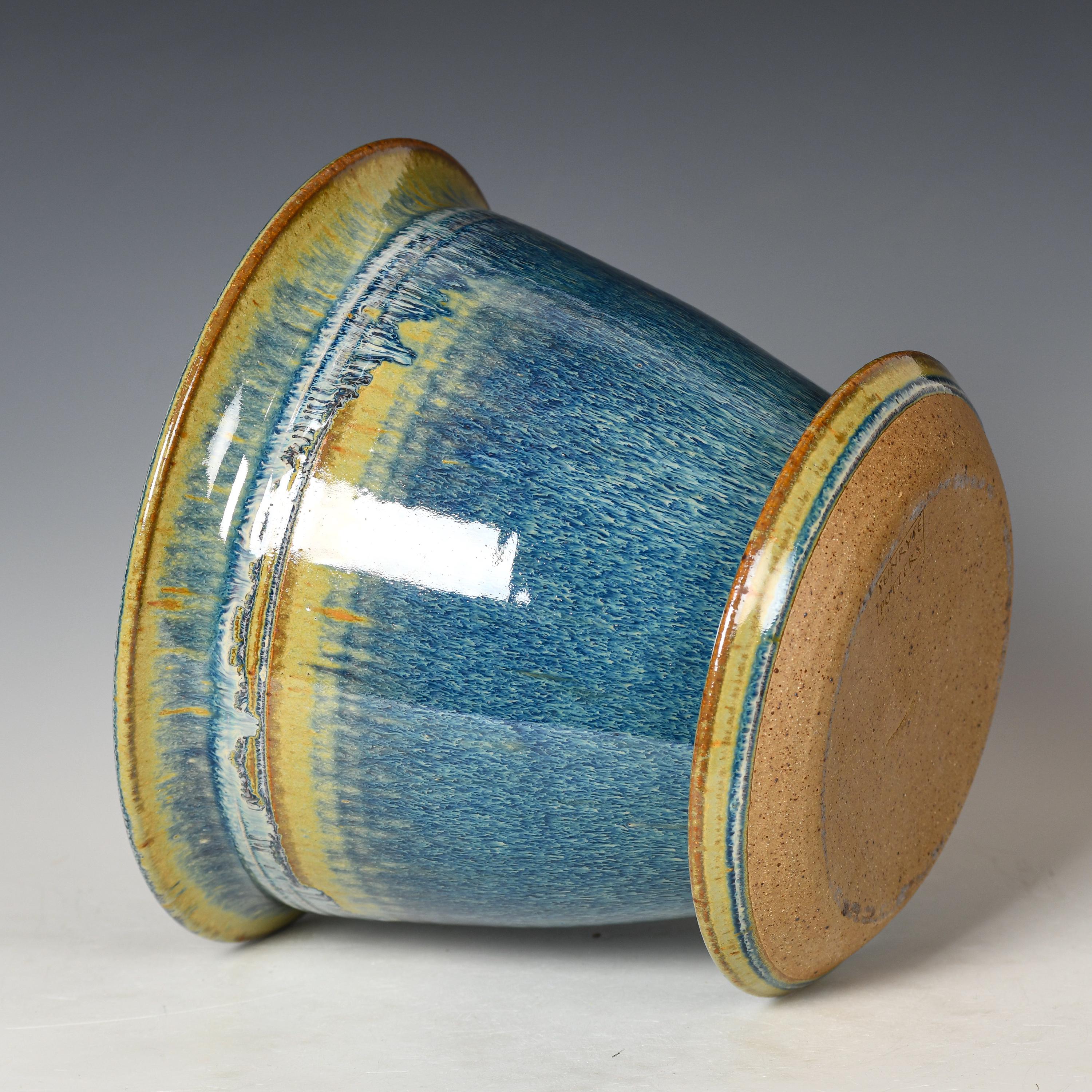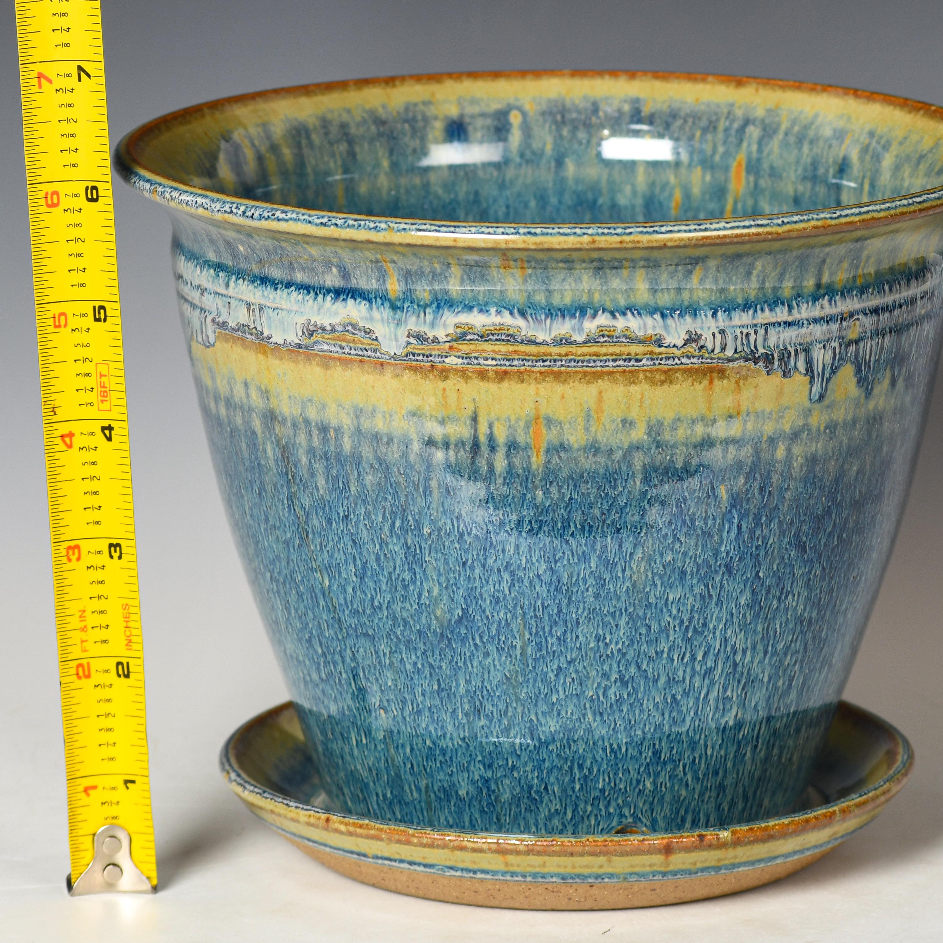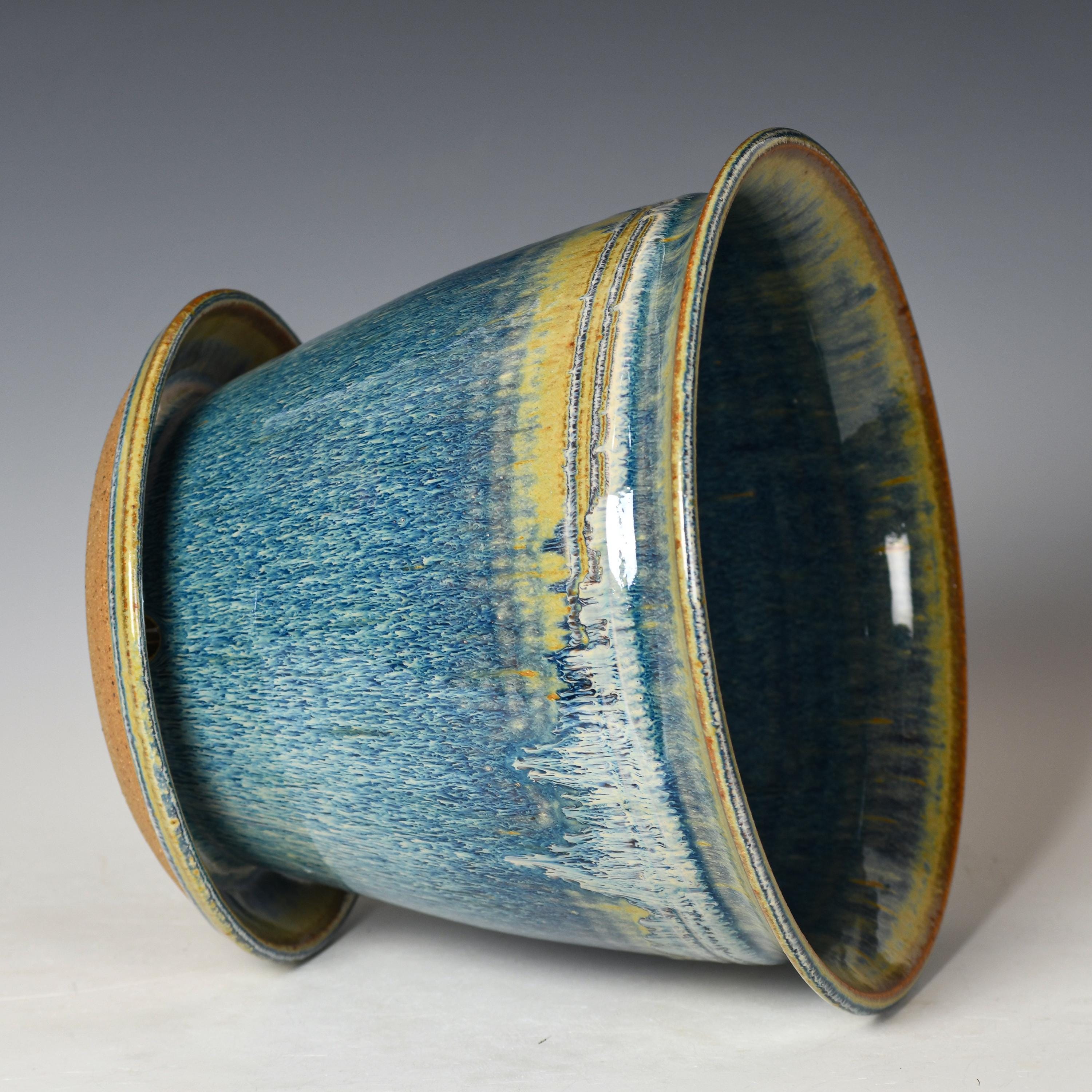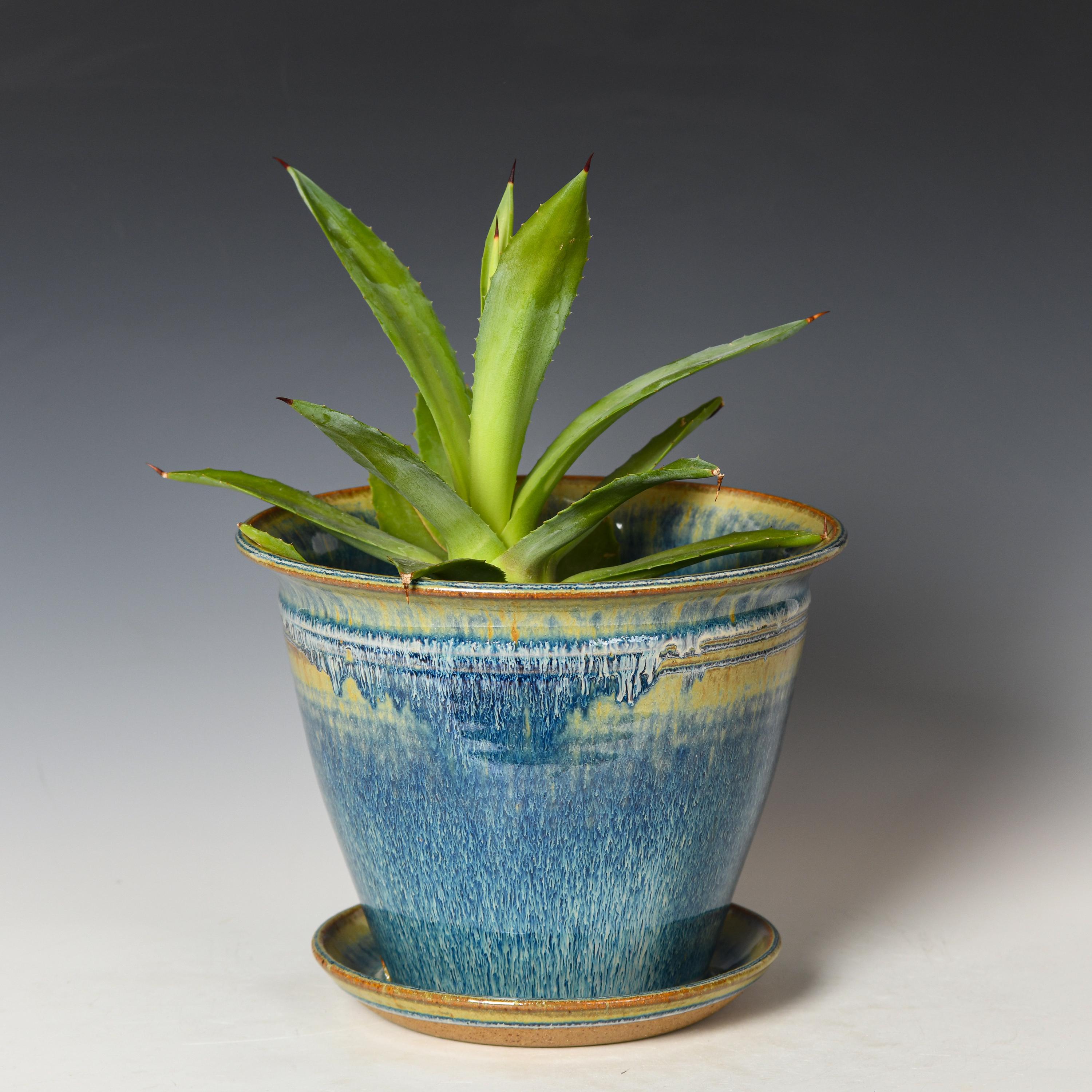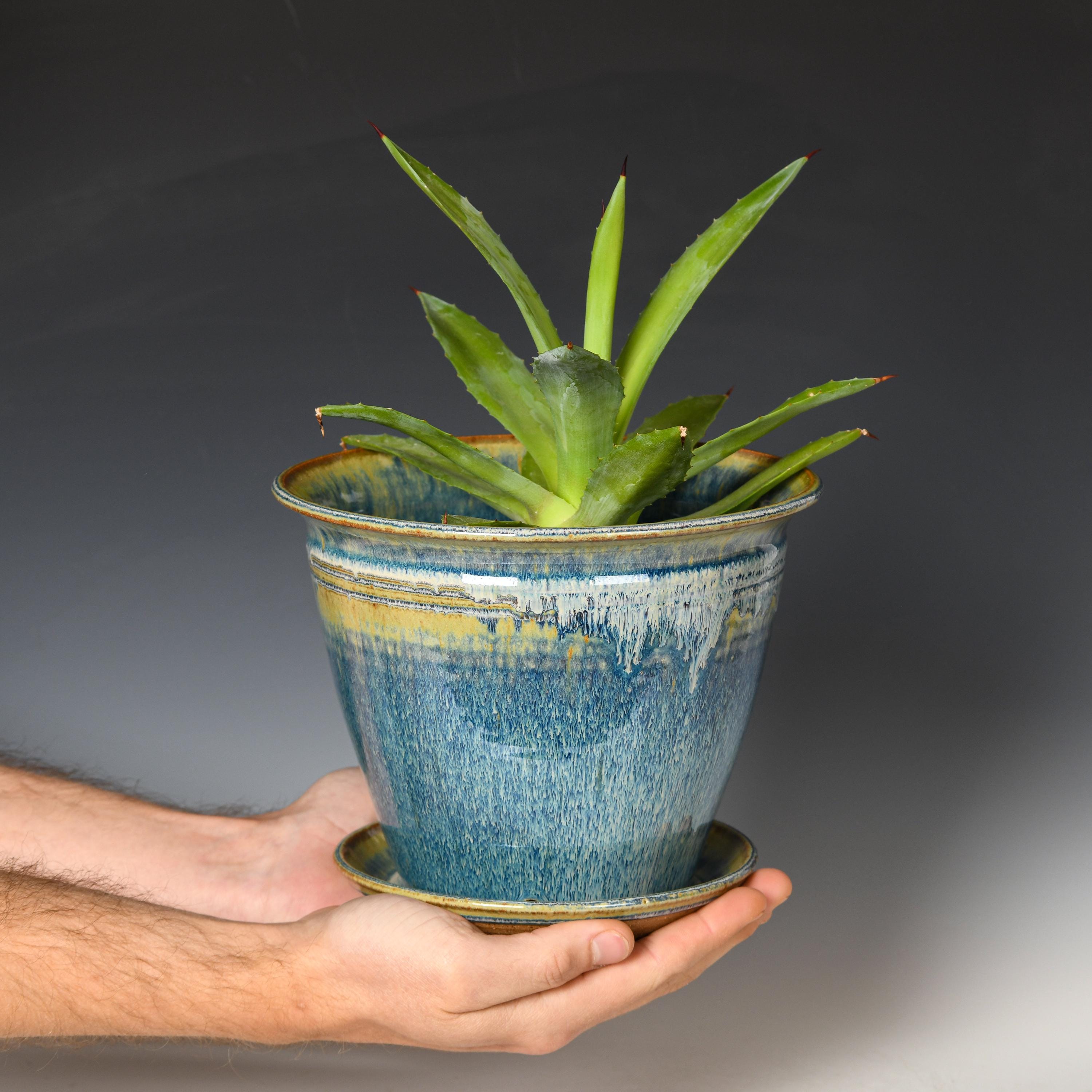 Ceramic Planter with Drainage Holes | Stoneware Plant Pot | Blue Glaze #28
