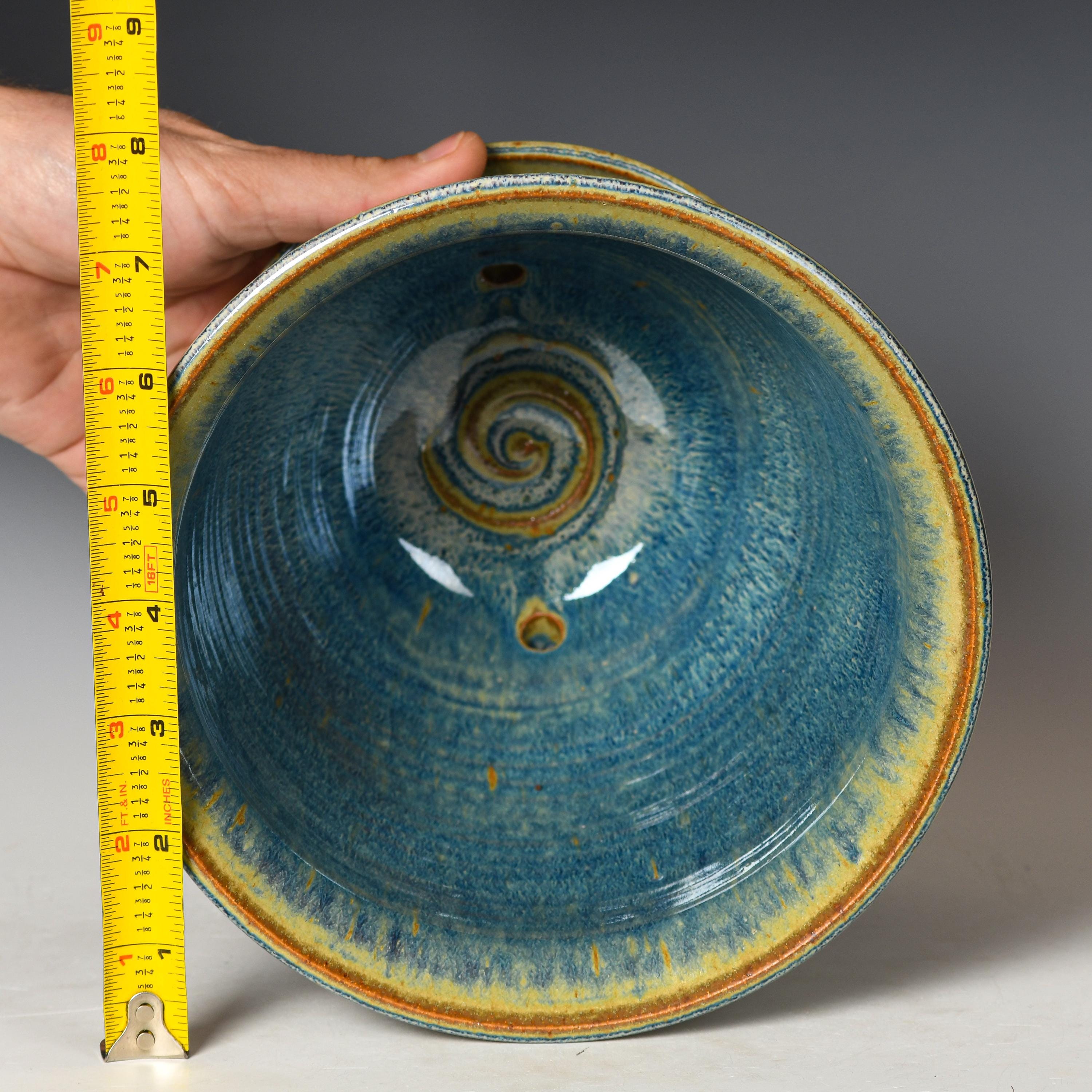 All of our work is hand-made on the pottery wheel using a rich, brown stoneware clay body. Once bisque fired, we apply custom & handmade glazes, then fire in a gas reduction atmosphere to cone 11/12 (about 2370*F). Finished pieces are always safe for food use as well as use in the dishwasher, microwave and oven.