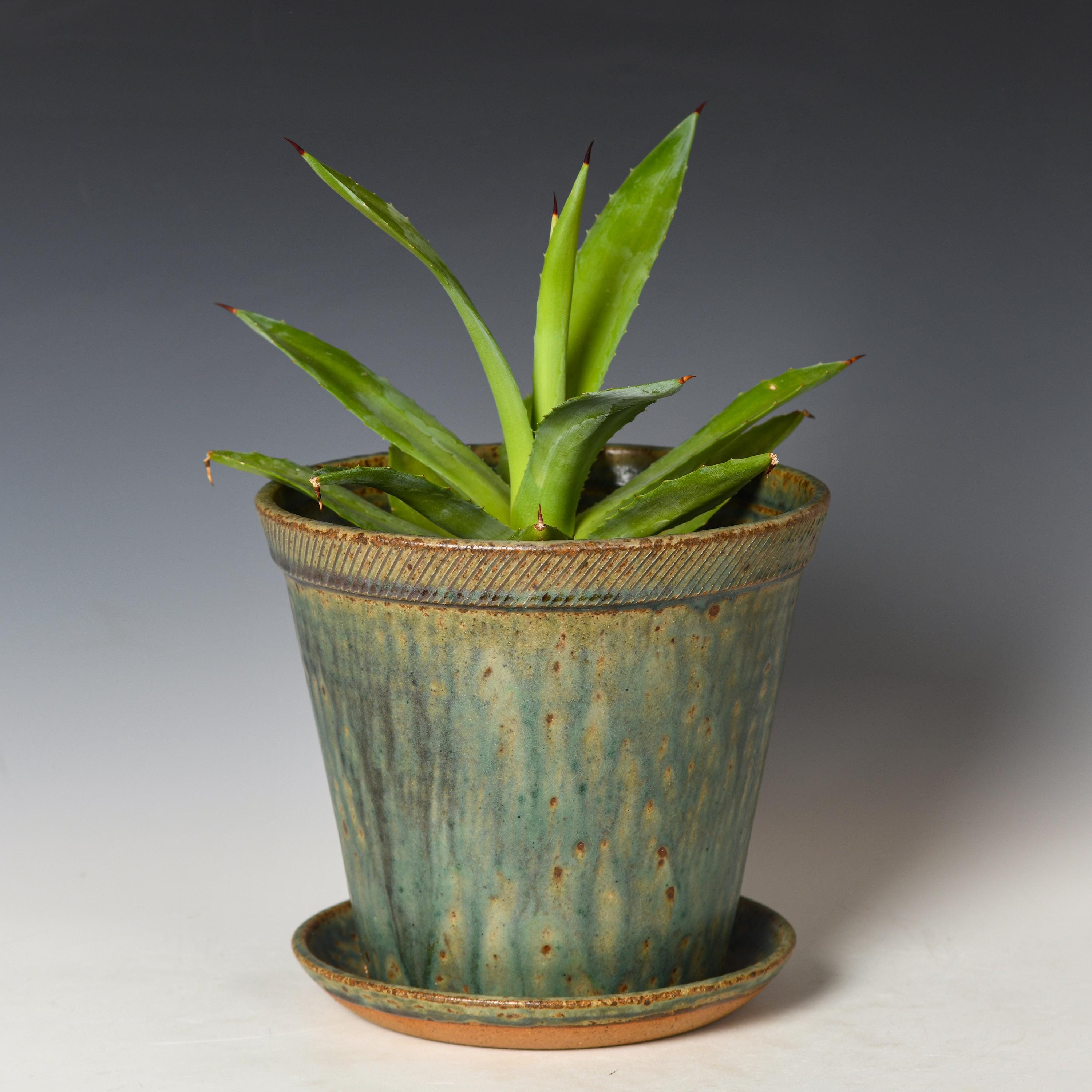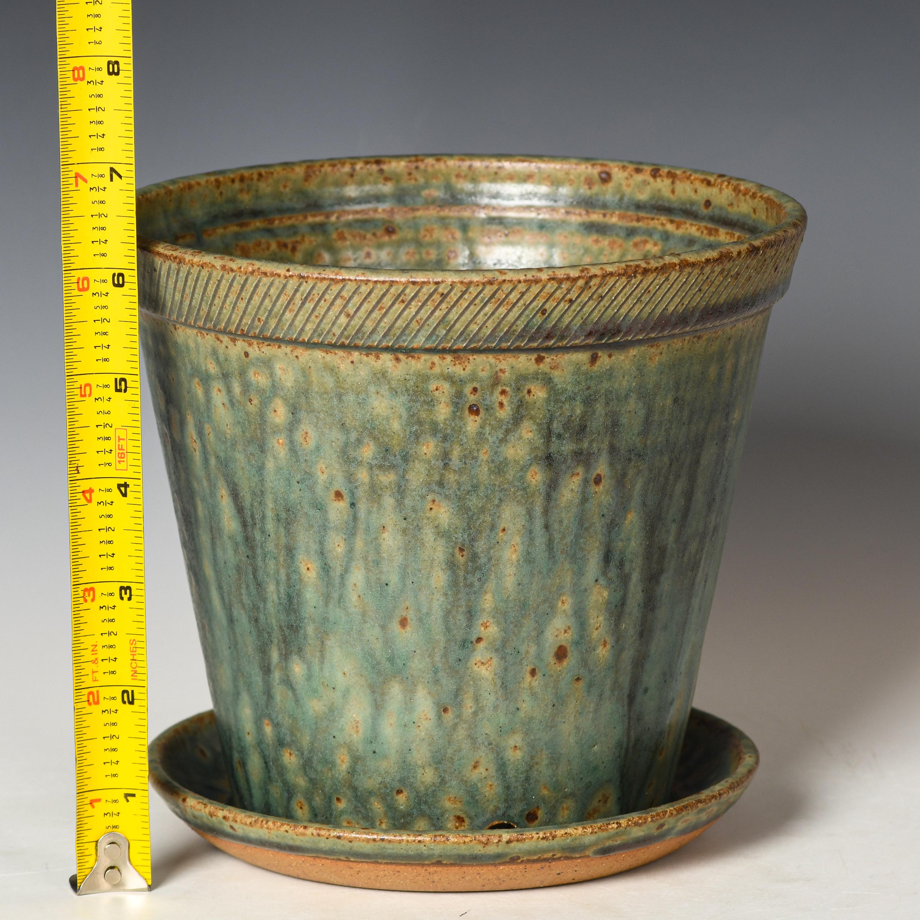 This planter has drainage holes & an attached drain dish.