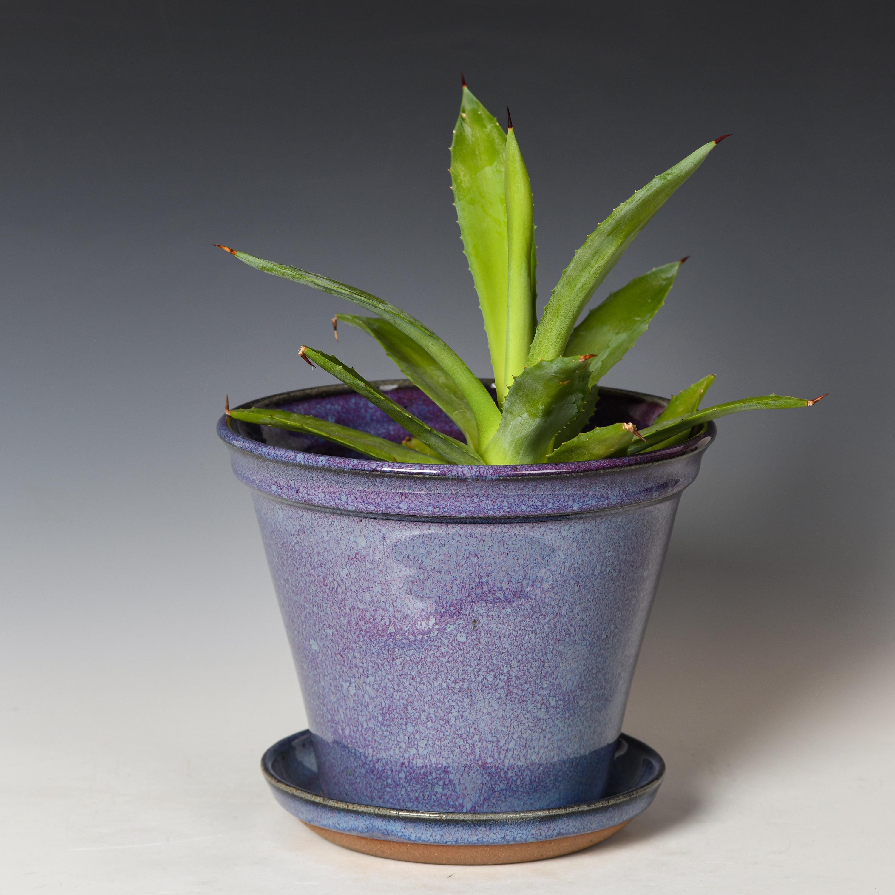 This planter has drainage holes & an attached drain dish.