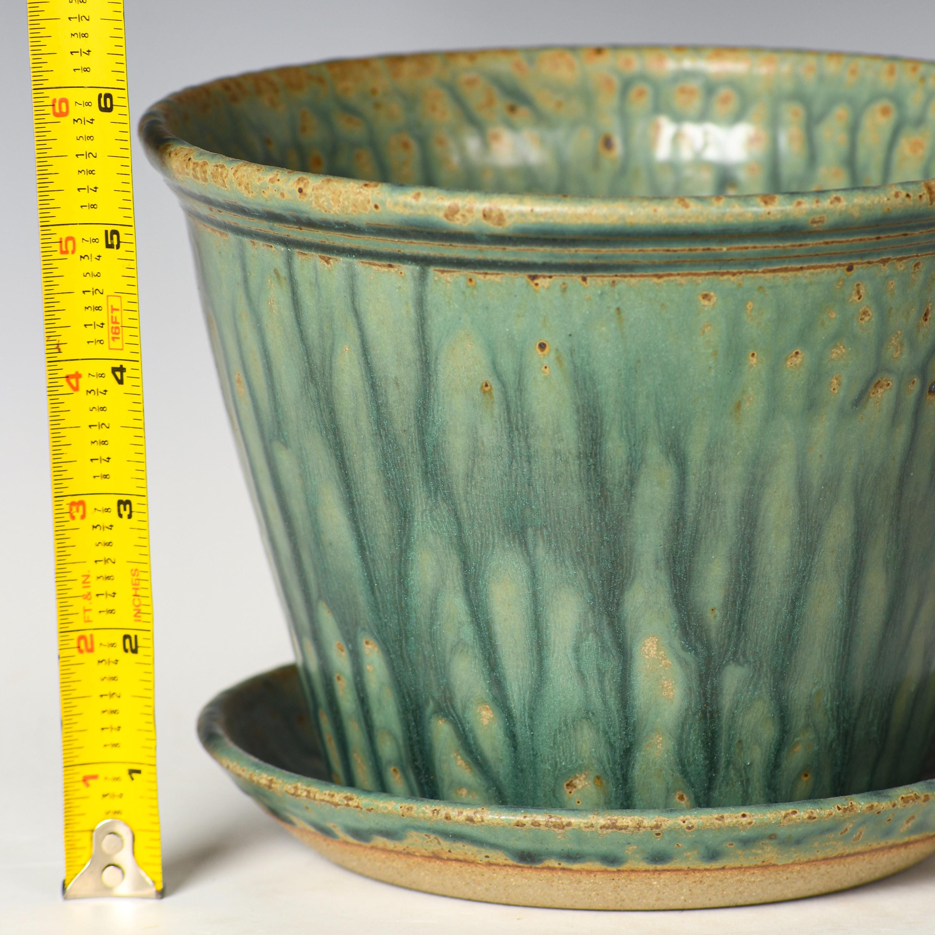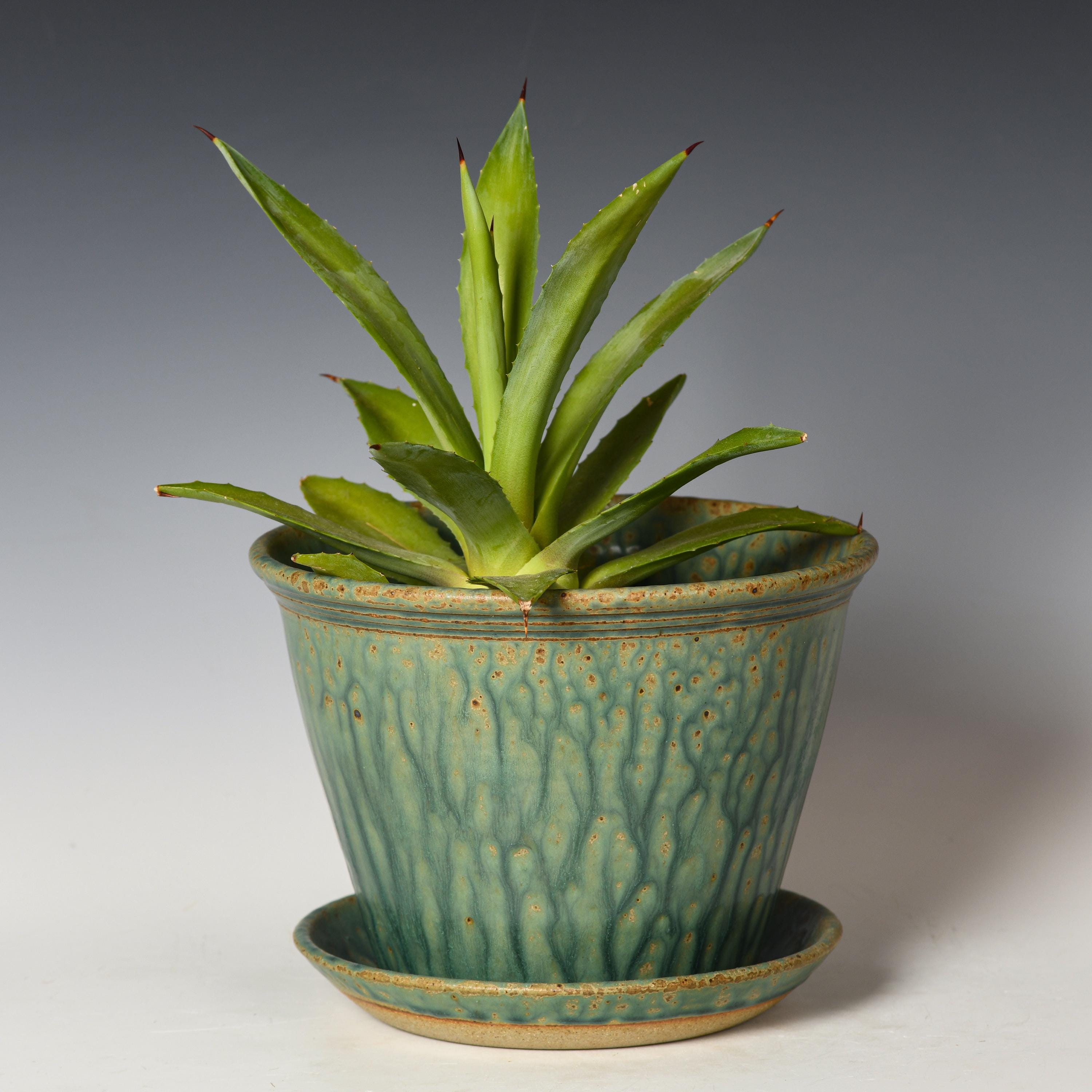 This planter has drainage holes & an attached drain dish. Ready to be potted directly into , no need for a nursery pot. Our planters are great for indoor or outdoor use.